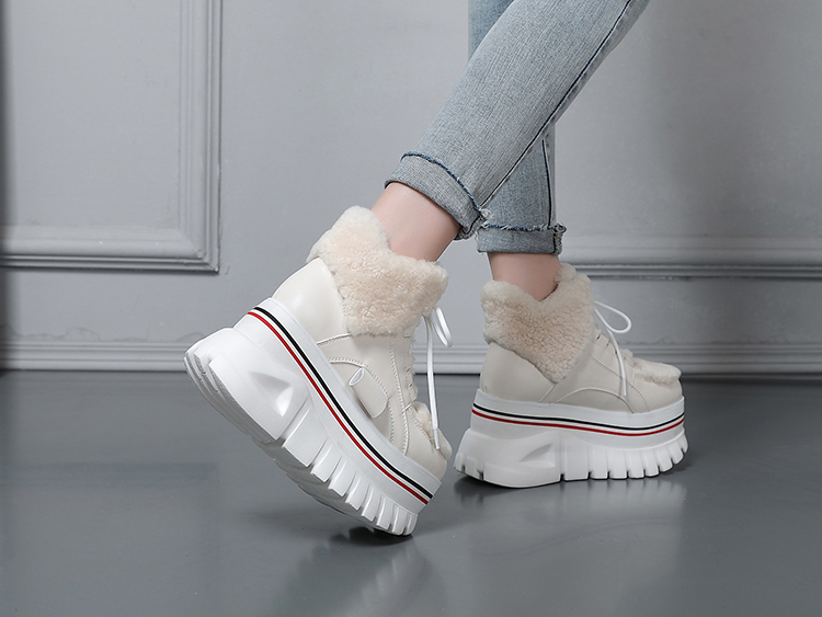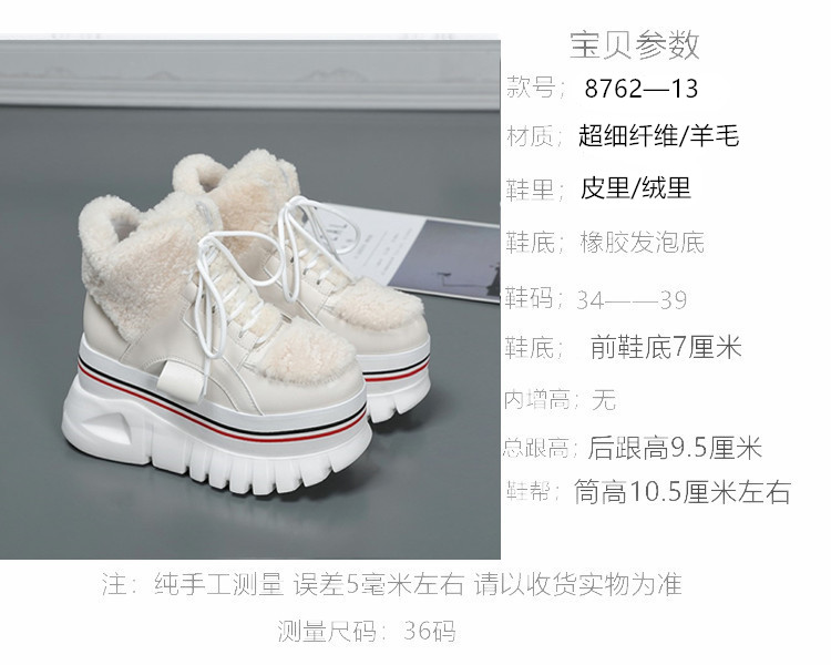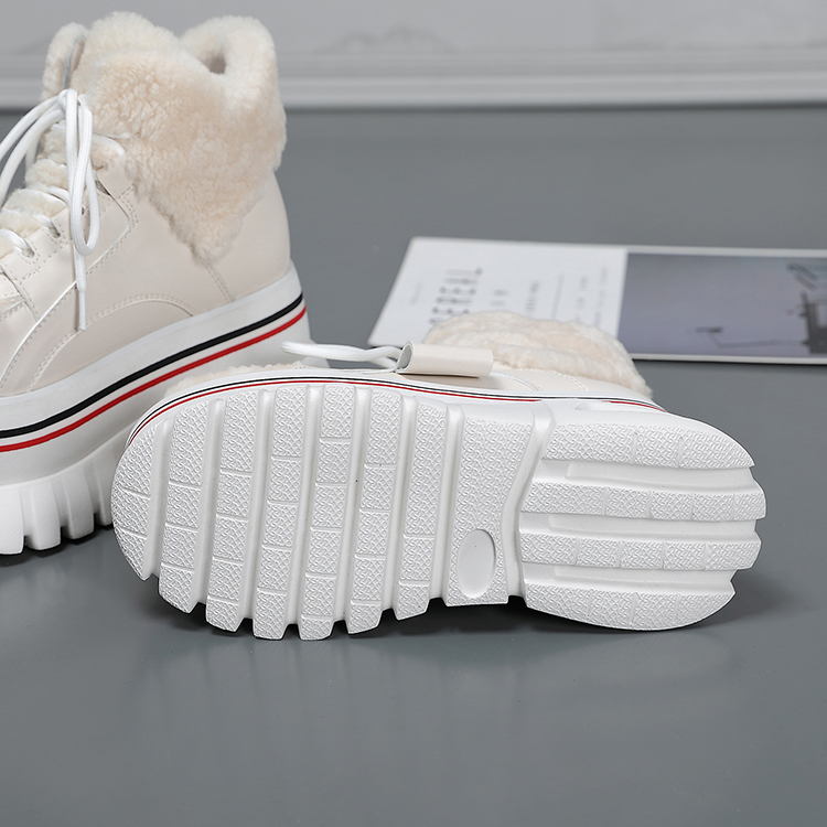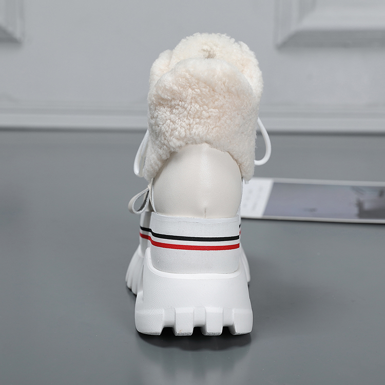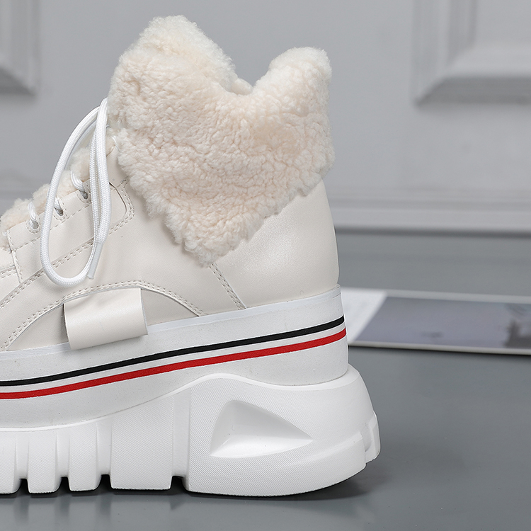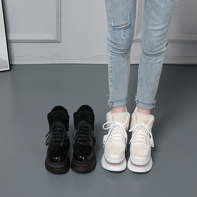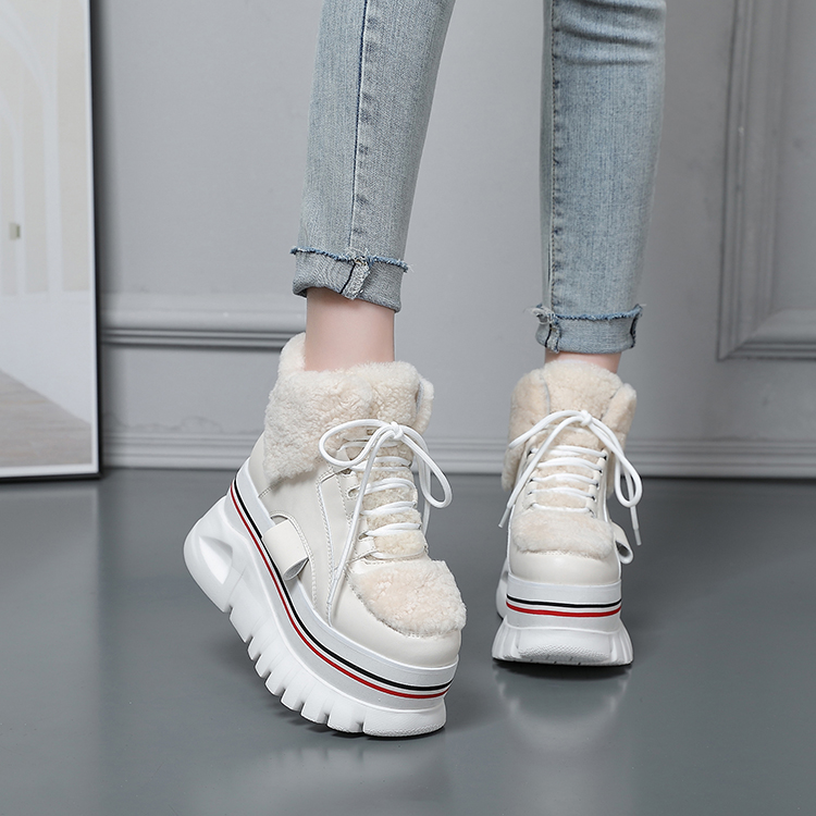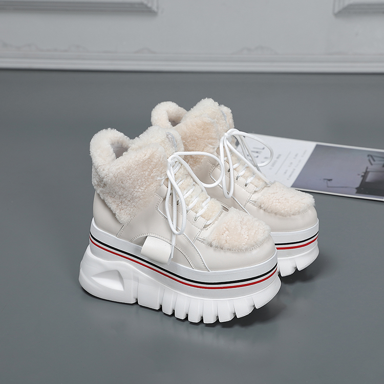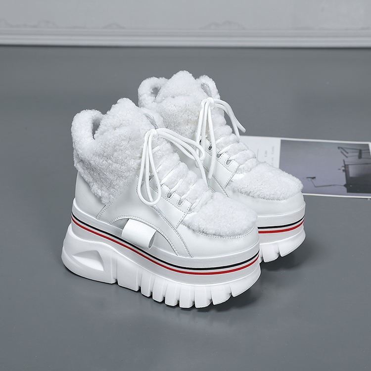 European Women's Shoes 2024 Autumn and Winter New Wool Shoes Platform Thick-Soled Casual Lace-Up High-Top Dad Shoes