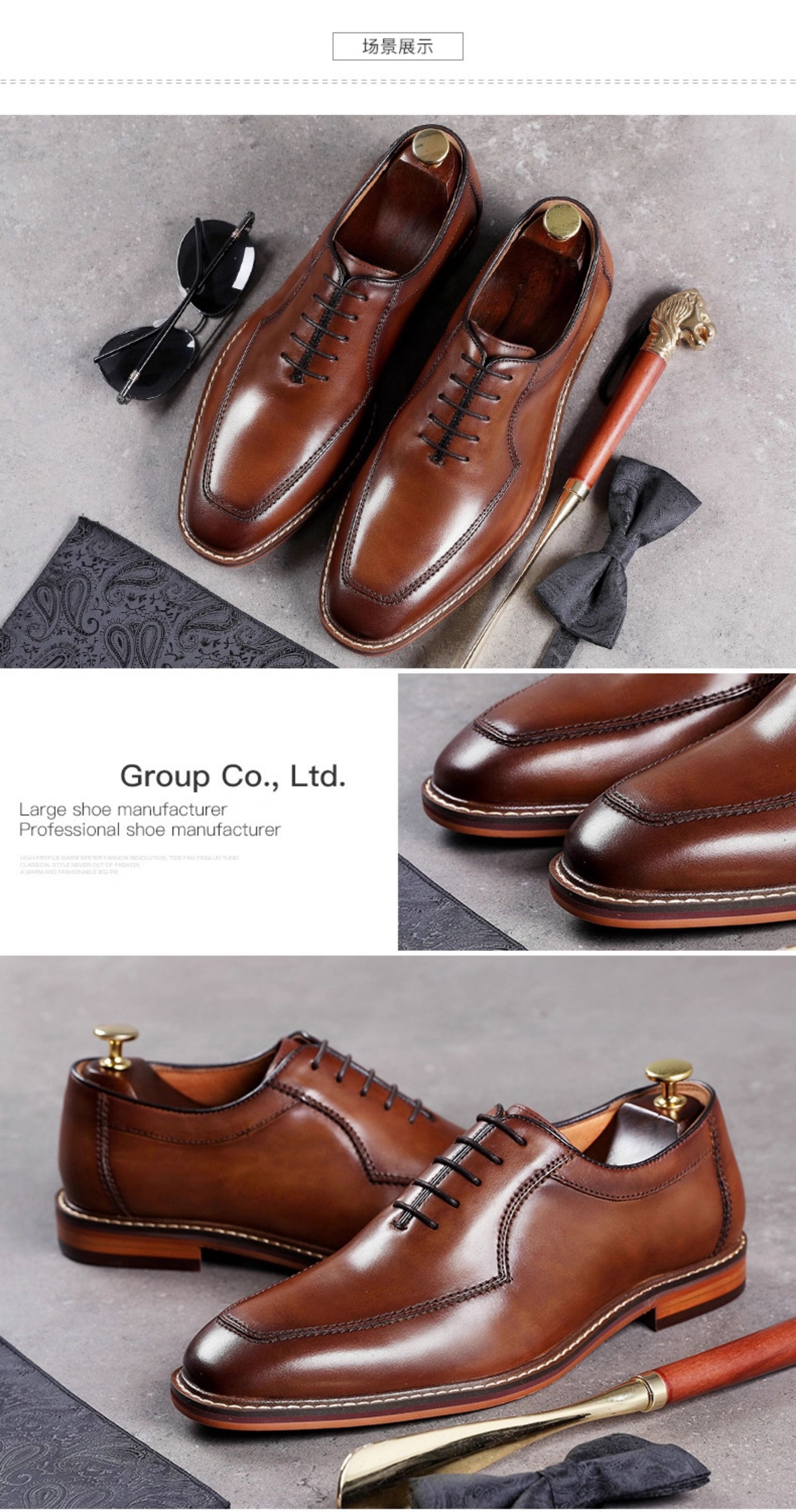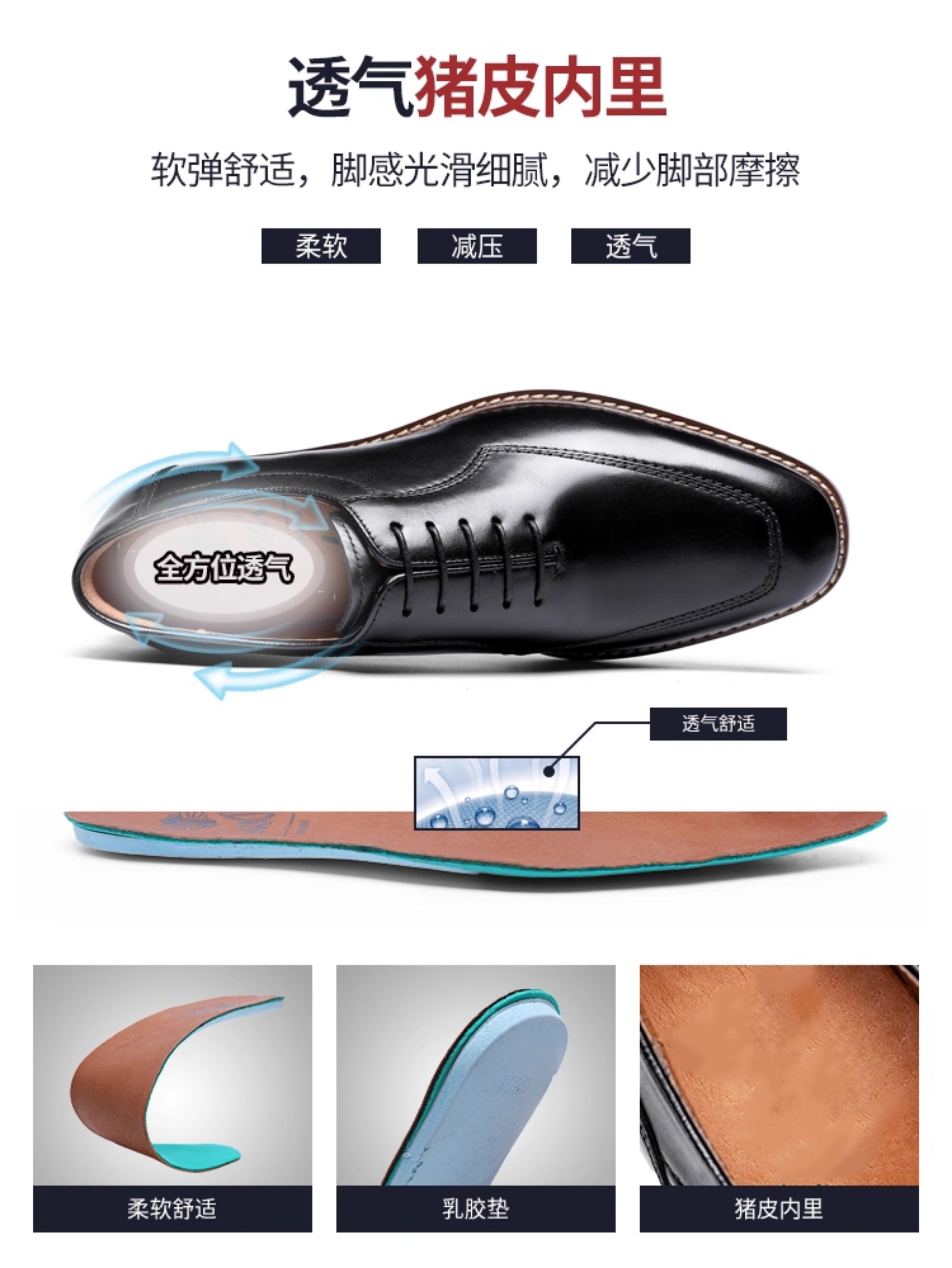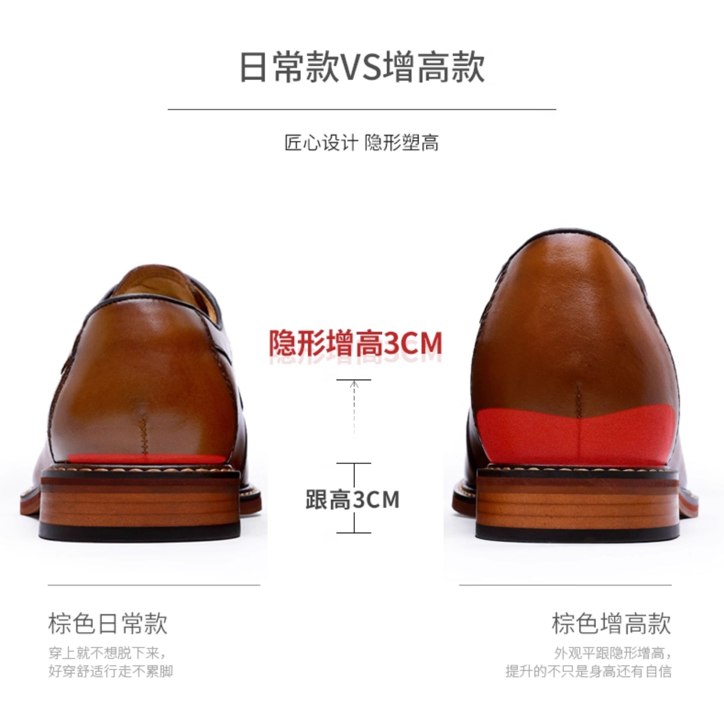 Oxford Shoes for Men, Genuine Leather, Business, British Style, Formal Wear, Men's Height-Increasing Wedding Shoes, Brown, Breathable, Casual, Handmade Leather Shoes for Men