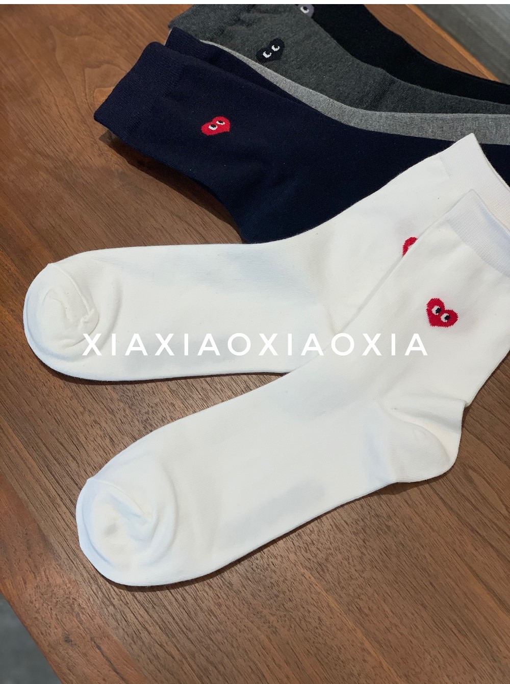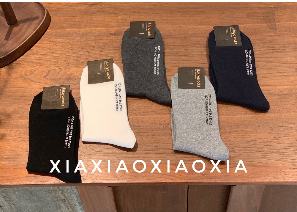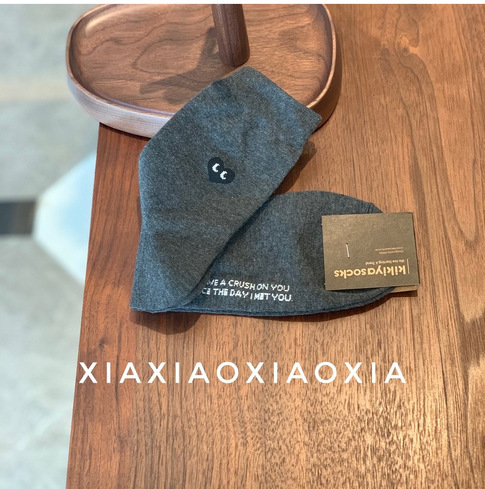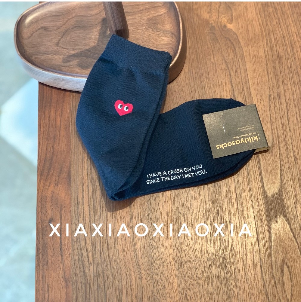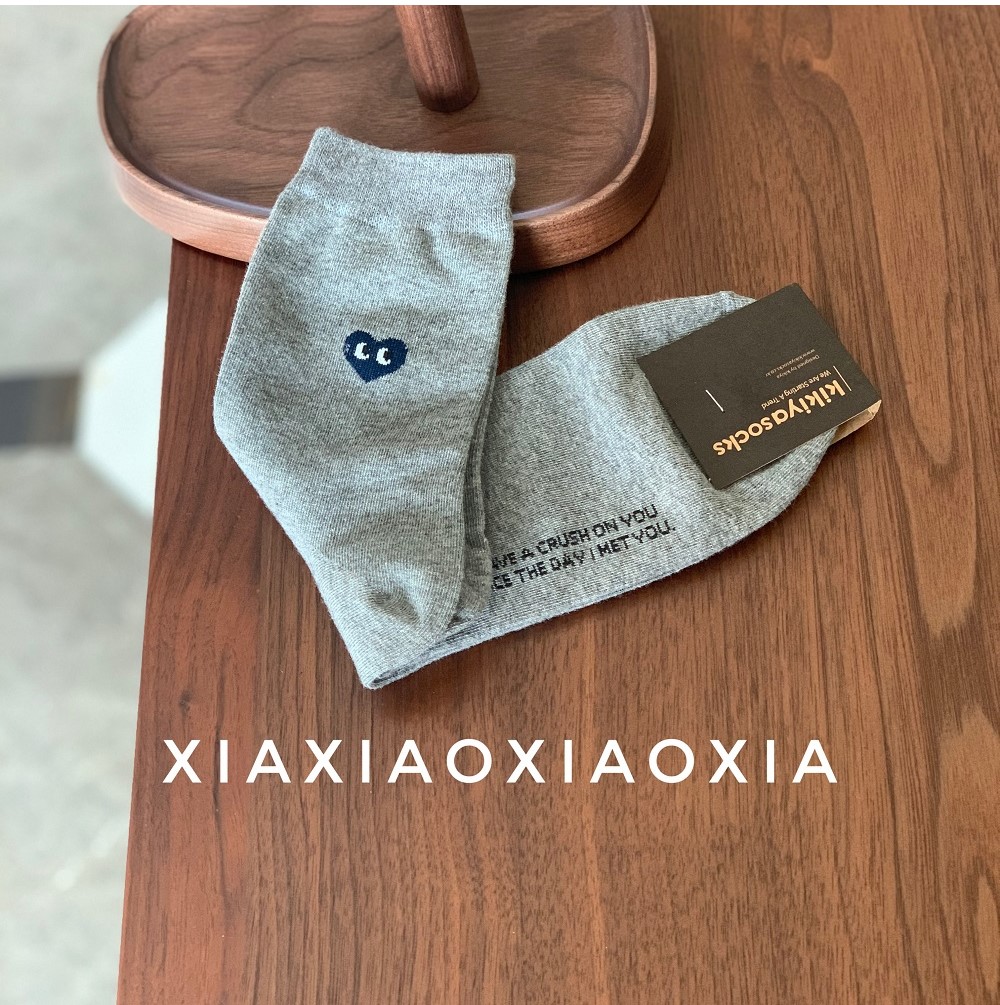 [Buy Five Pairs, Get Free] Korean In-Stock Men's Socks, Combed Cotton, Heart-Patterned Mid-Calf Cotton Socks, Regular Thickness, Business Socks