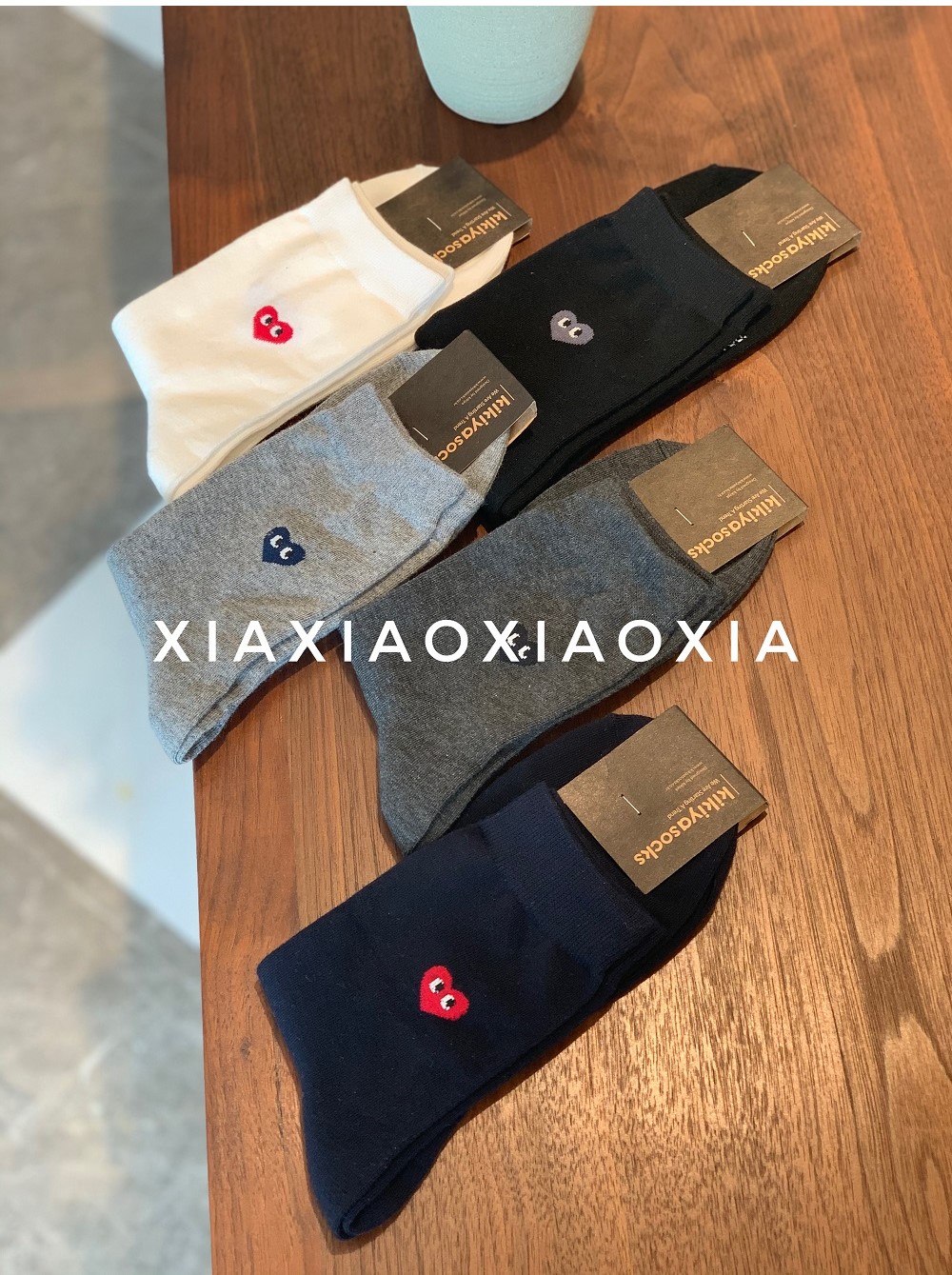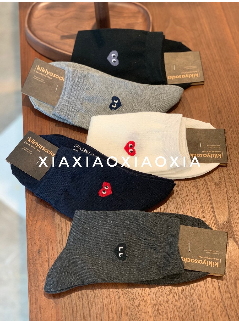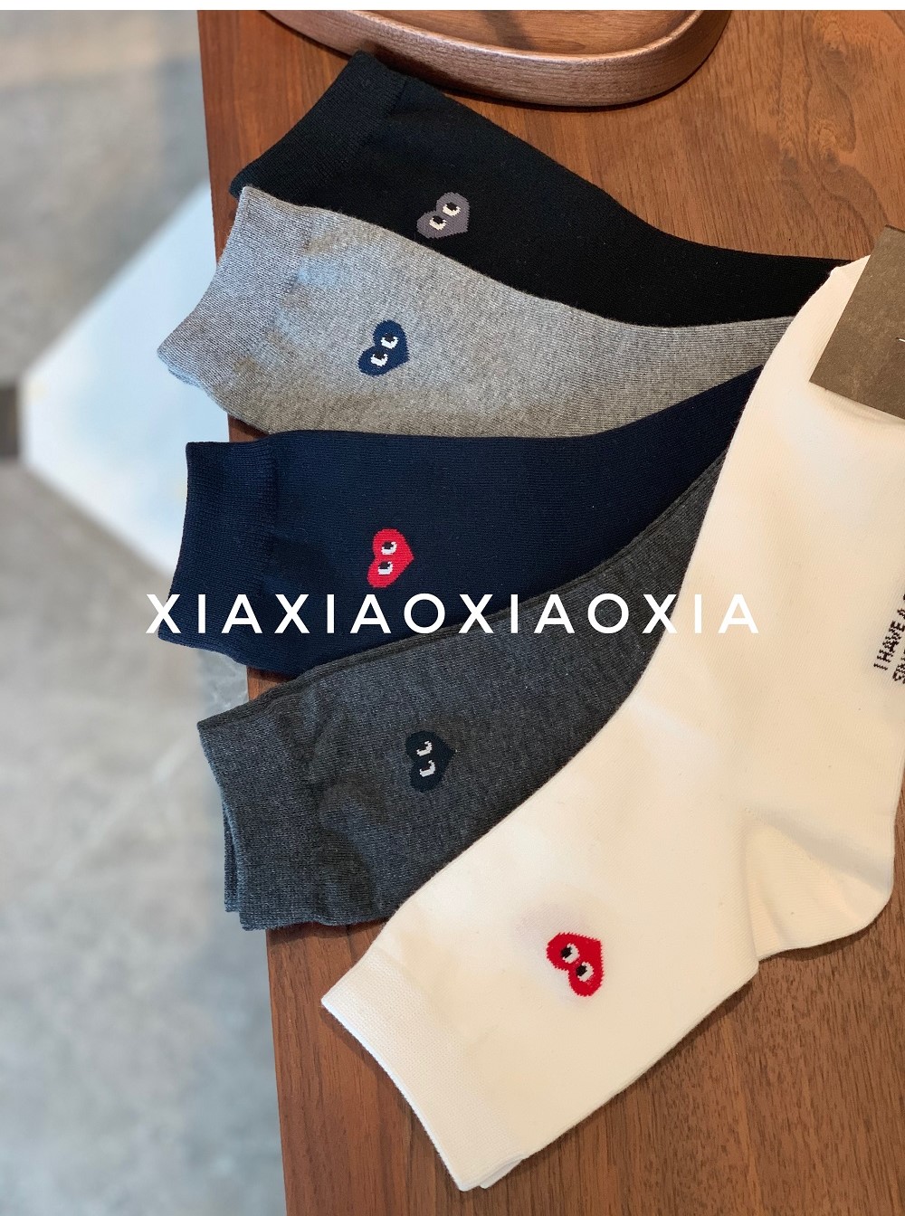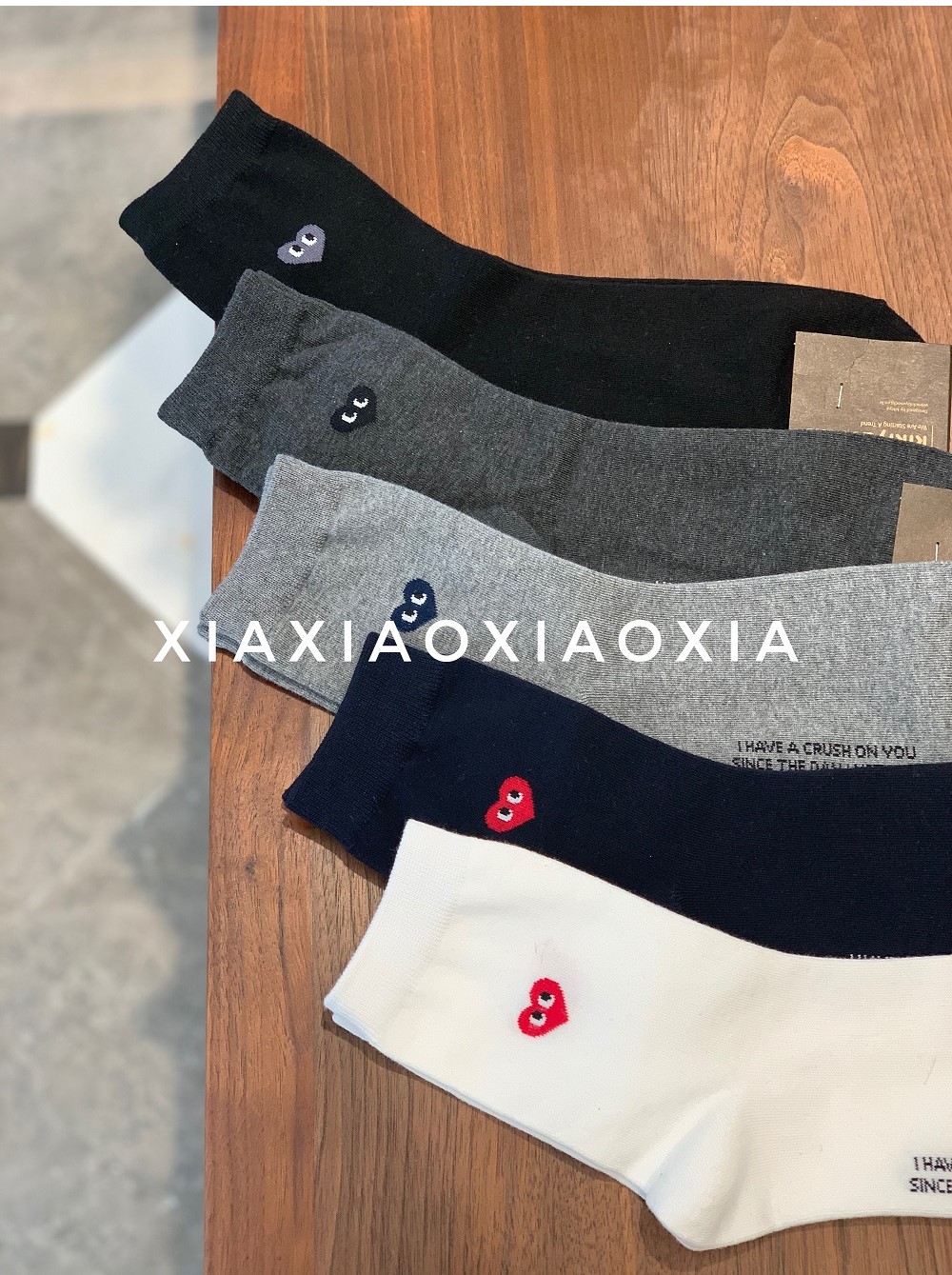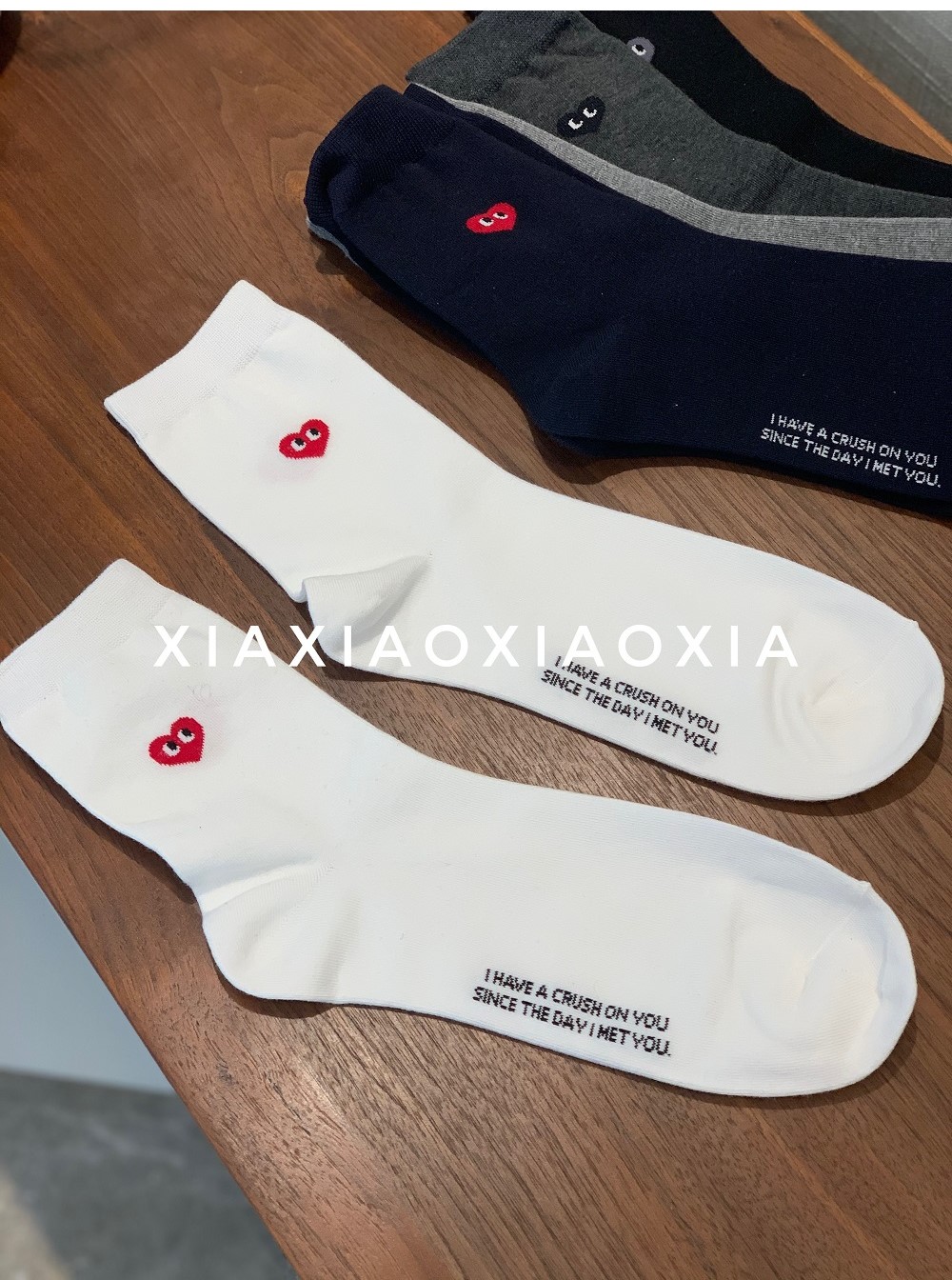 [Buy Five Pairs, Get Free] Korean In-Stock Men's Socks, Combed Cotton, Heart-Patterned Mid-Calf Cotton Socks, Regular Thickness, Business Socks