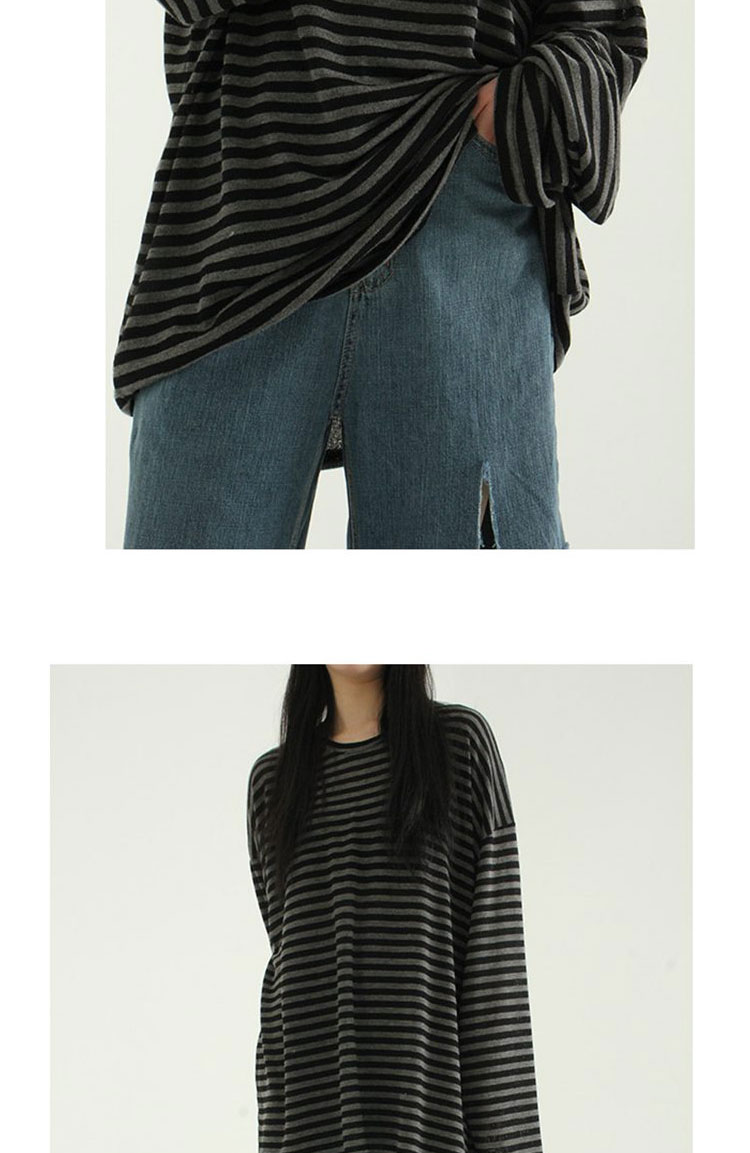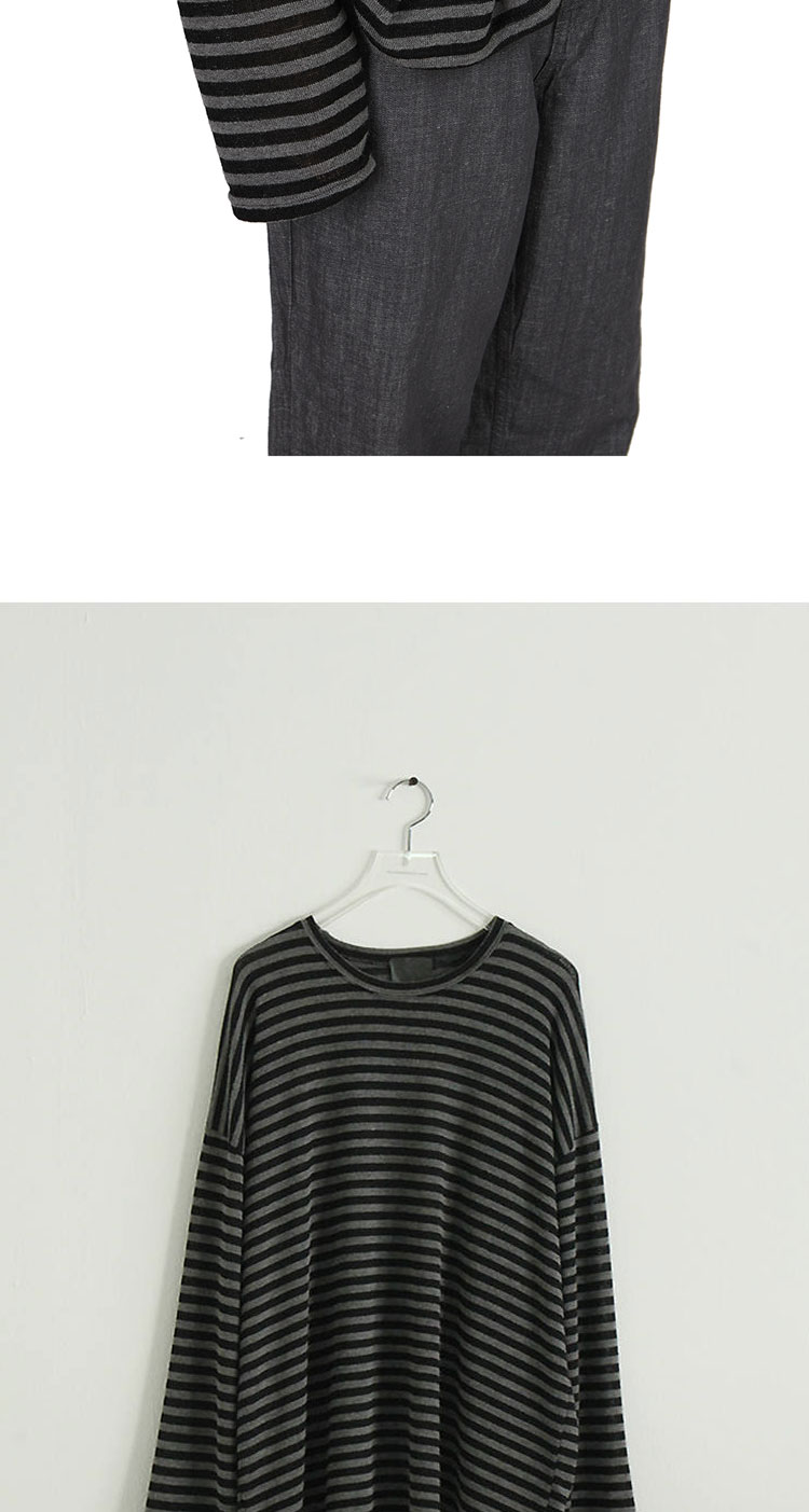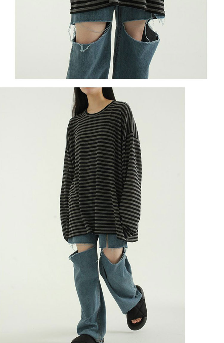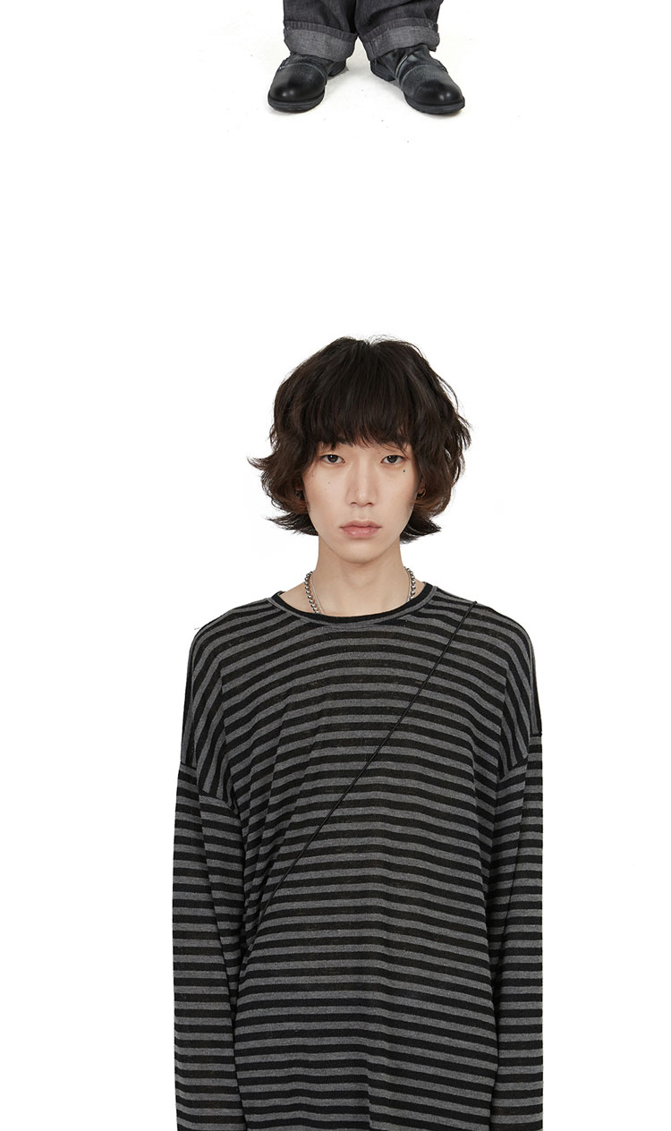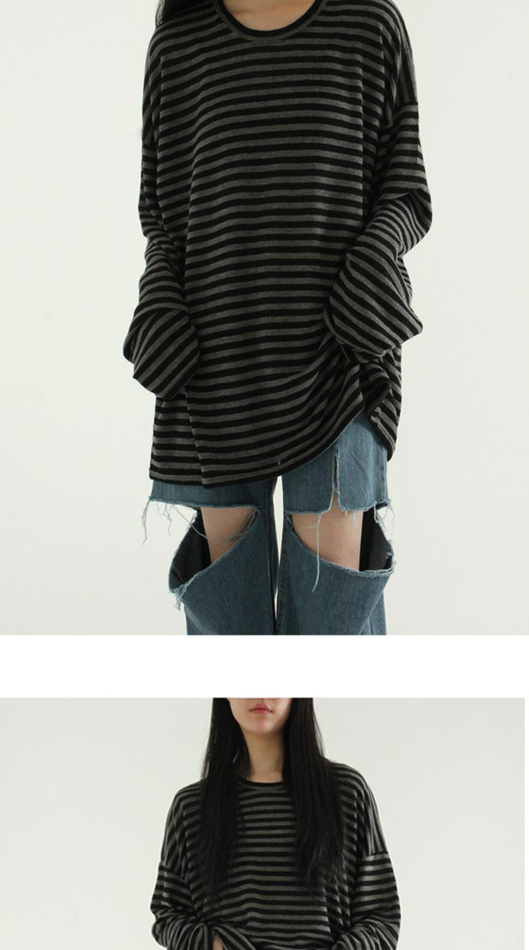 A Space as S/A Korea LAOSHU Puccia Wide Casual Loose Stripesd Long-Sleeved T-Shirt for Men and Women Lazy Style