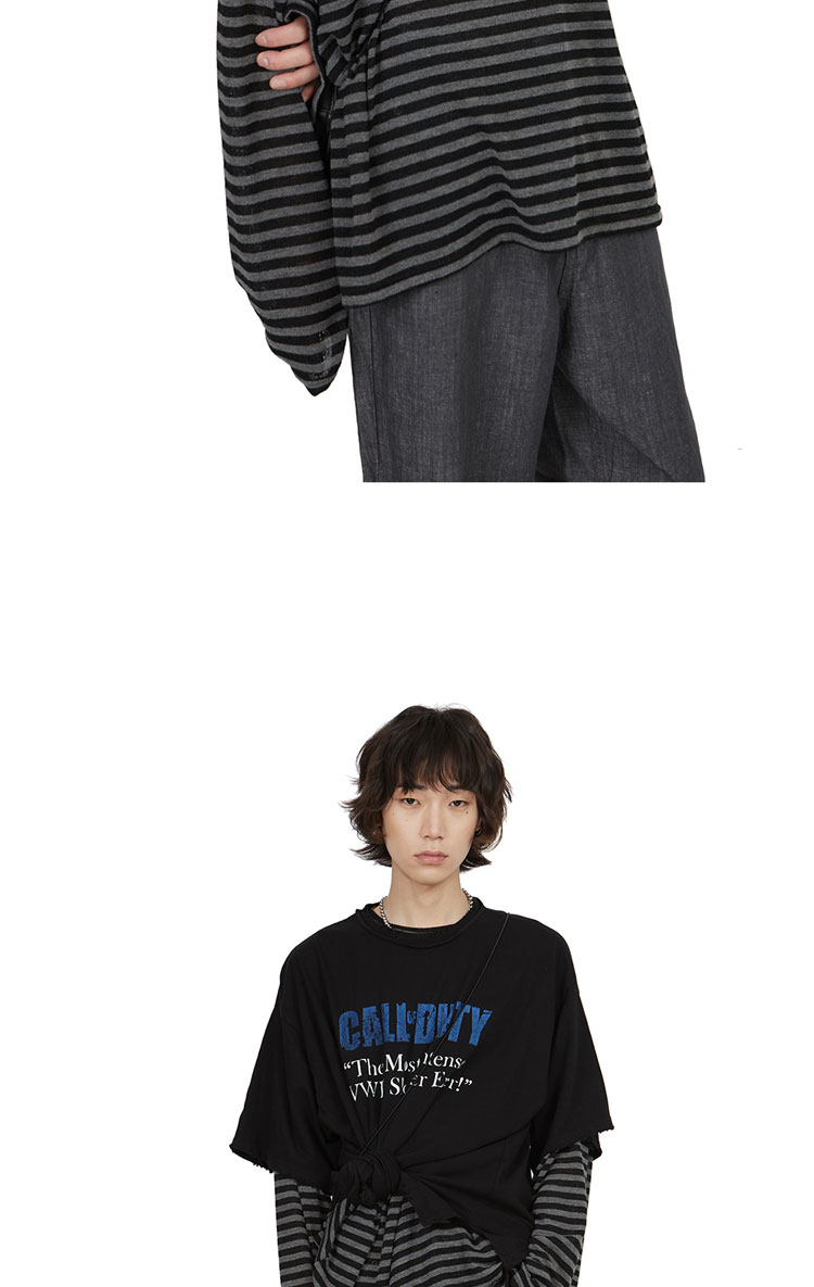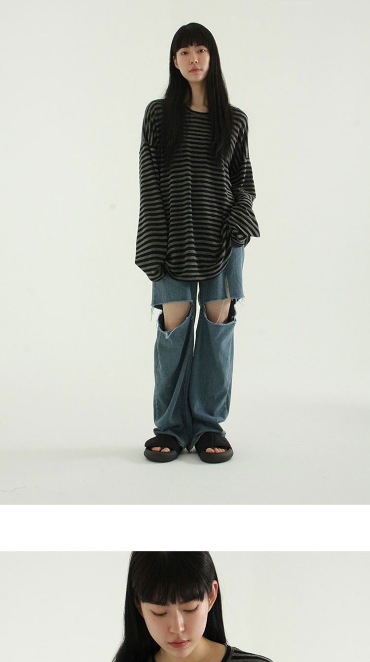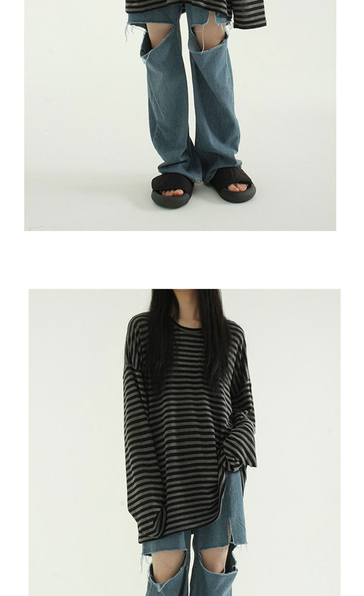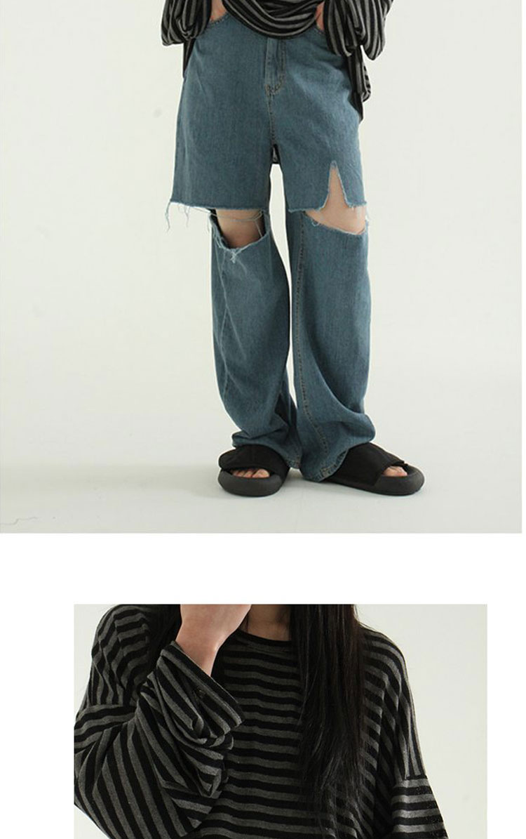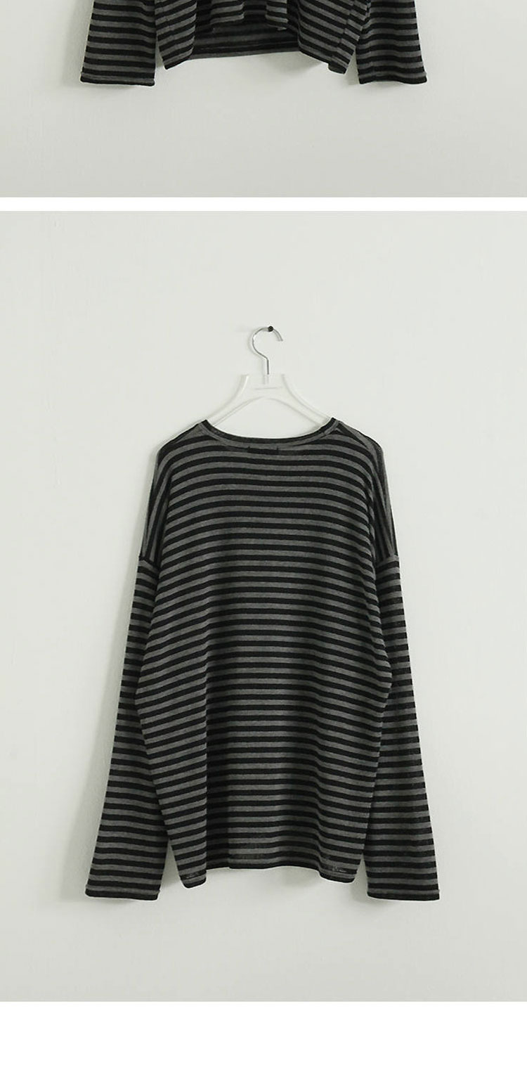 A Space as S/A Korea LAOSHU Puccia Wide Casual Loose Stripesd Long-Sleeved T-Shirt for Men and Women Lazy Style
