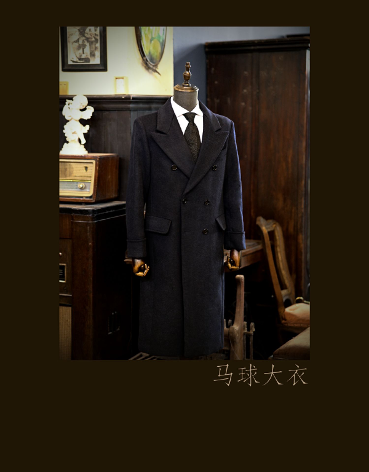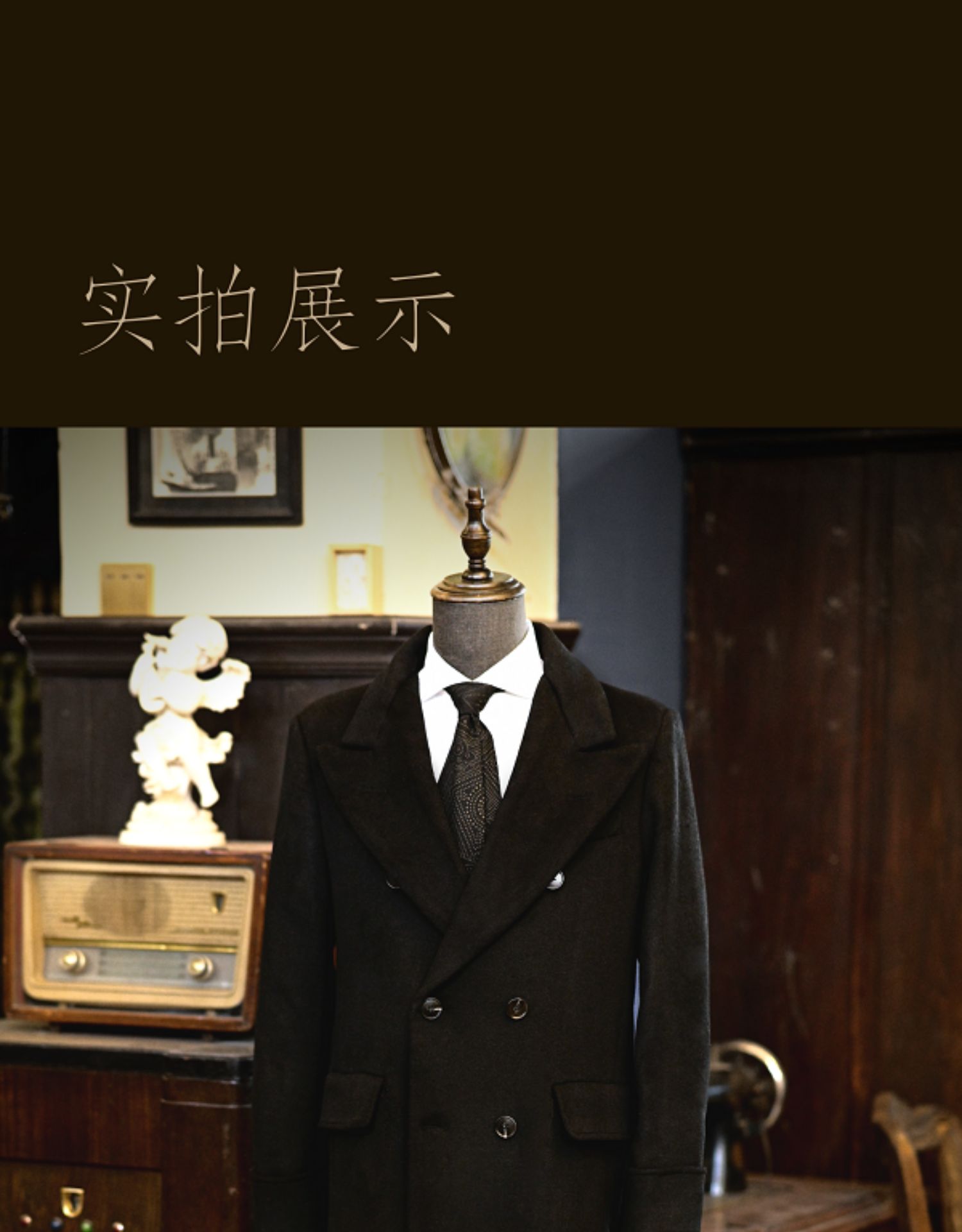 Men's Woolen Coat, Double-Breasted Classic Polo Collar, Thickened for Autumn and Winter