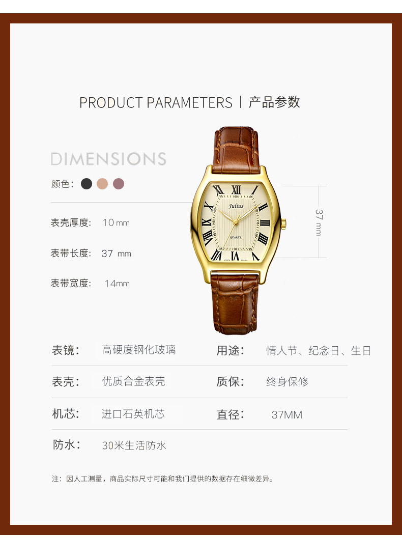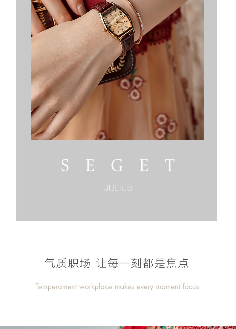 Julishi Watch Women's Light Luxury High-End Authentic Square Waterproof Quartz Watch Retro Workplace Ladies Watch