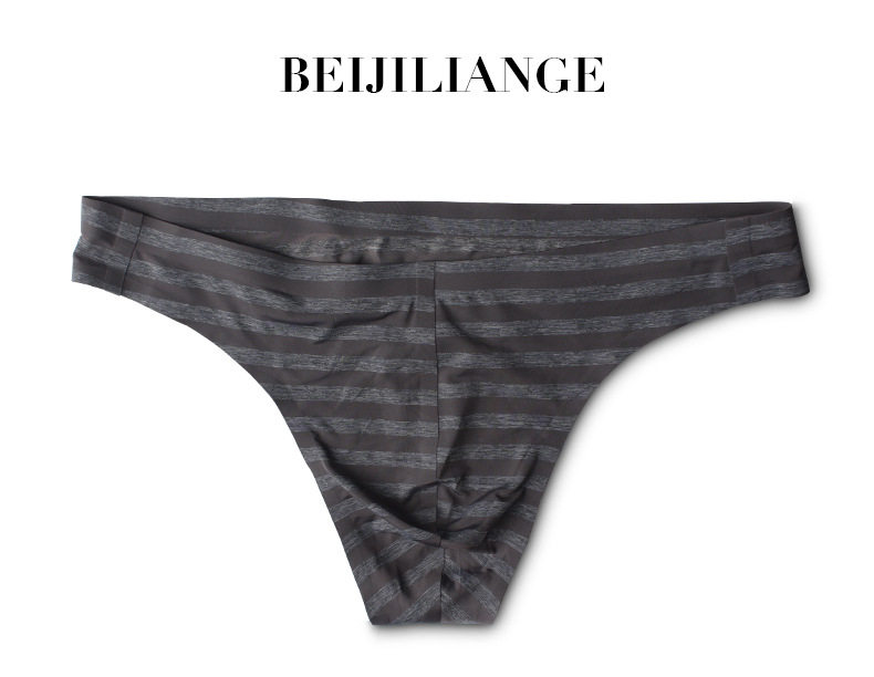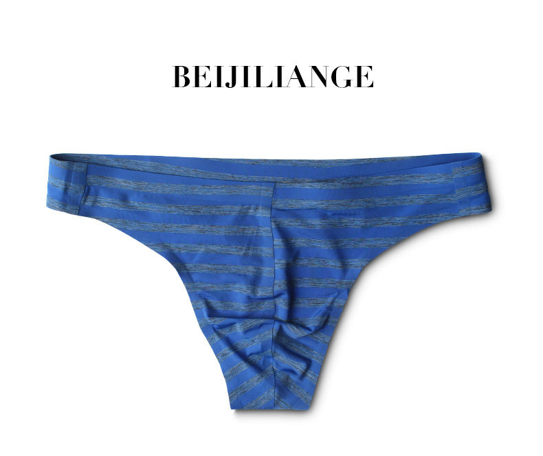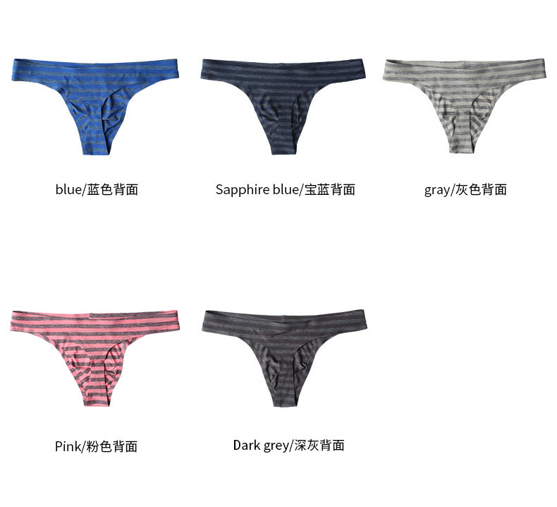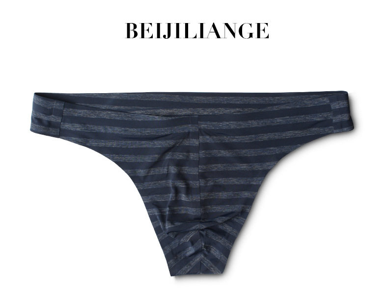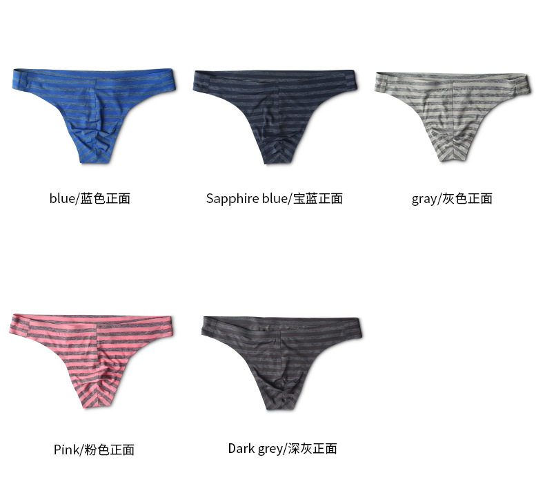 Gentleman's Premium 2-Pack Seamless Men's Thong Sexy Ice Silk Underwear for Young Men Striped Low-Rise One-Piece