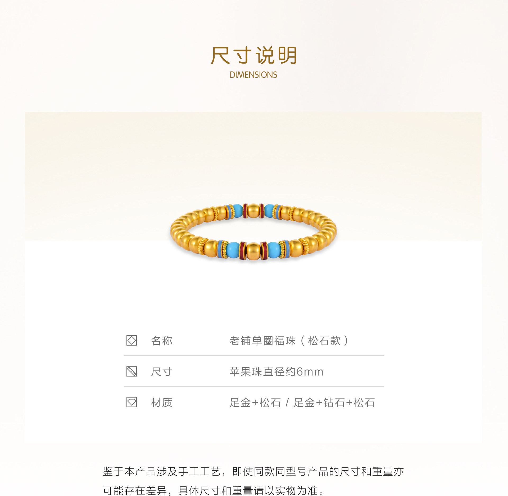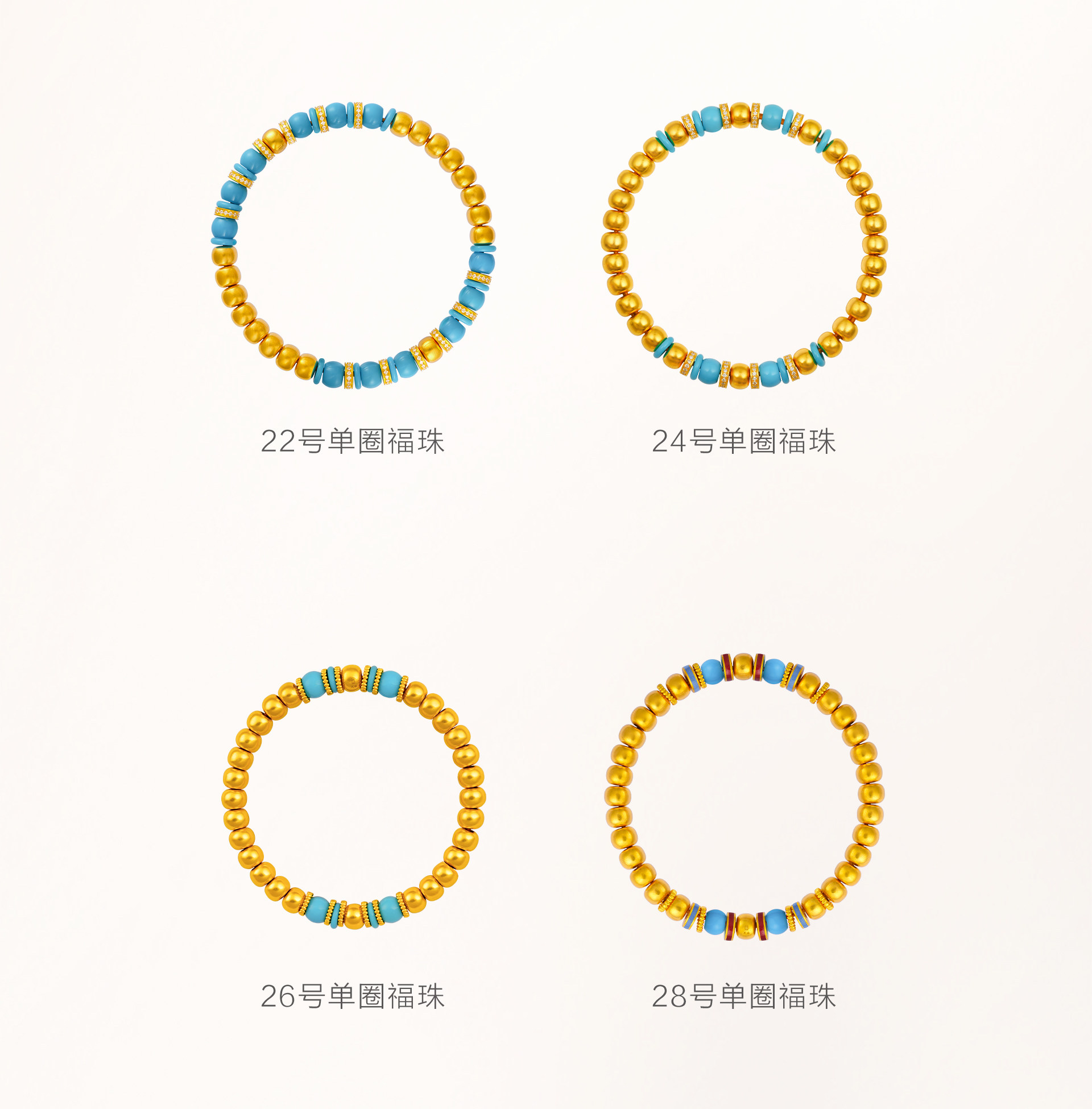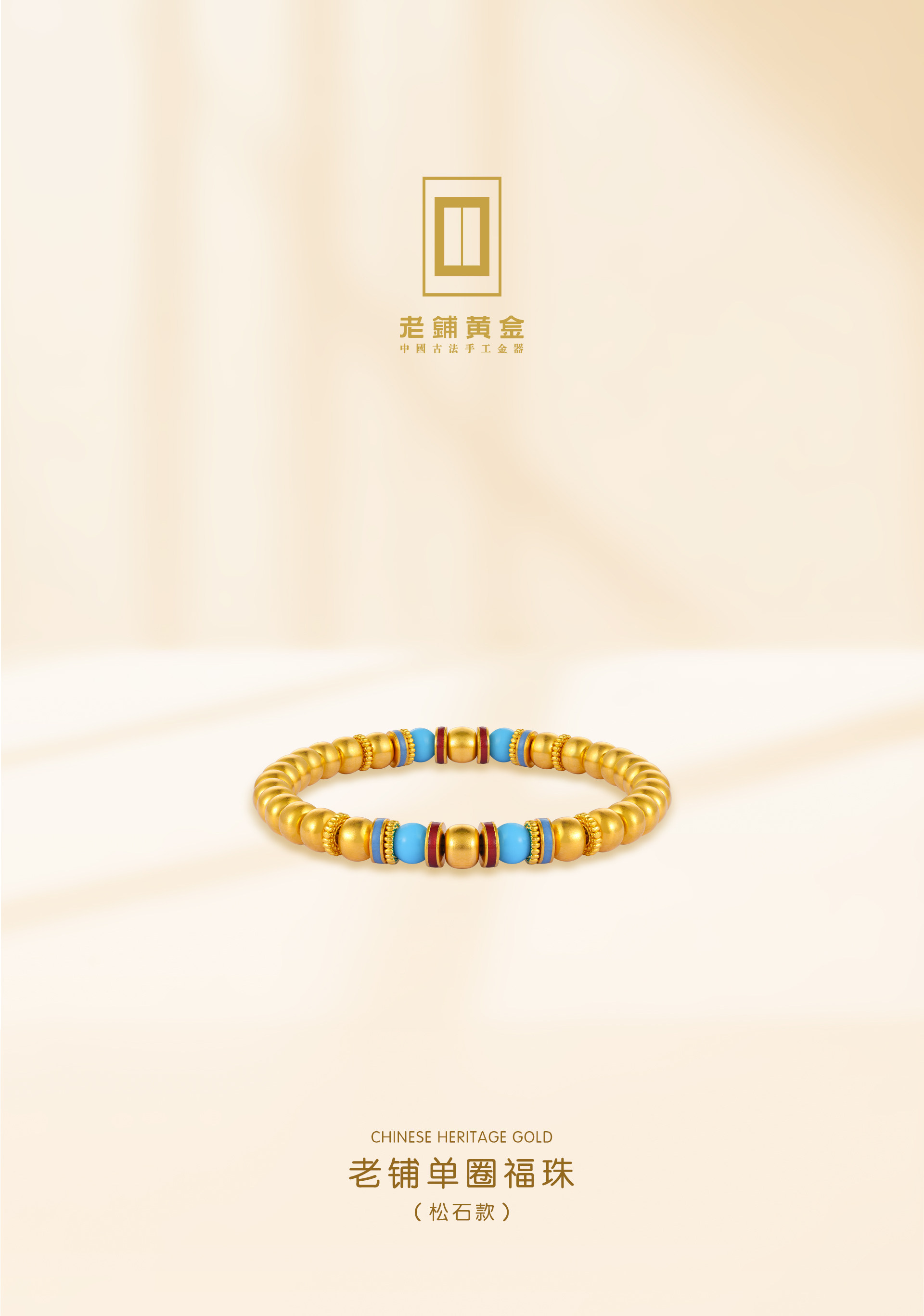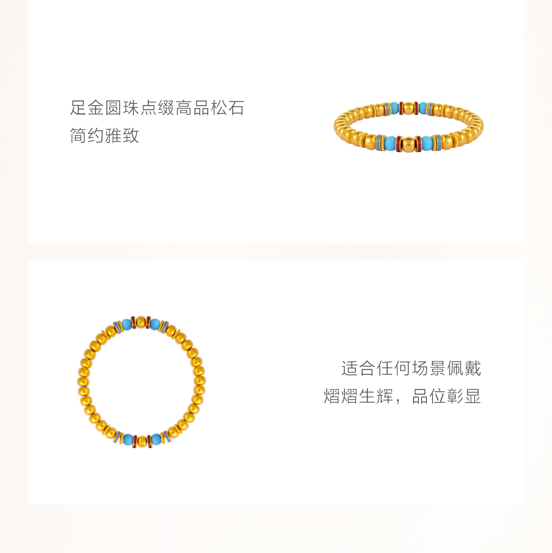 Old Store Gold Traditional Handmade Pure Gold Bracelet· Old Store Turquoise Single Circle Fortune Bead