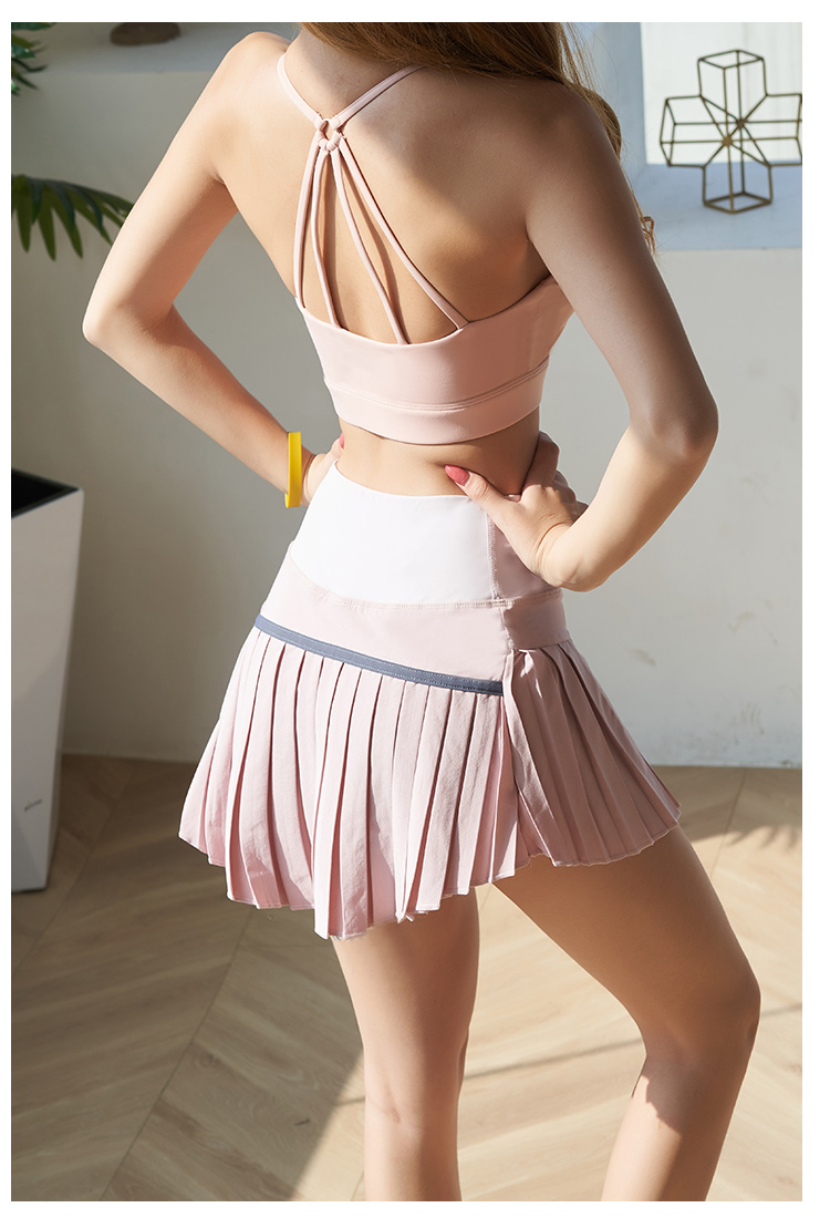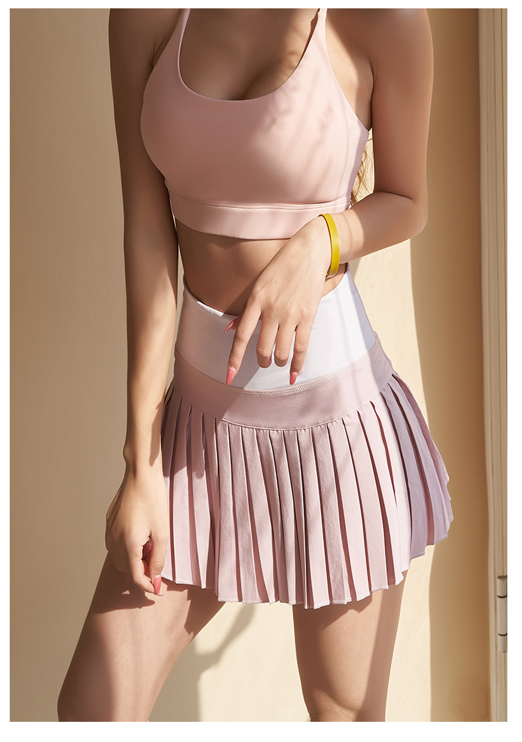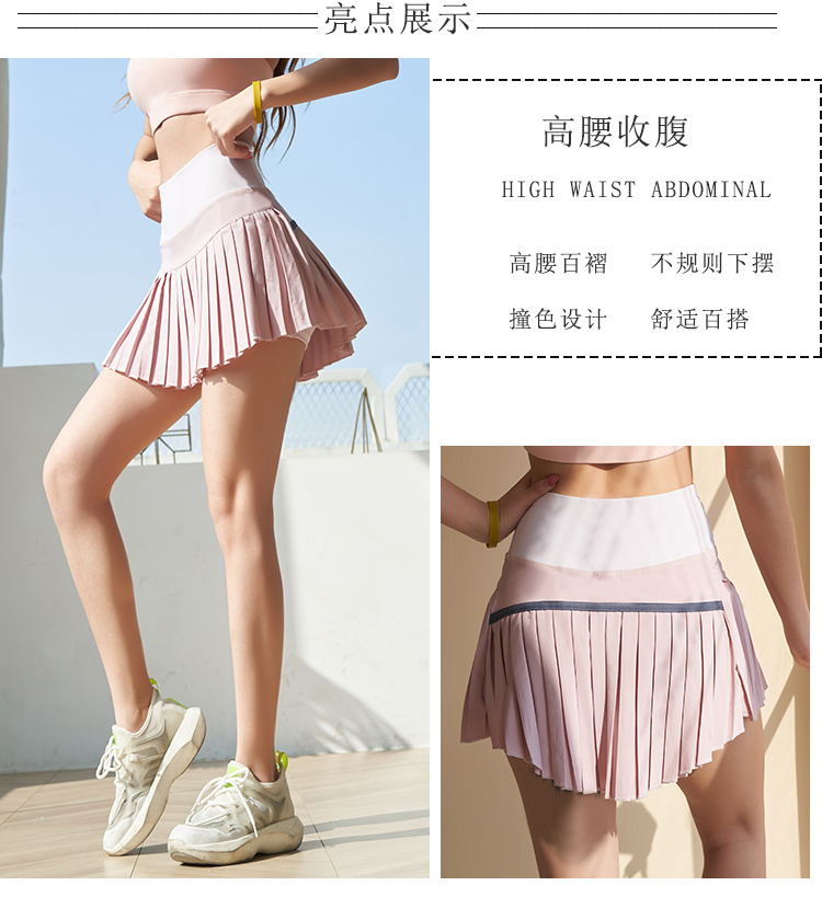 Yoyomeat High-Waisted Fitness Short Skirt Sports Skirt Women's Fake Two-Piece Skirt Pleated Skirt Marathon Running Skirt