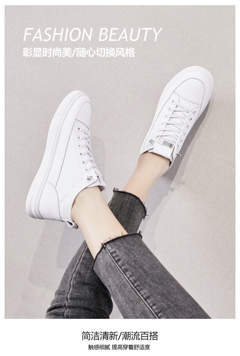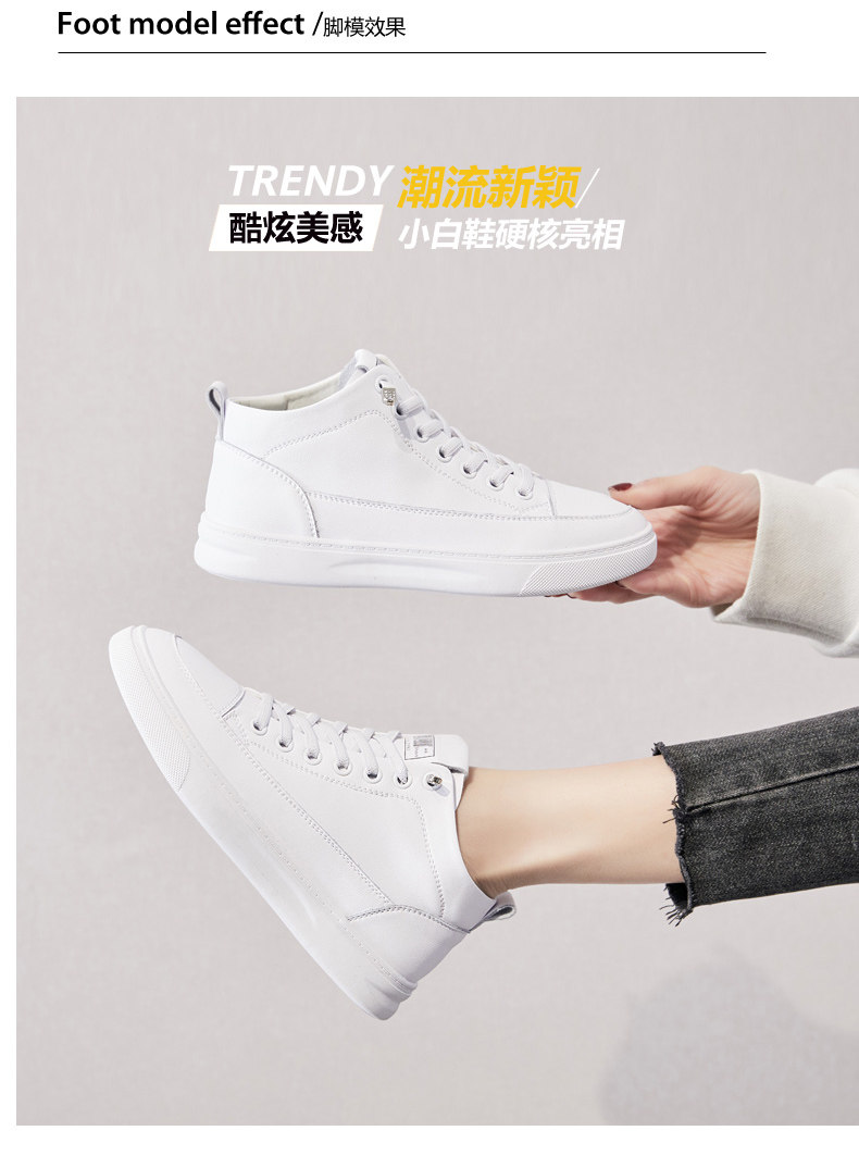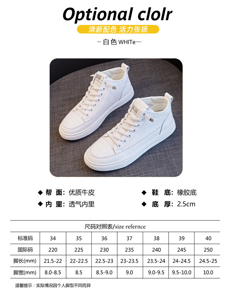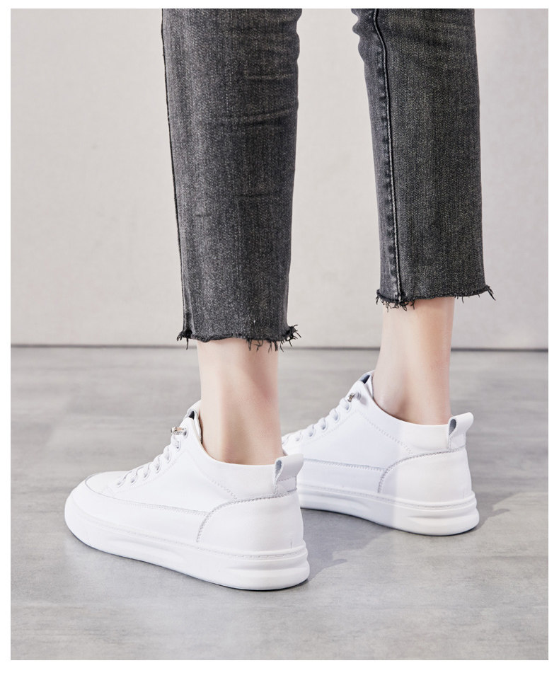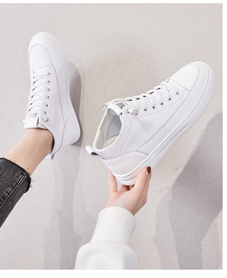 Hong Kong Genuine Leather Casual White Shoes for Women 2025 New Spring and Autumn Versatile Trendy Flat Casual Shoes High-Top Sneakers