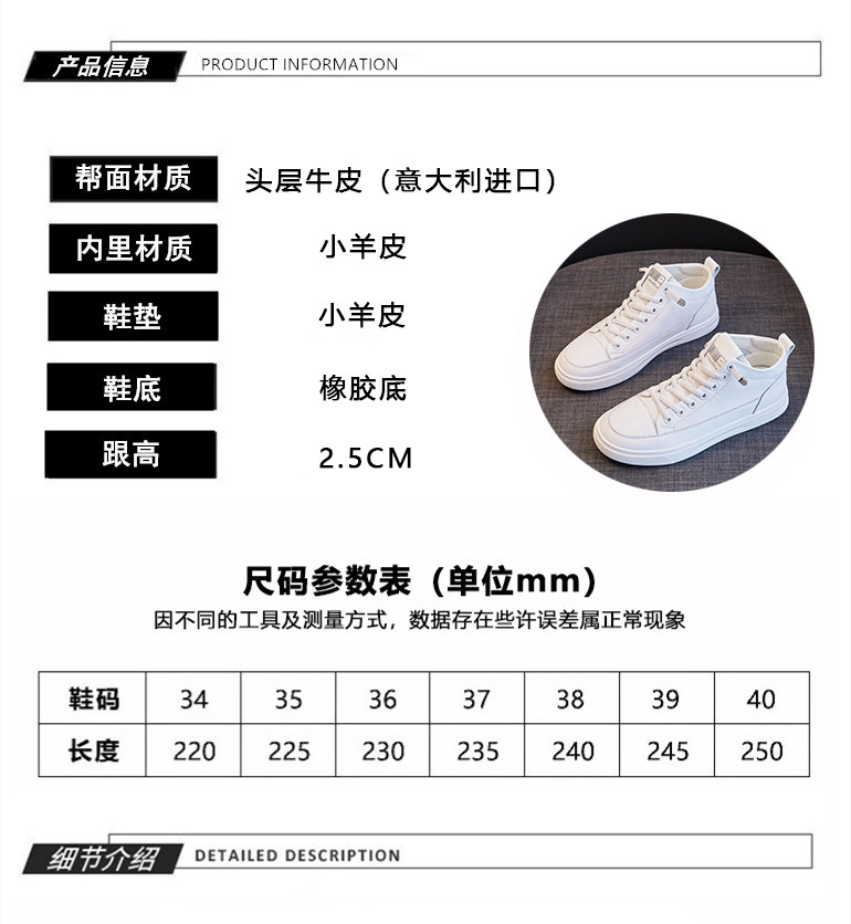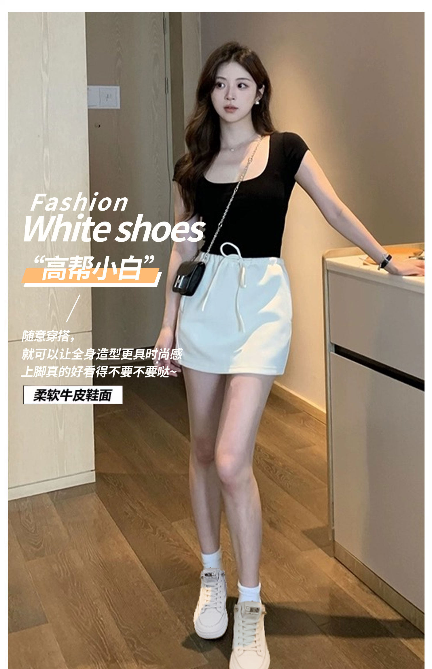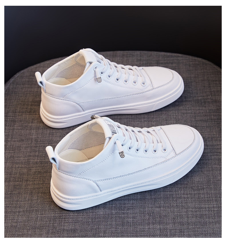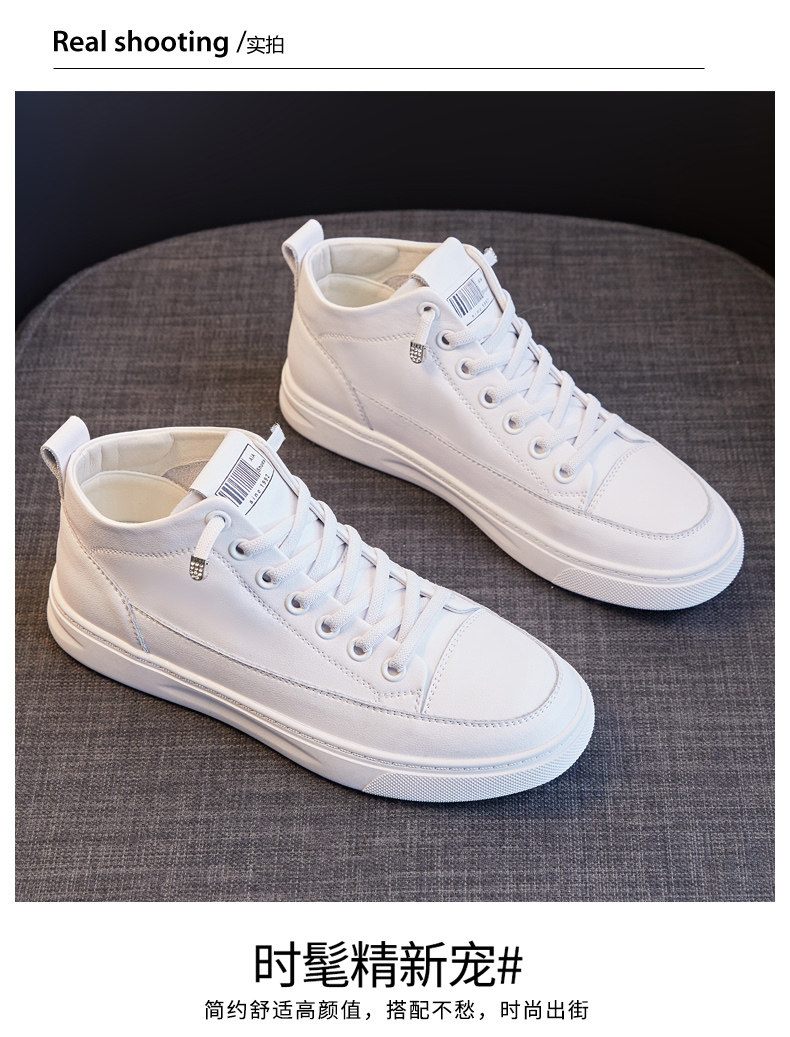 Hong Kong Genuine Leather Casual White Shoes for Women 2025 New Spring and Autumn Versatile Trendy Flat Casual Shoes High-Top Sneakers