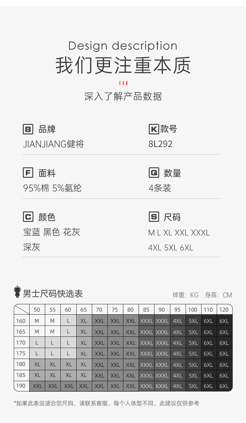 Jianjiang Men's Briefs, Men's Pure Cotton High-End Breathable Shorts, Plus-Size Men's Briefs, Men's Briefs