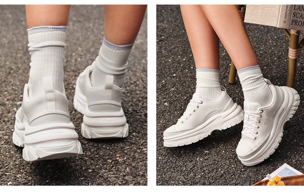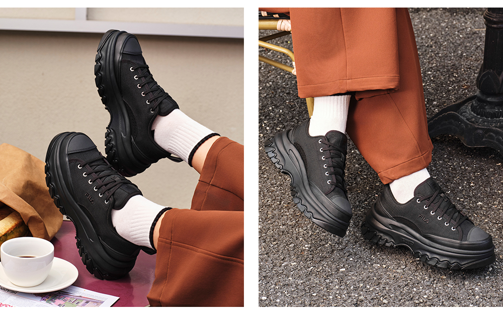 Fila Official Lava Women's Shoes Thick-Soled Canvas Shoes Casual Shoes Height-Increasing White Shoes Sneakers Black Shoes