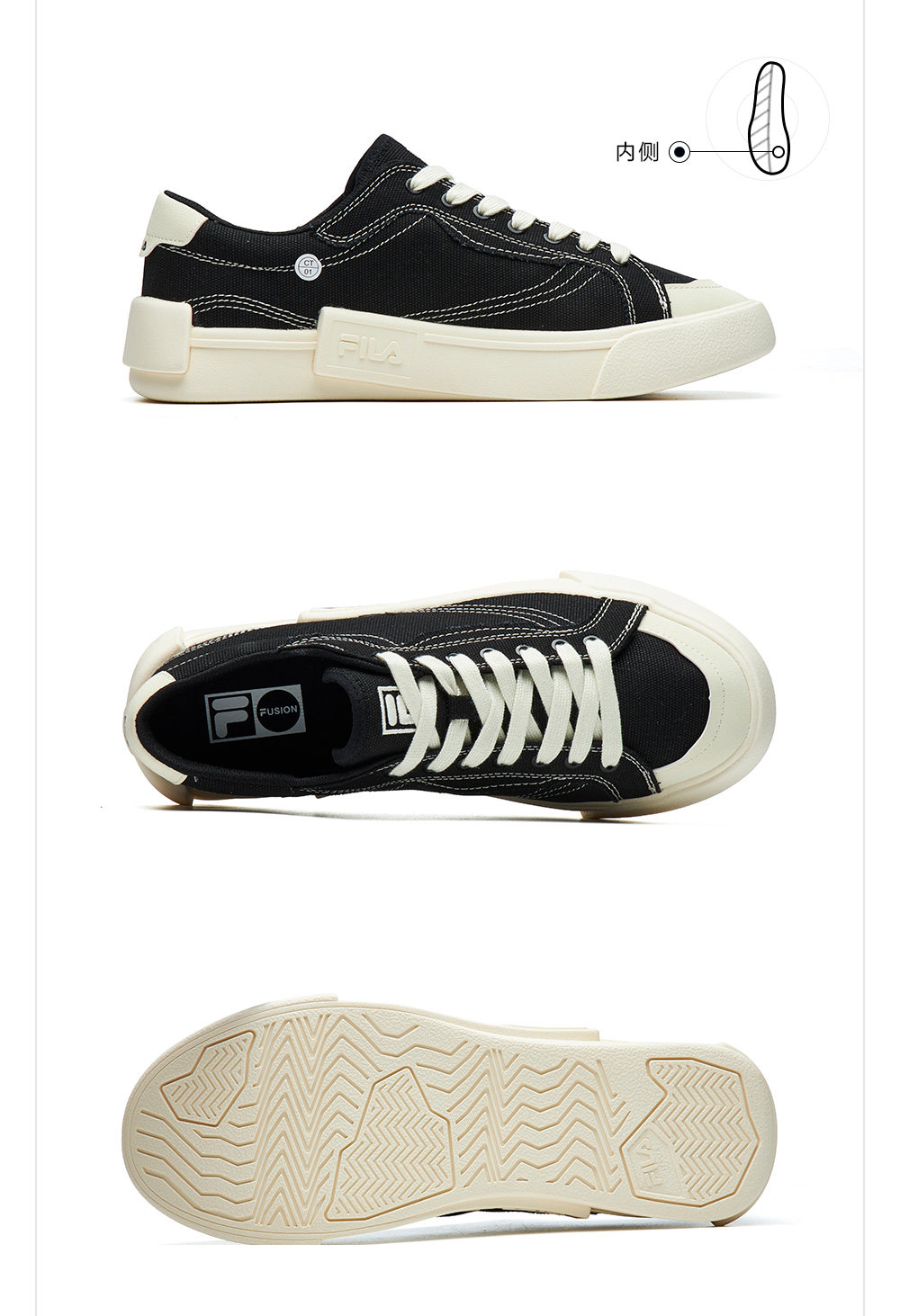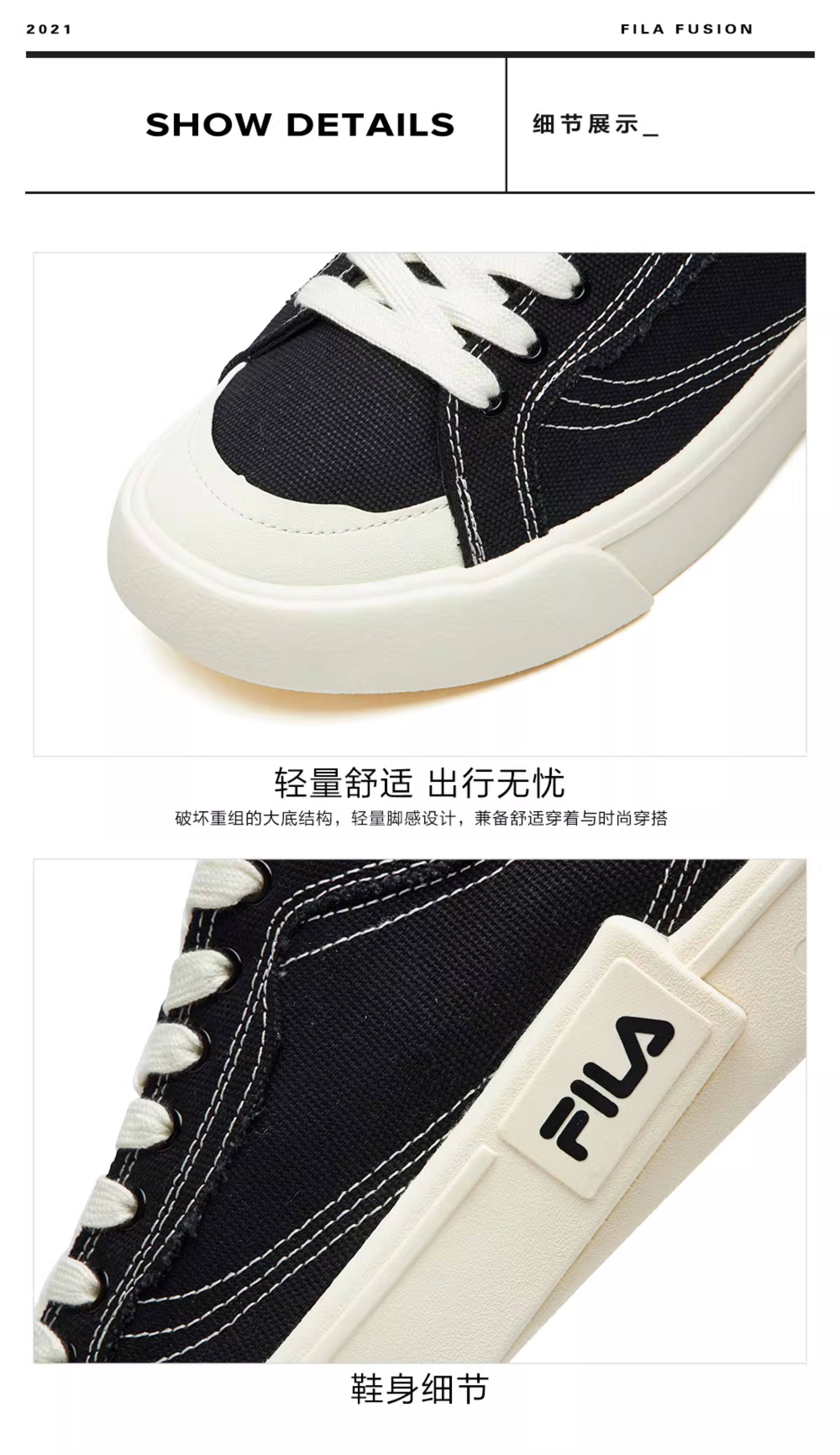 Fila Fusion Trendy Brand Pop Canvas Shoes Women's Sneakers Lightweight Casual Sneakers Black Men's Shoes