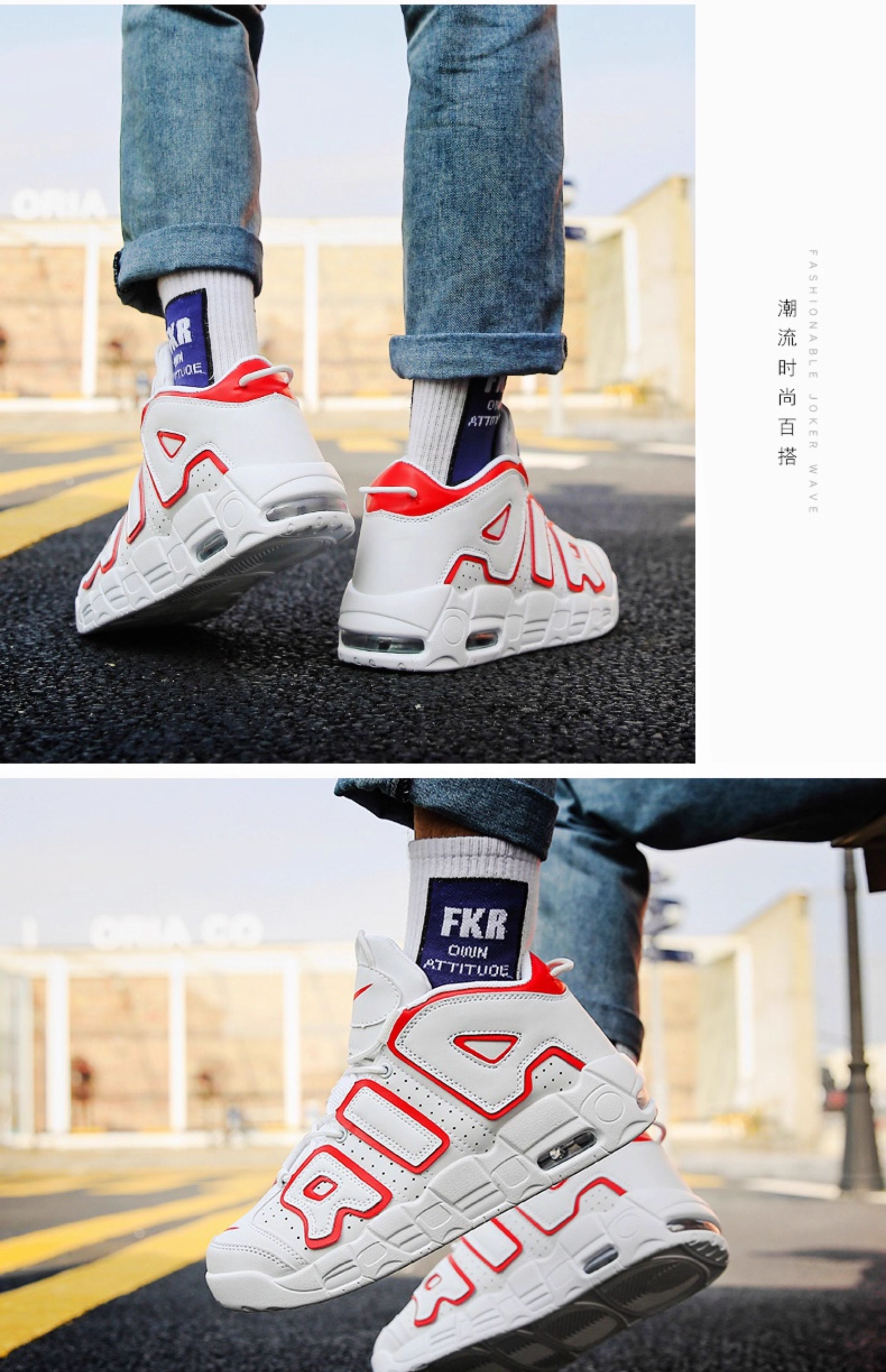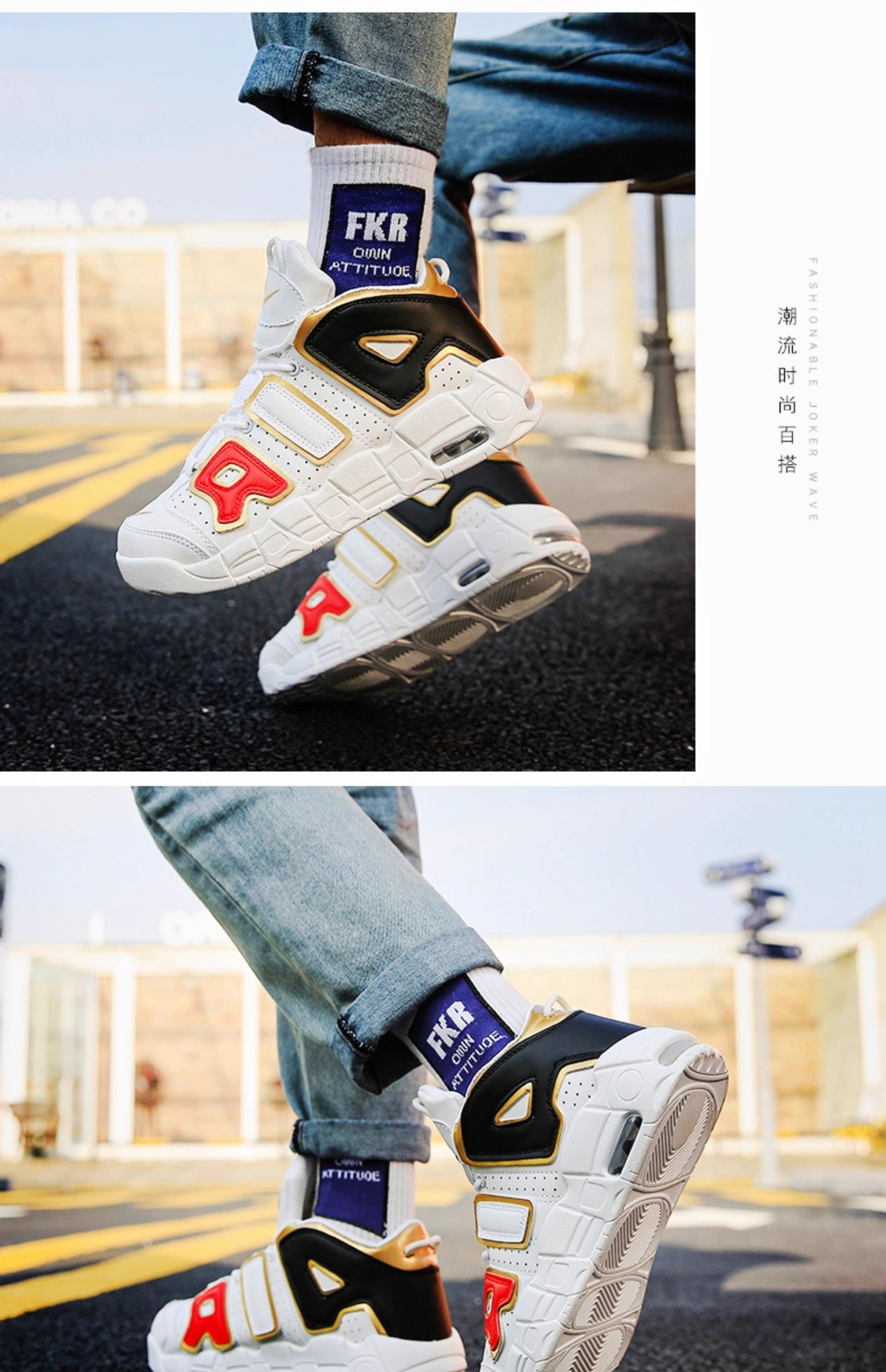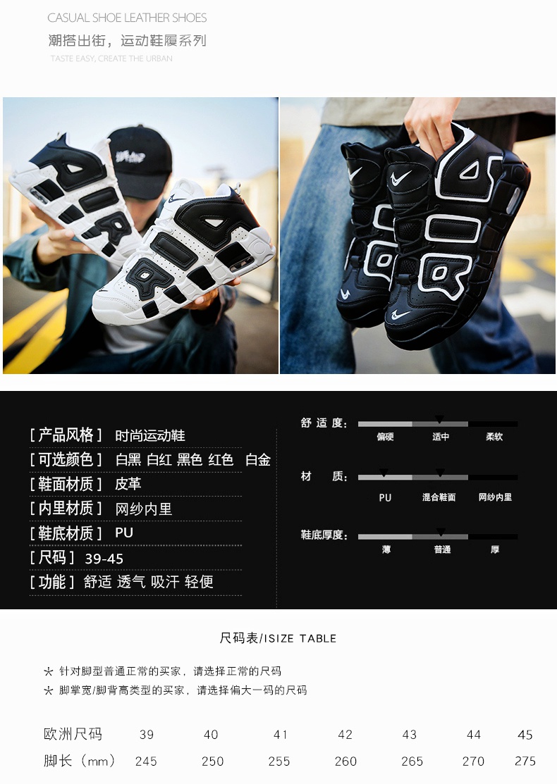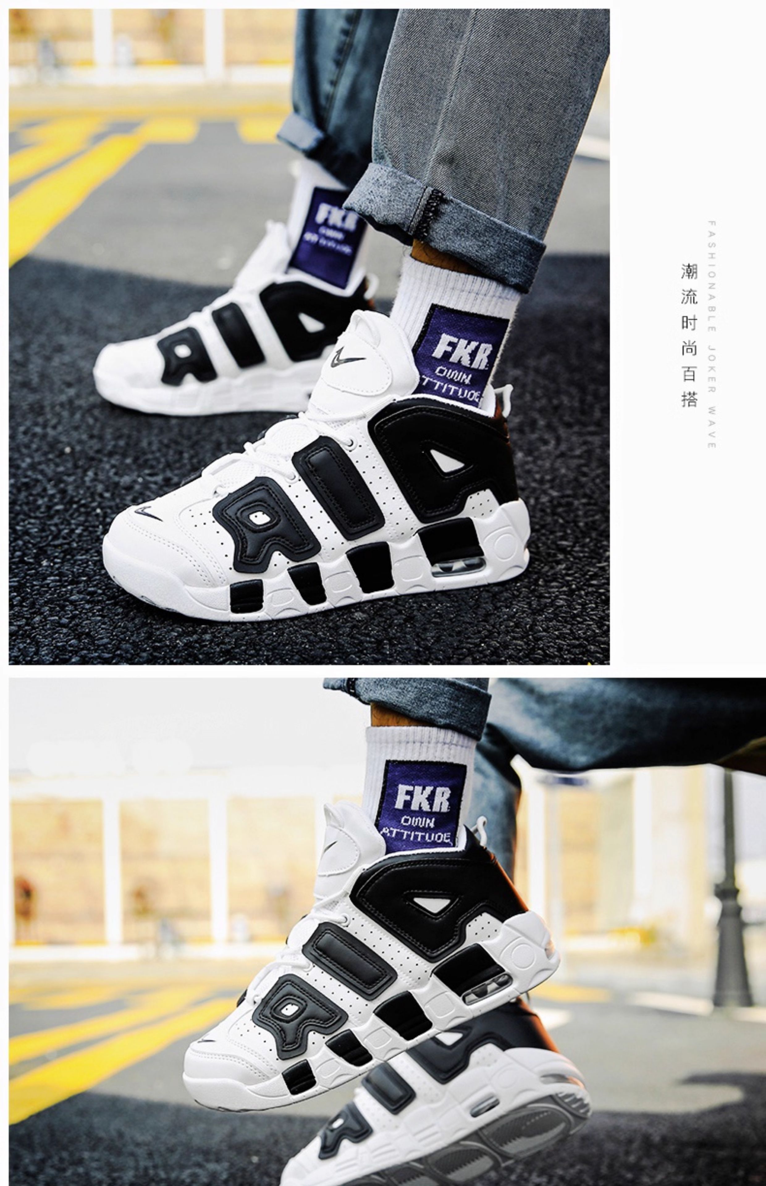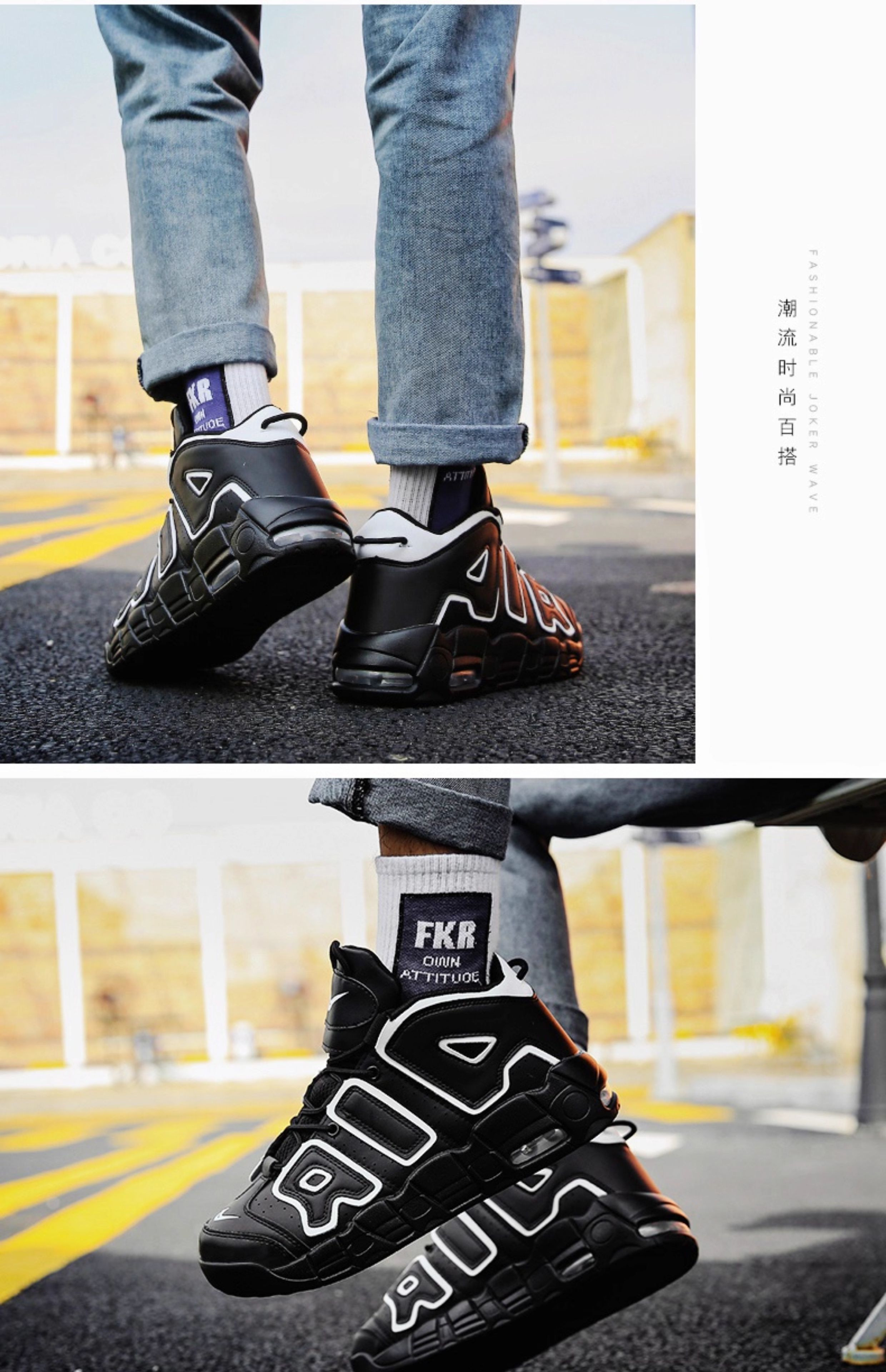Pippen Big Air Men's Shoes Putian Dad Sneakers High-Top Basketball Air Force Cushion ins Black and White Panda No.1 Sneakers