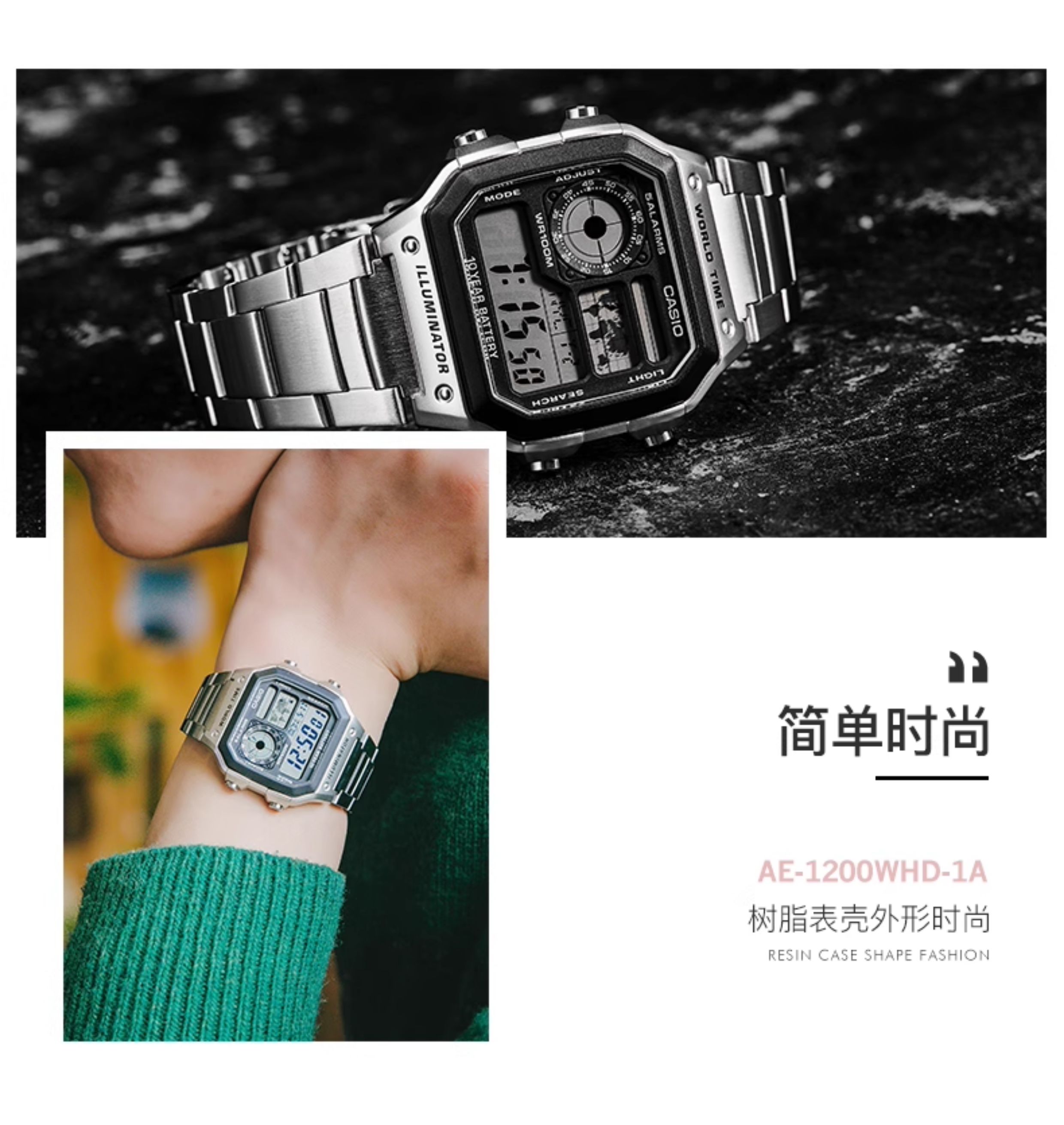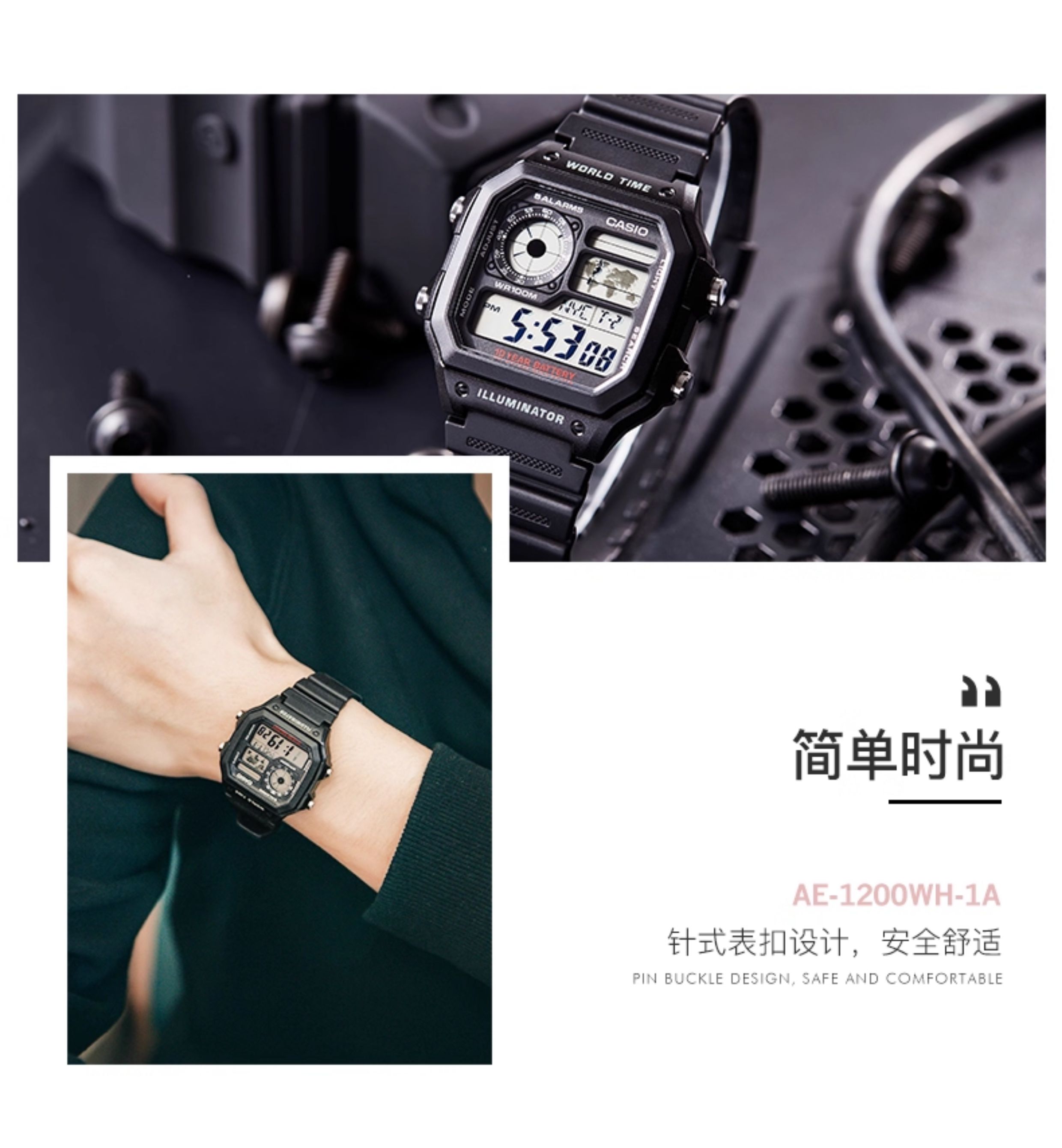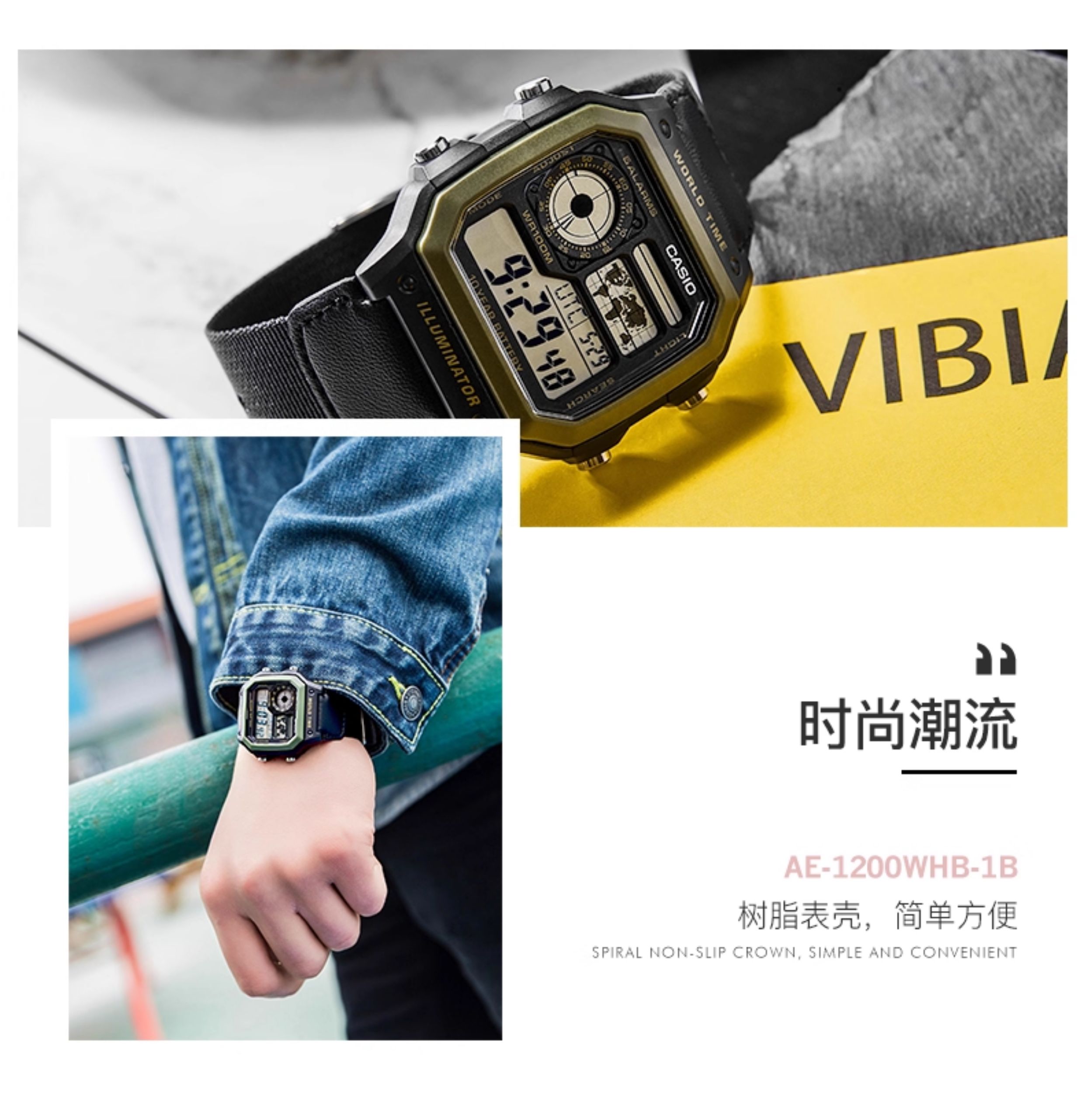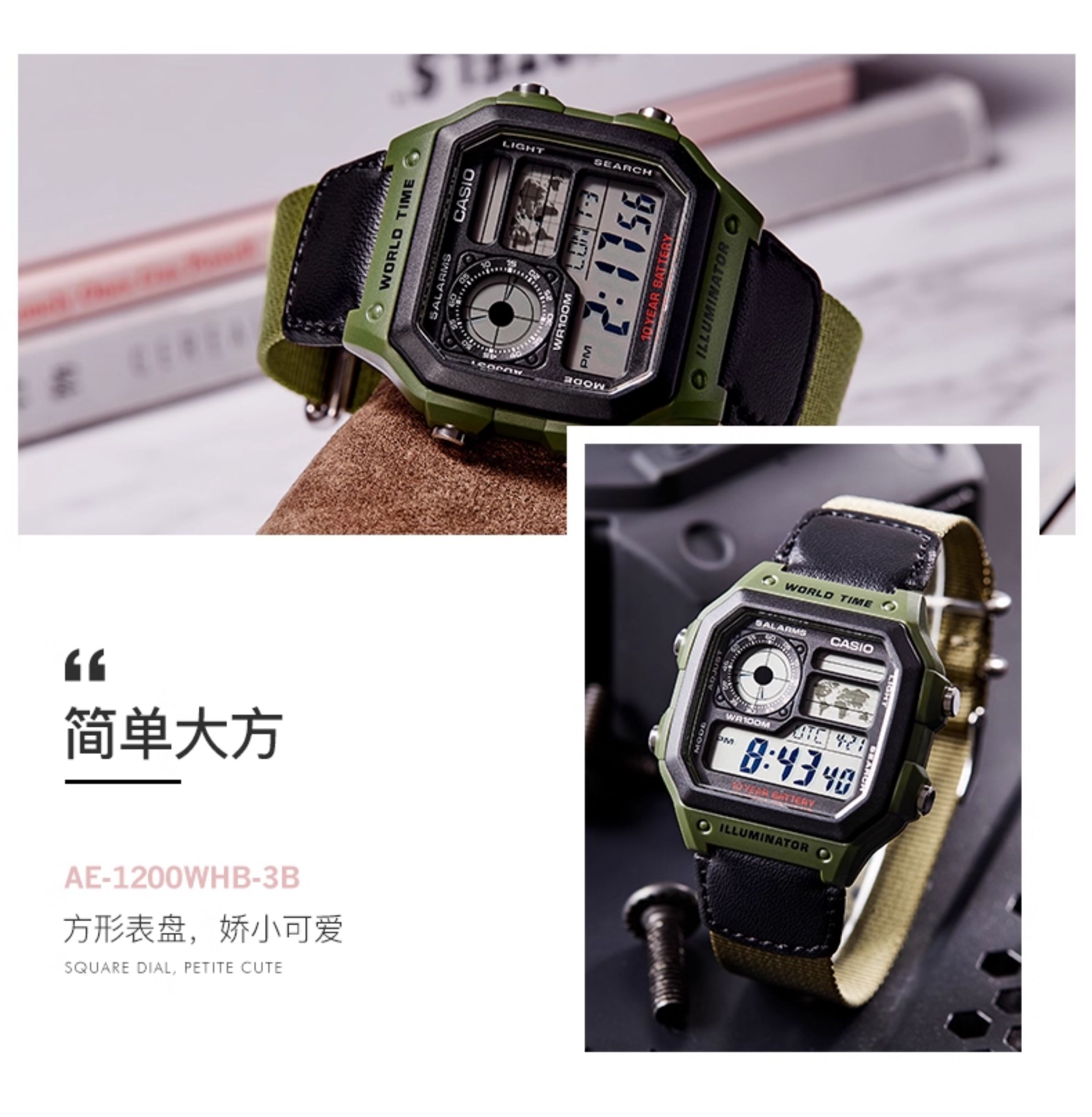 Casio small square watch male students crazy with ten years of power electronics students Men's Watch AE-1200