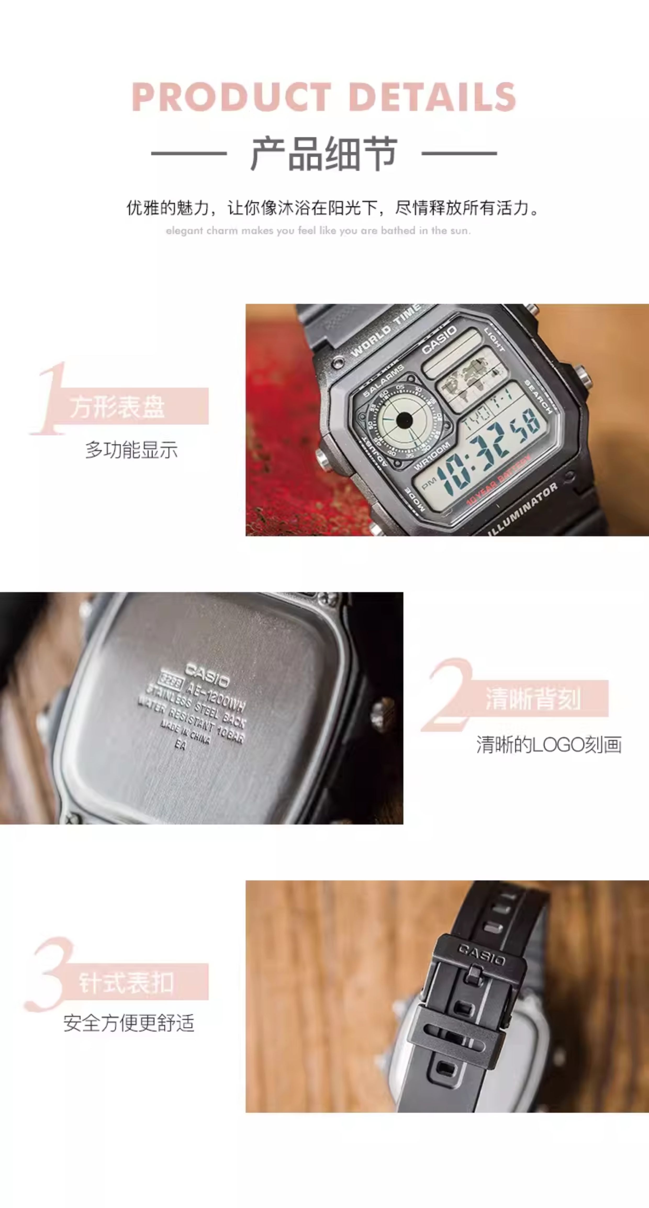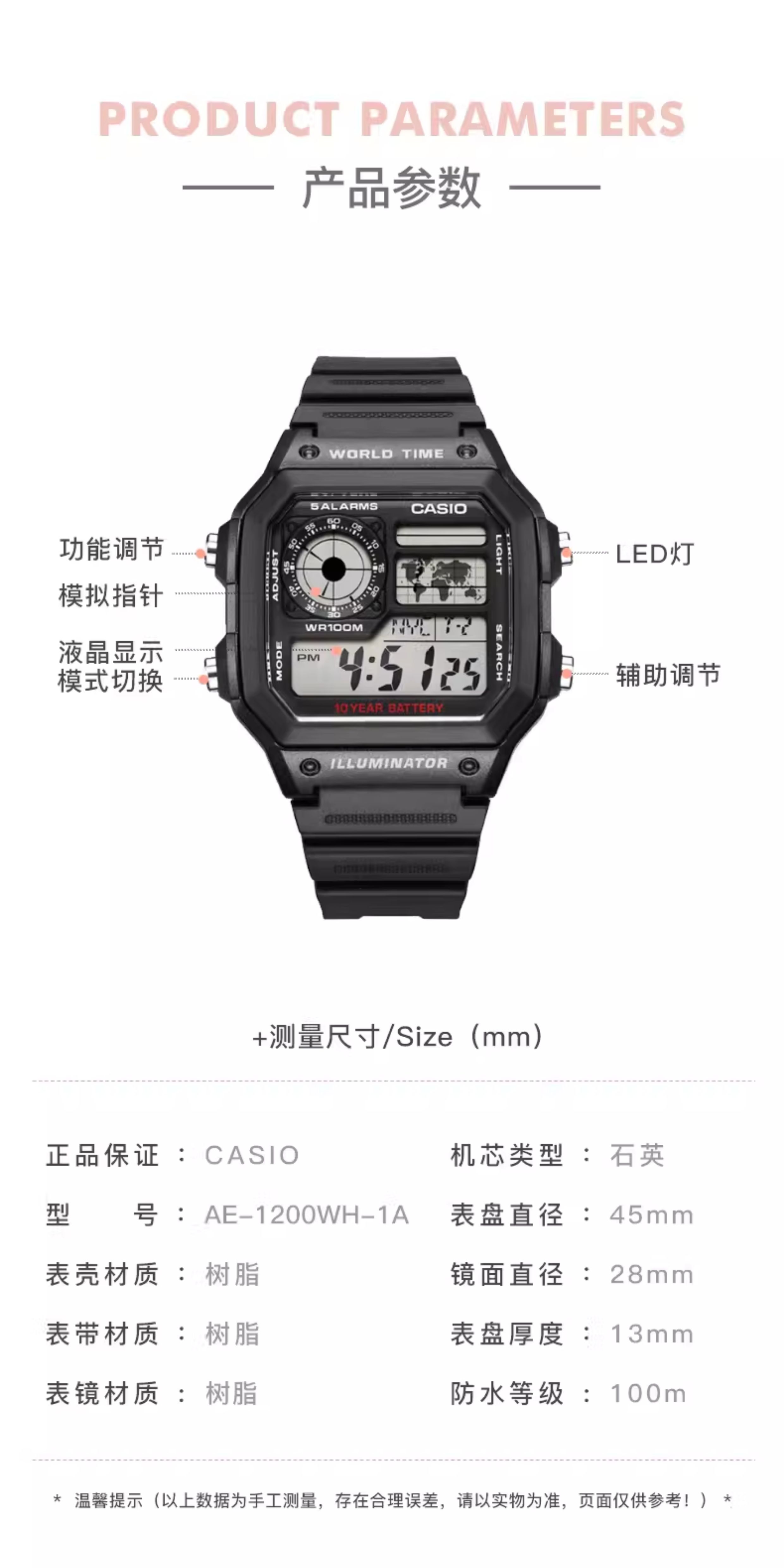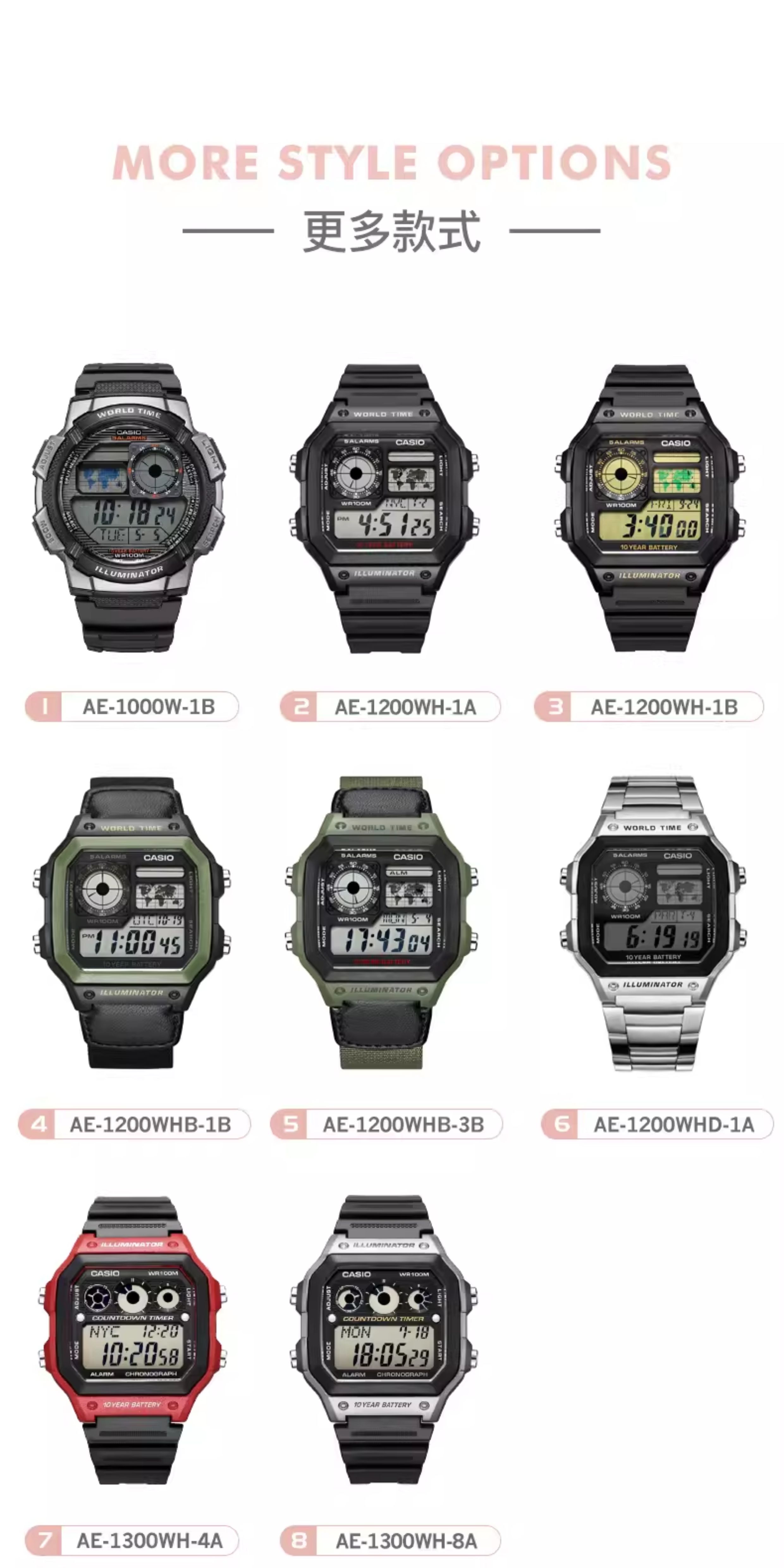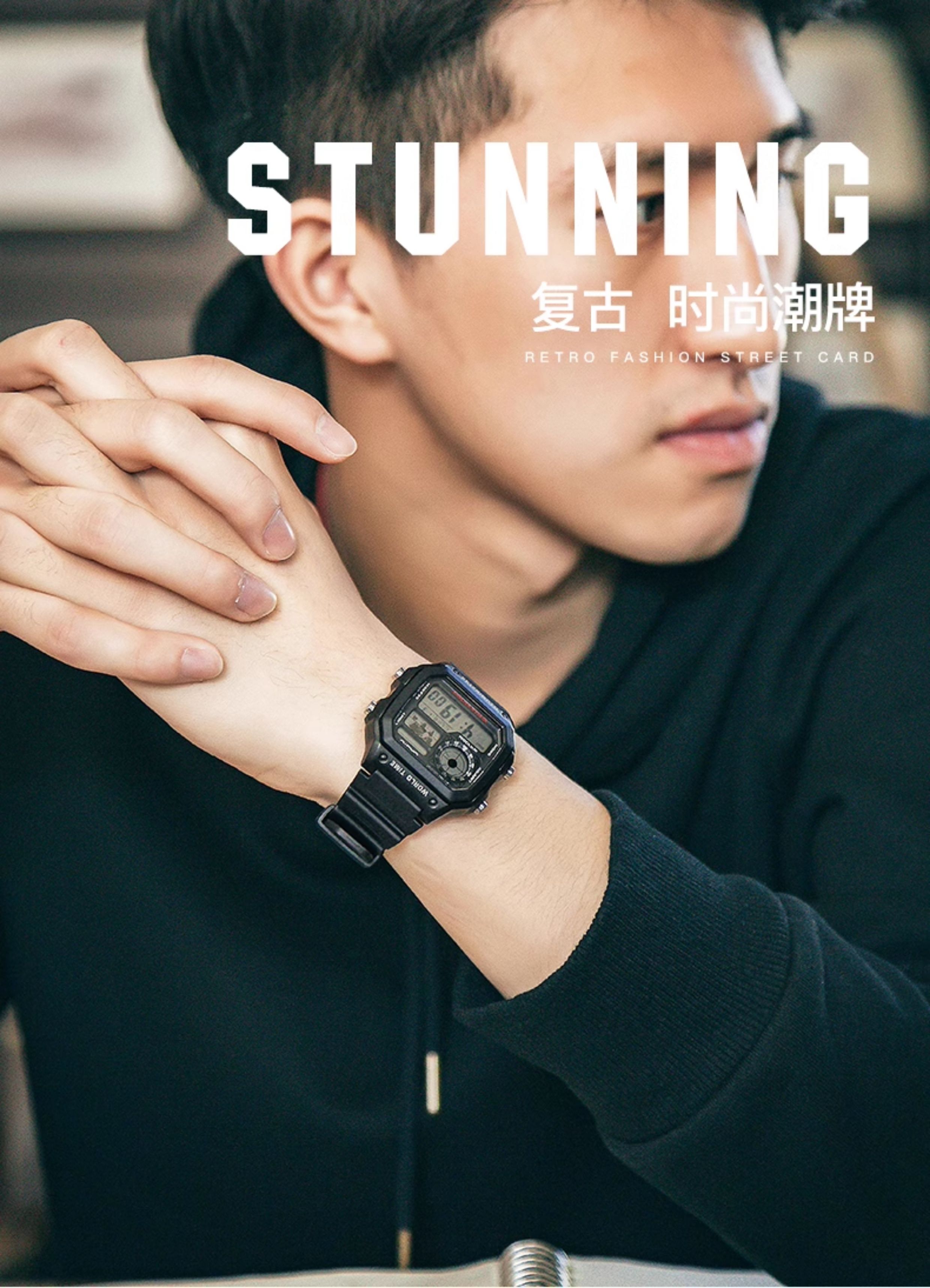 Casio small square watch male students crazy with ten years of power electronics students Men's Watch AE-1200
