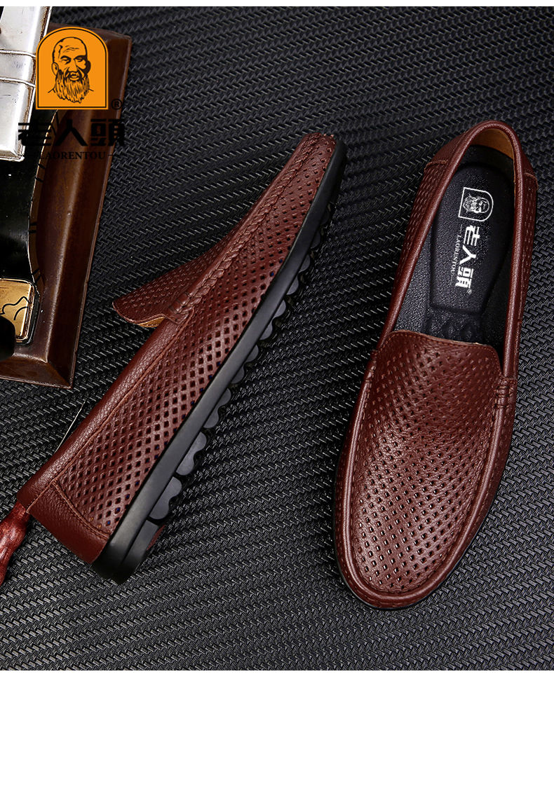 Men's Genuine Leather Soft-Soled Sandals for the Elderly, Middle-Aged Dad Shoes, Summer Perforated Hole Shoes, Hollow Breathable Leather Shoes