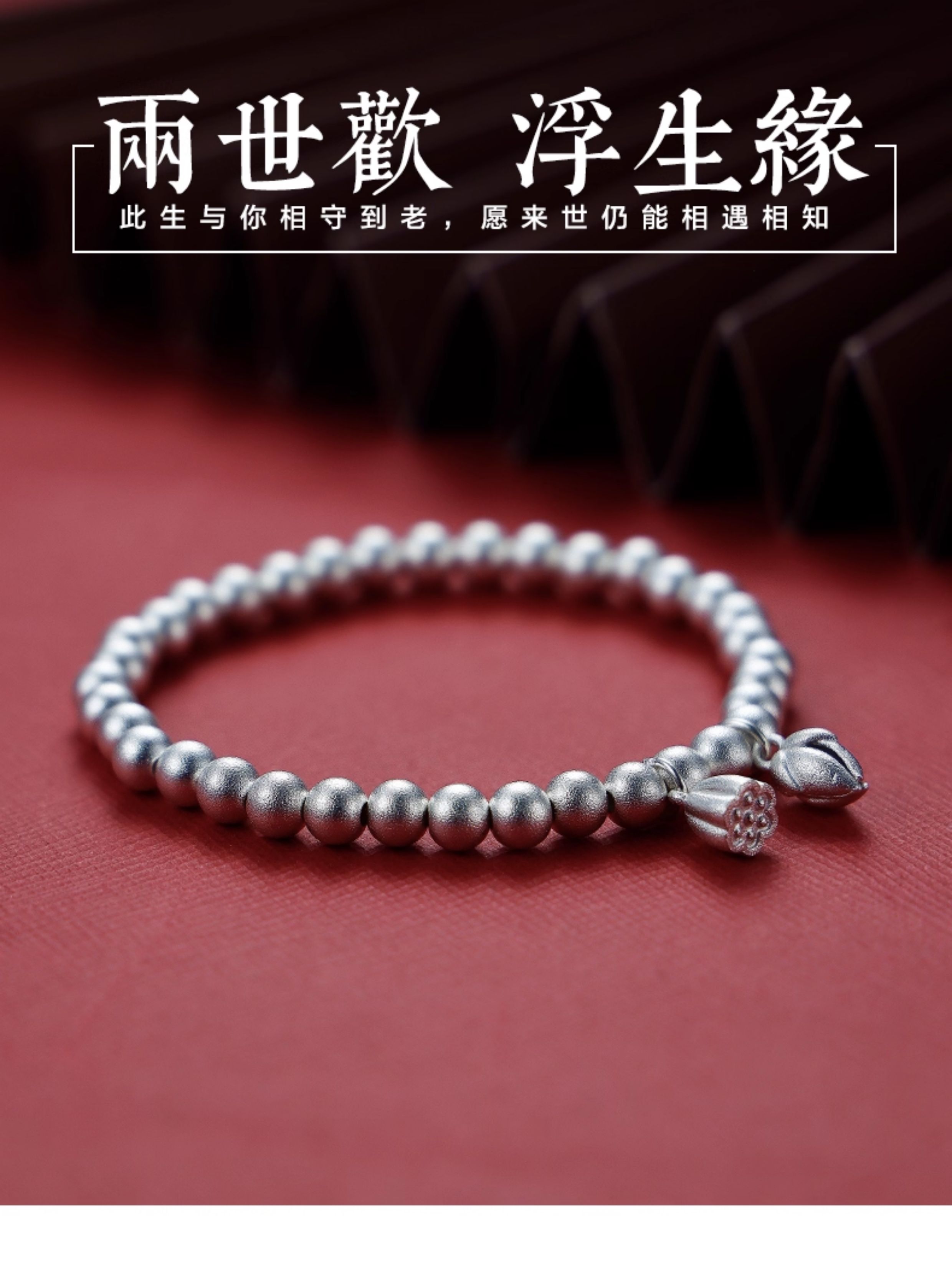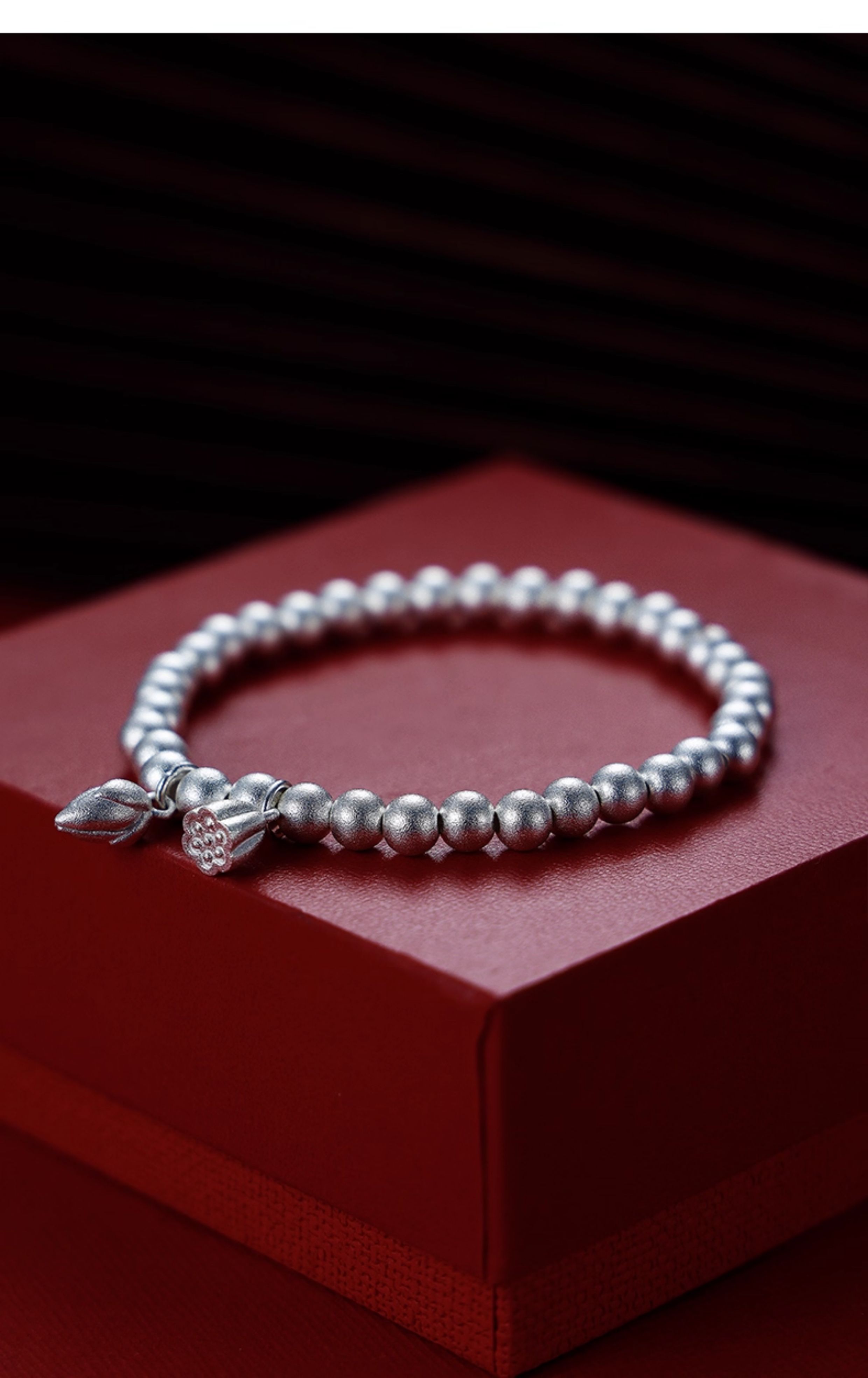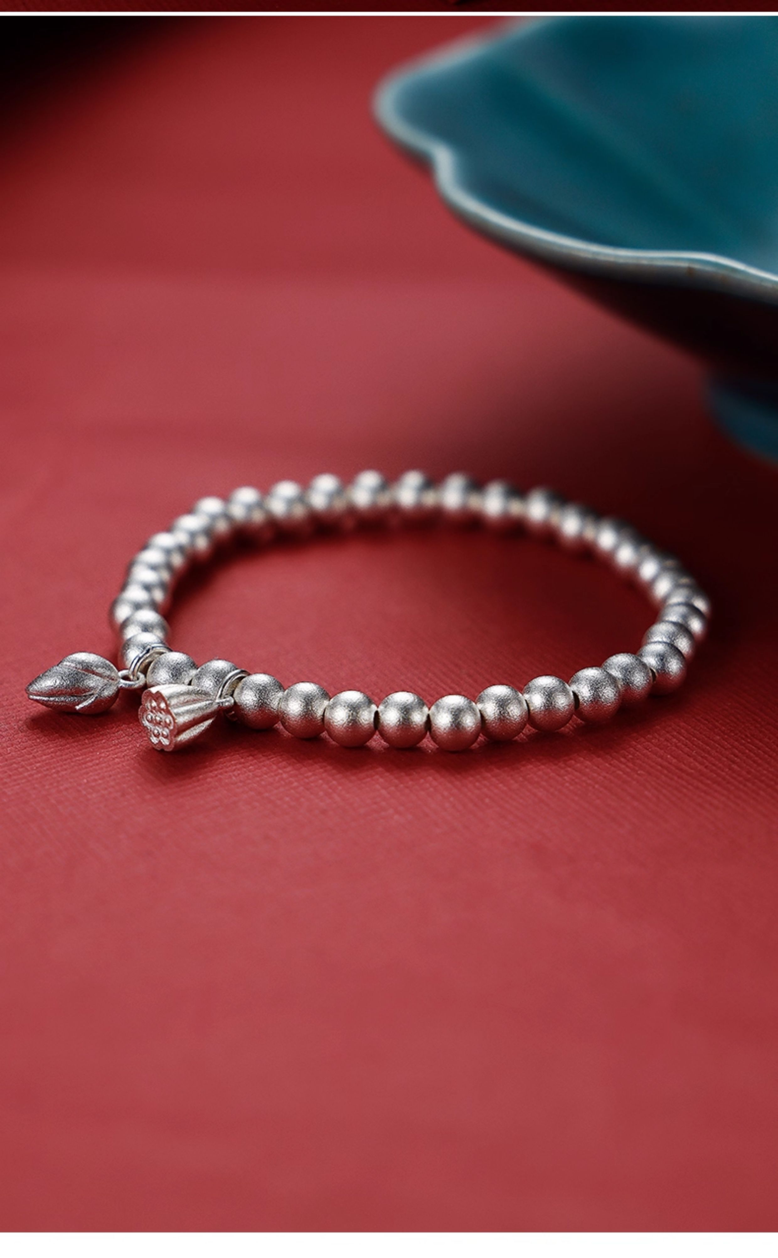 Jiule 990 Pure Silver Lotus Seed Pod Lotus Two-Worlds-Happiness Round Bead Bracelet Pure Silver Ancient Method Beads Bracelet Gift for Girlfriend