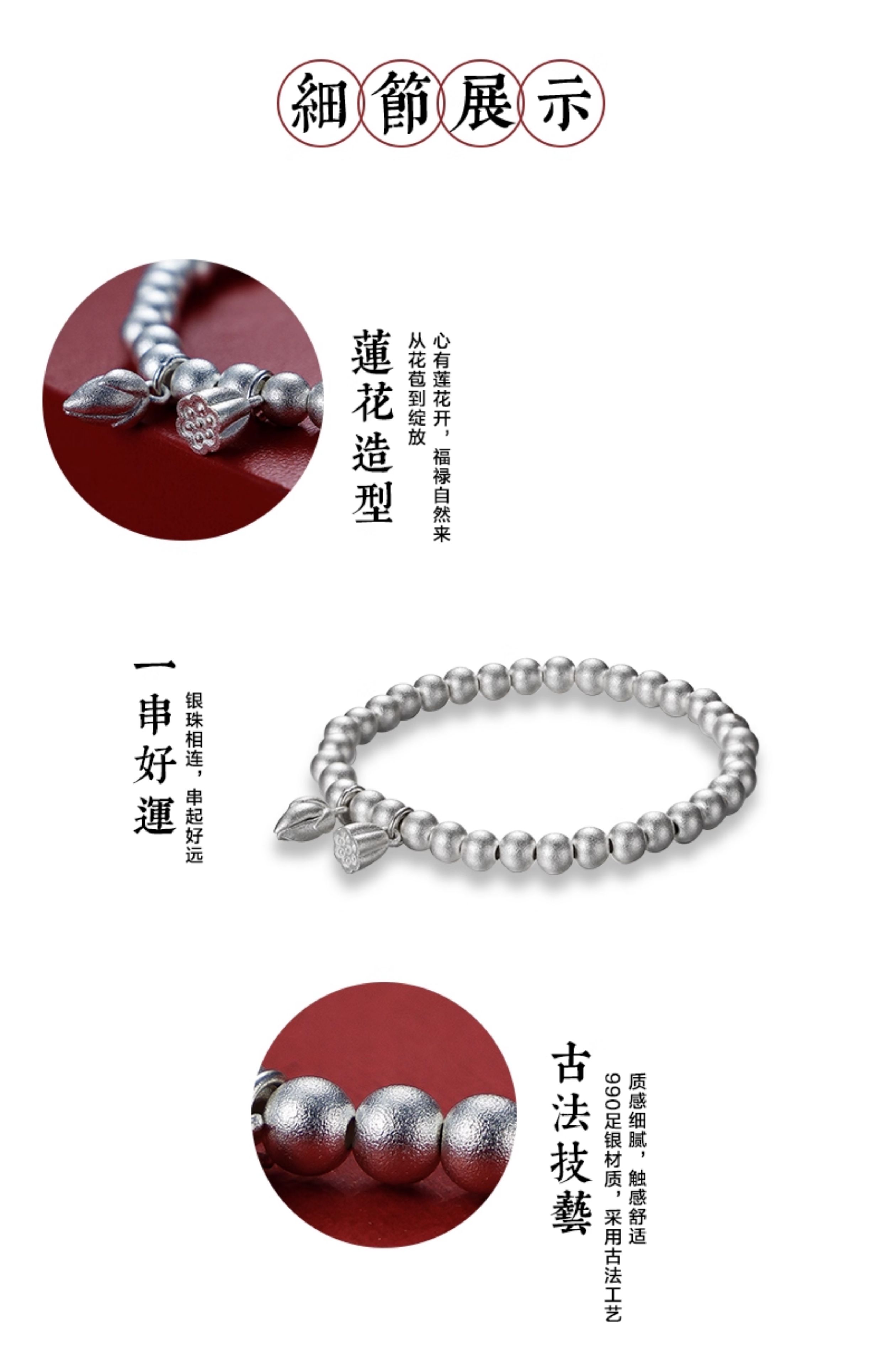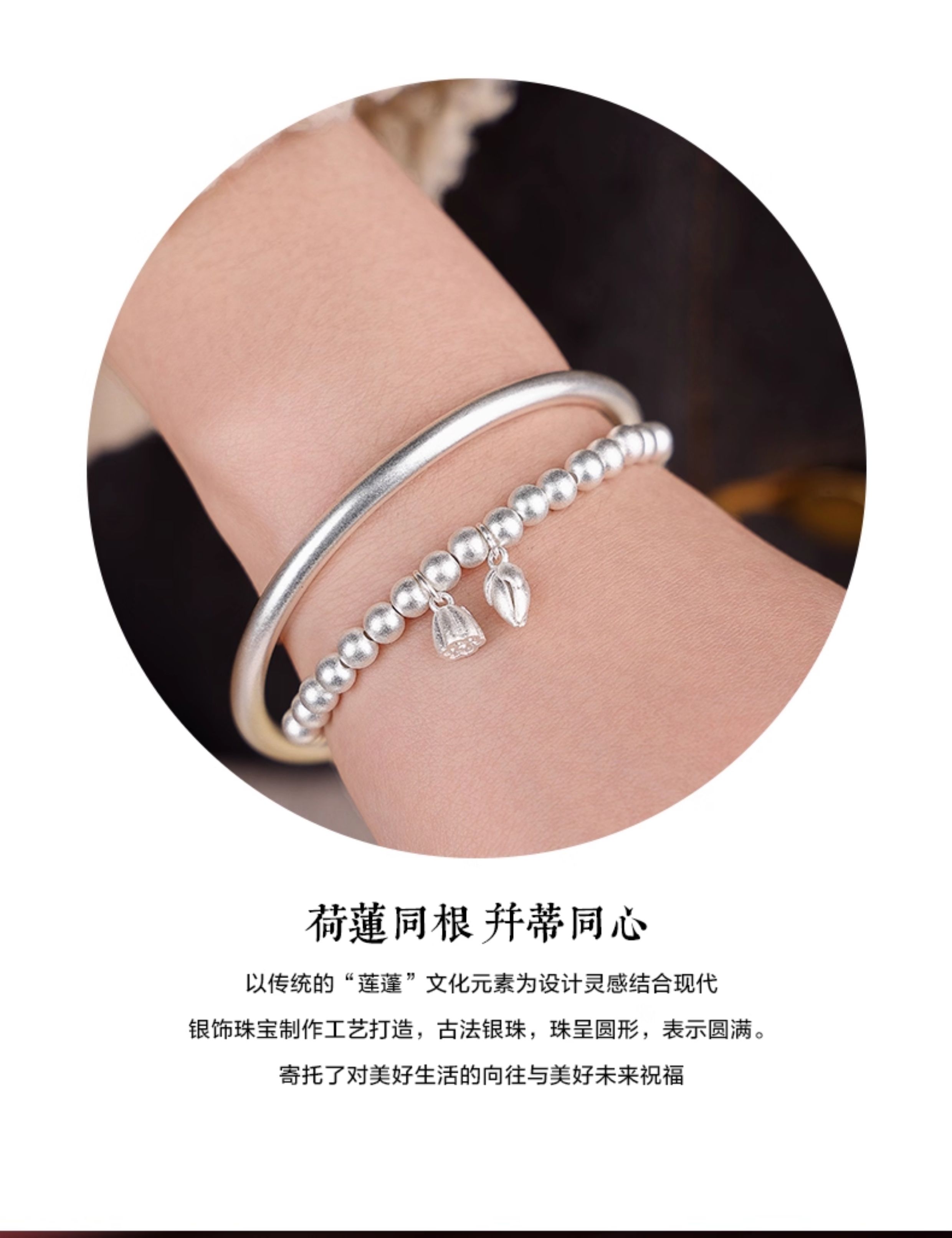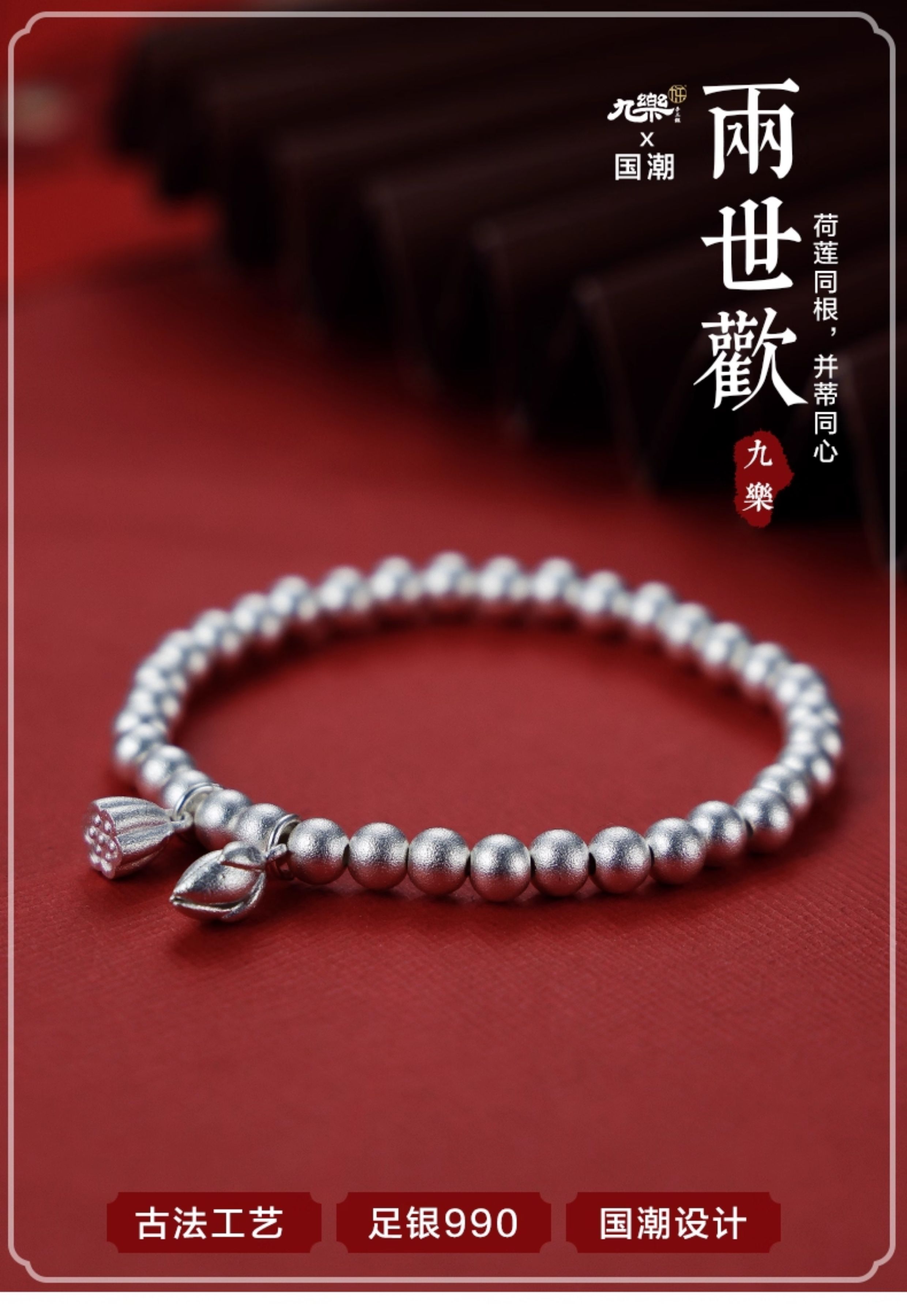 Jiule 990 Pure Silver Lotus Seed Pod Lotus Two-Worlds-Happiness Round Bead Bracelet Pure Silver Ancient Method Beads Bracelet Gift for Girlfriend