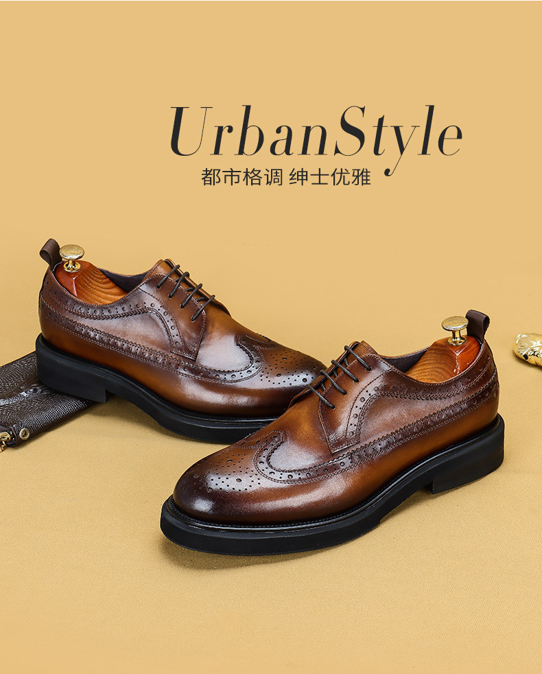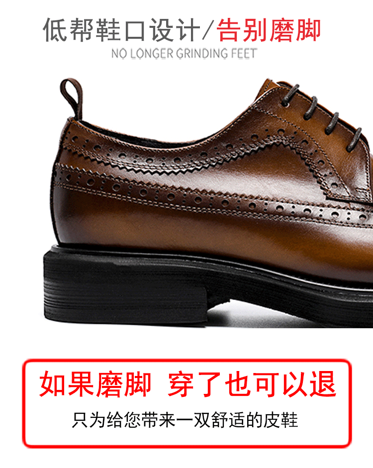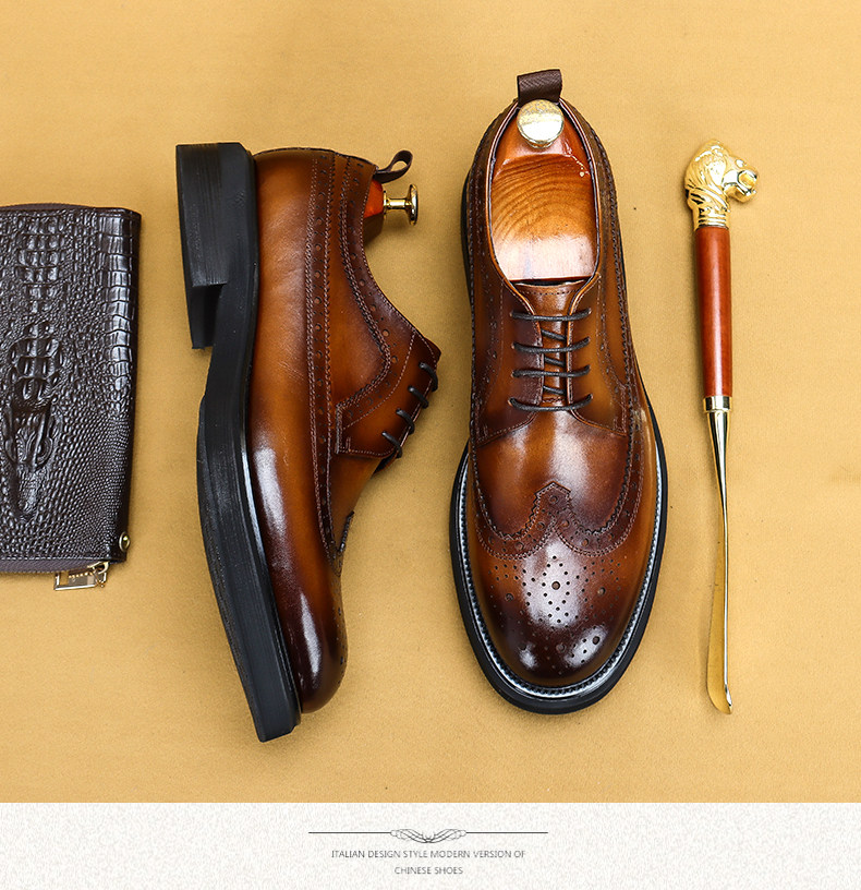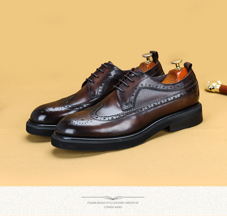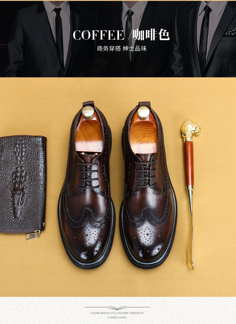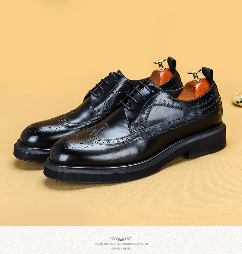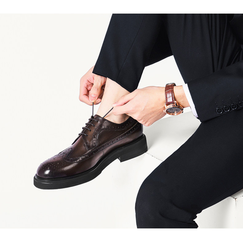 British Brogue Carved Men's Shoes with Thick Soles and Height-Increasing Features, Genuine Leather Men's Brown Business Formal Leather Shoes for Grooms and Weddings