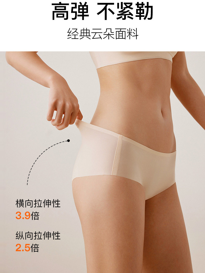 3 Pieces | Neiwai Orange Label Cloud Seamless Panties, No Size, Anti-Chafing, Pure Cotton, Antibacterial Crotch, Fashionable