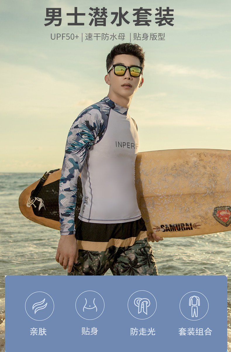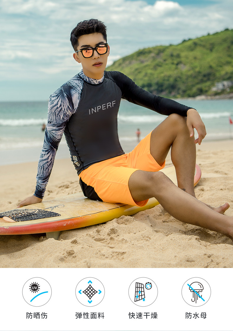 Swimsuit Men's Long-Sleeved Swimming Equipment Sun Protection Quick-Drying Surfing Suit Breathable Hot Spring Men's Professional Swimming Trunks Set