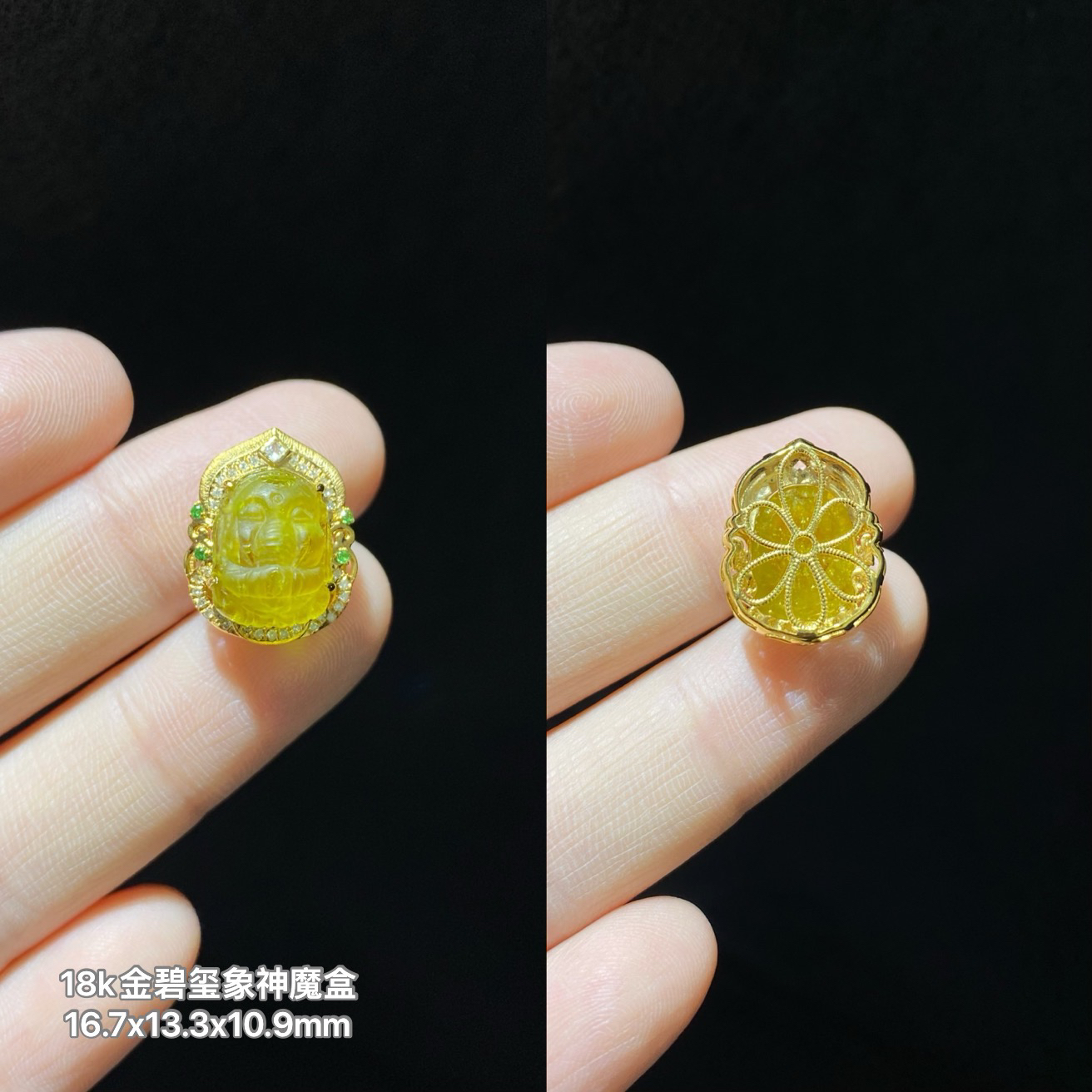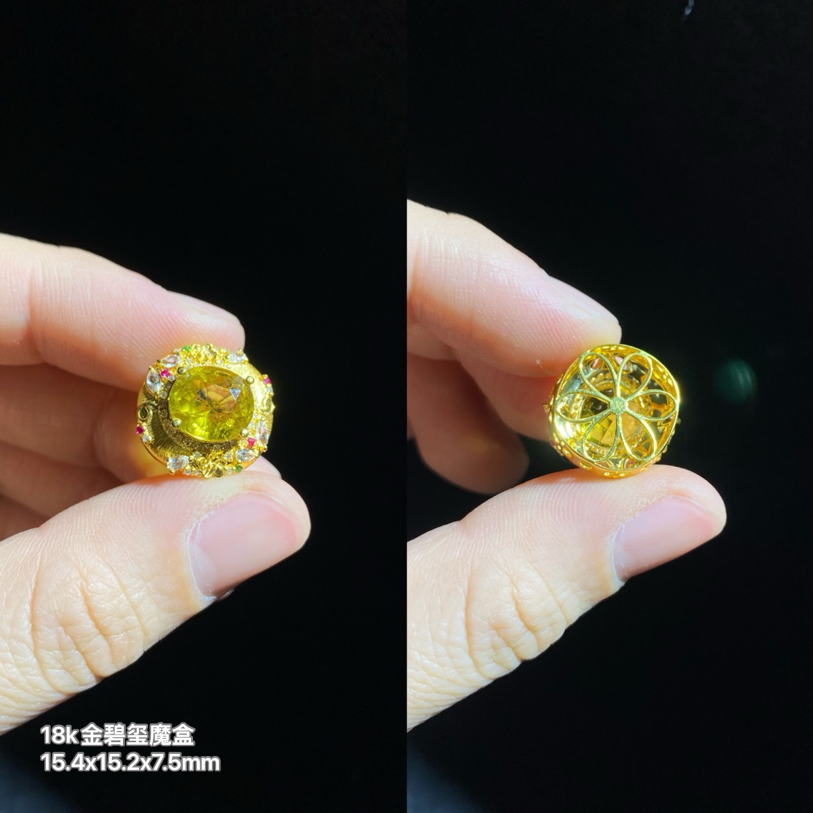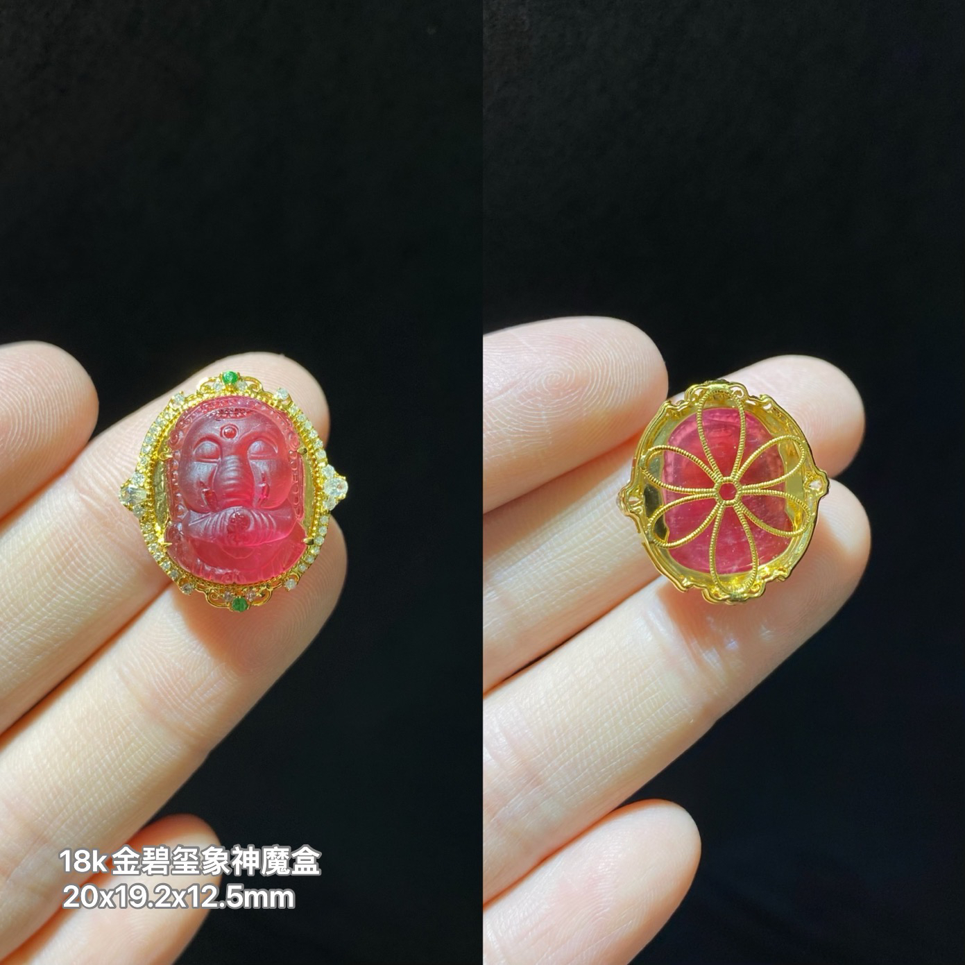 【18K Gold Tourmaline Magic Box Pan】Natural Canary Yellow-Purple Rubies and Ganesha Ring with Sugar Tower Inlay
