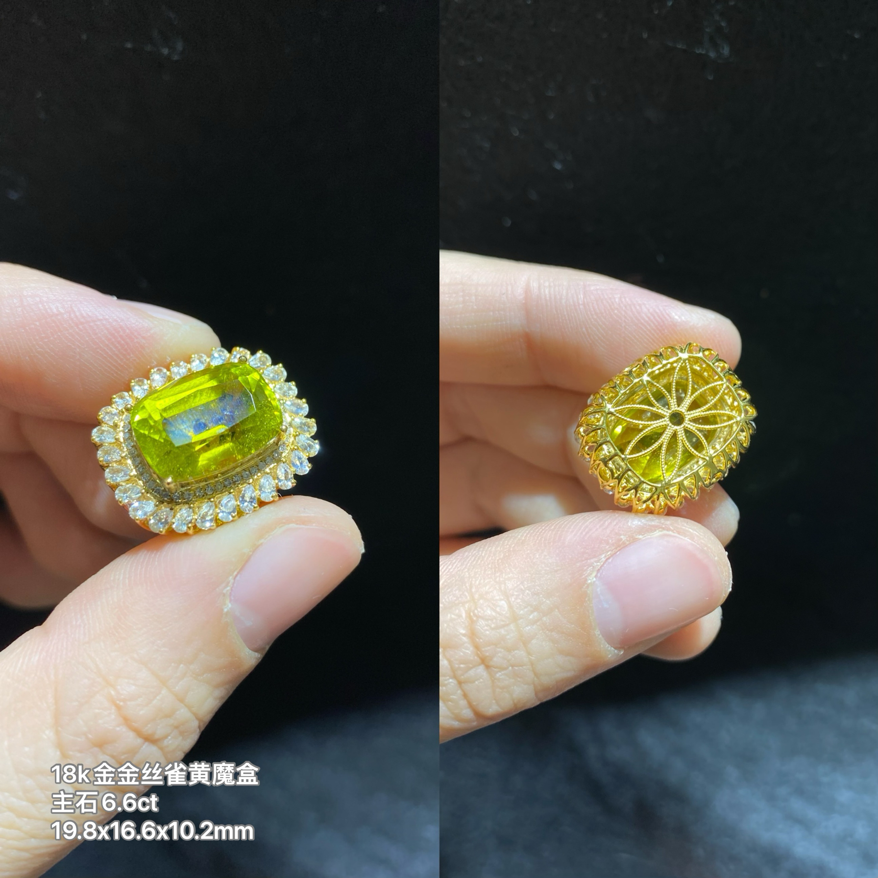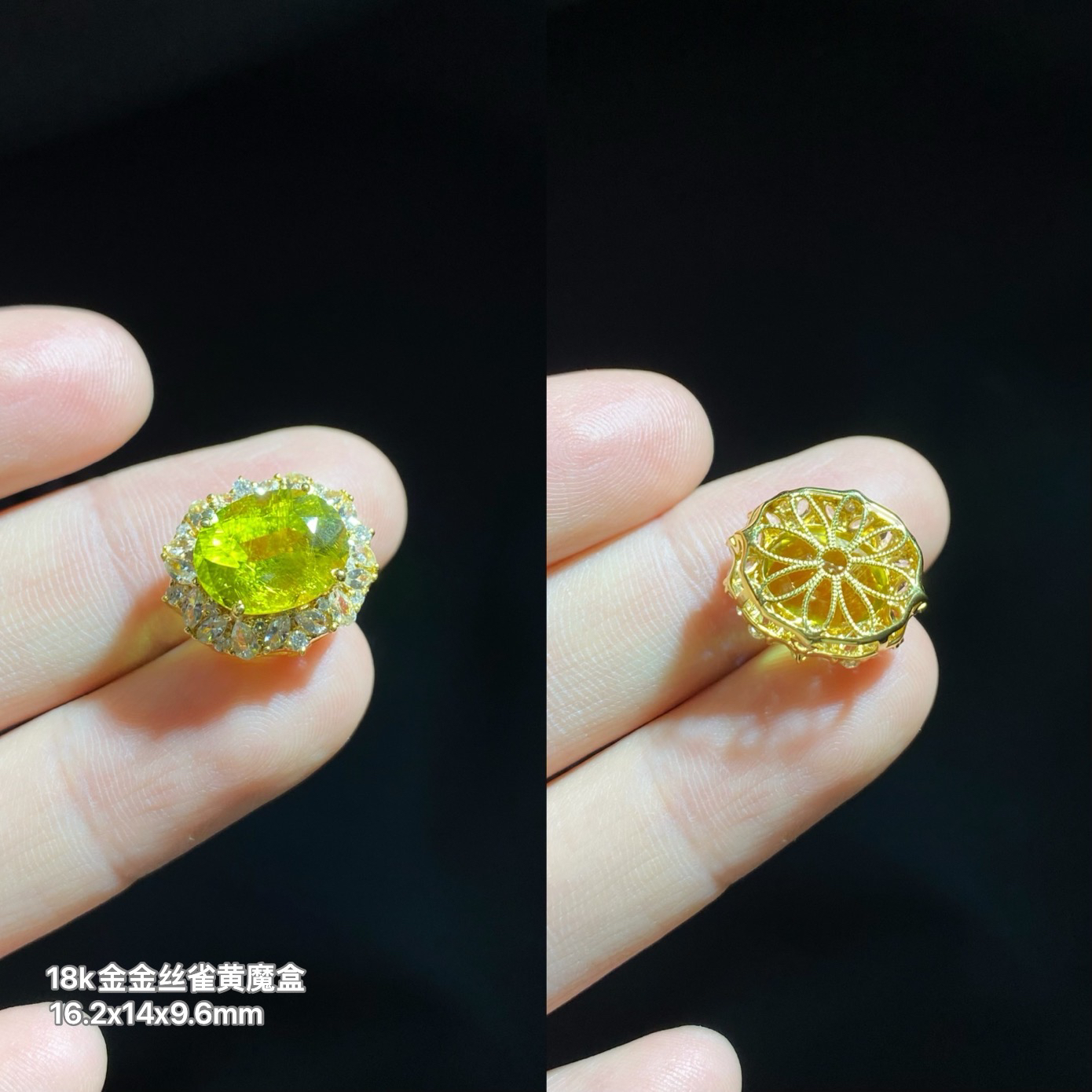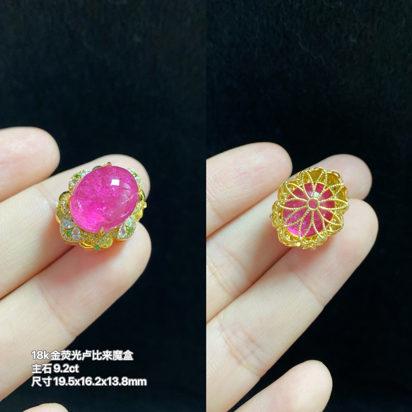 【18K Gold Tourmaline Magic Box Pan】Natural Canary Yellow-Purple Rubies and Ganesha Ring with Sugar Tower Inlay