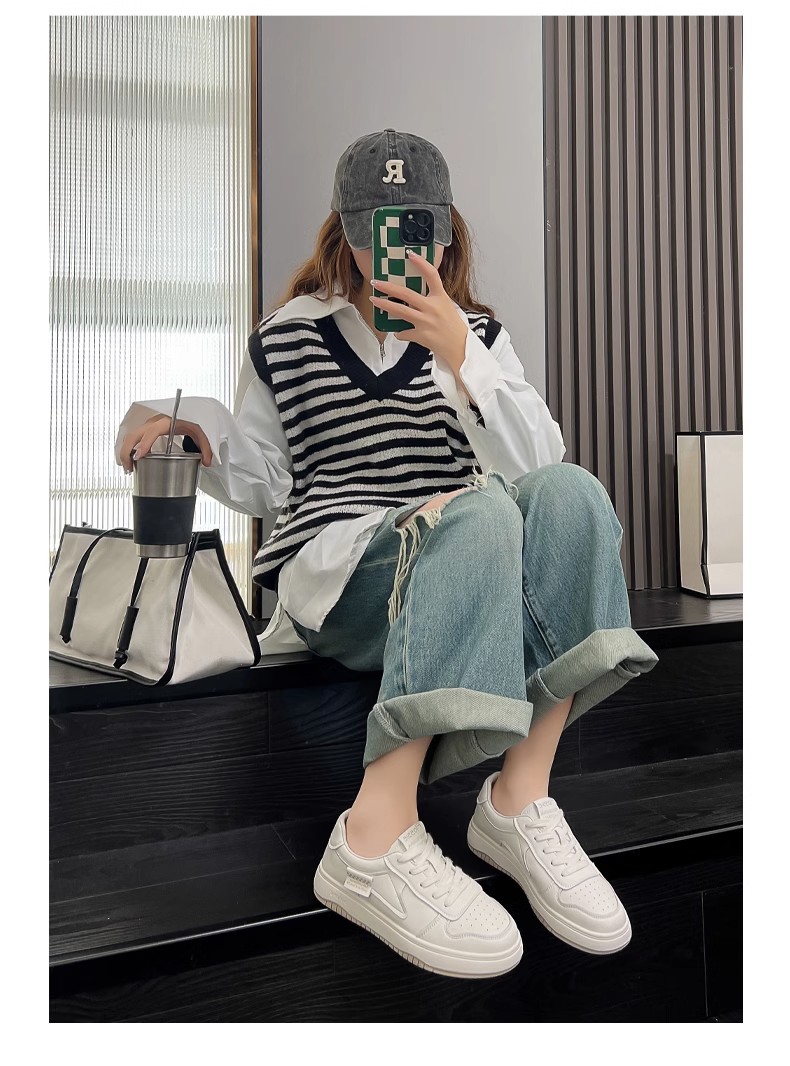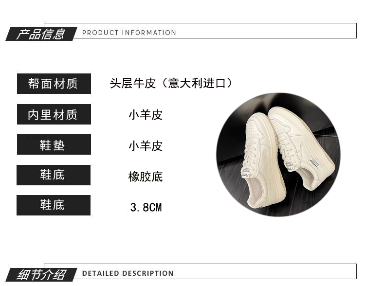 Hong Kong Genuine Leather White Sneakers for Women, 2025 New Spring and Autumn Popular Versatile ins Sneakers, Korean Style Casual Shoes
