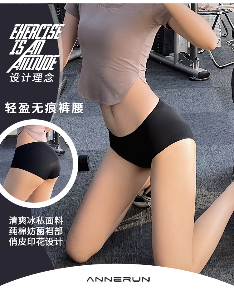 Annerun Ice Silk Underwear Women's Mid-Waist Pure Cotton Running Quick-Drying Fitness Intimates Mid-Waist Breathable Sports Briefs