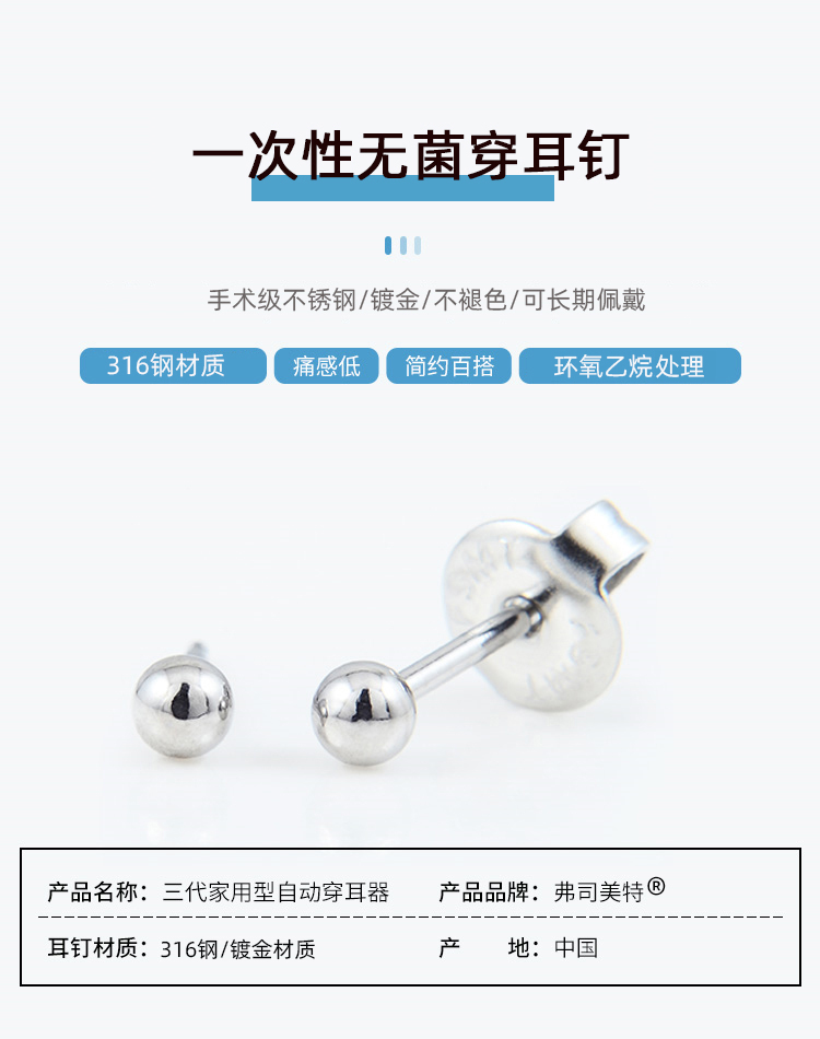 Fusimeite Third-Generation Ear Piercing Tool, Ear Piercing Device, Disposable Sterile Ear Piercing Tool, Painless Piercing Earrings