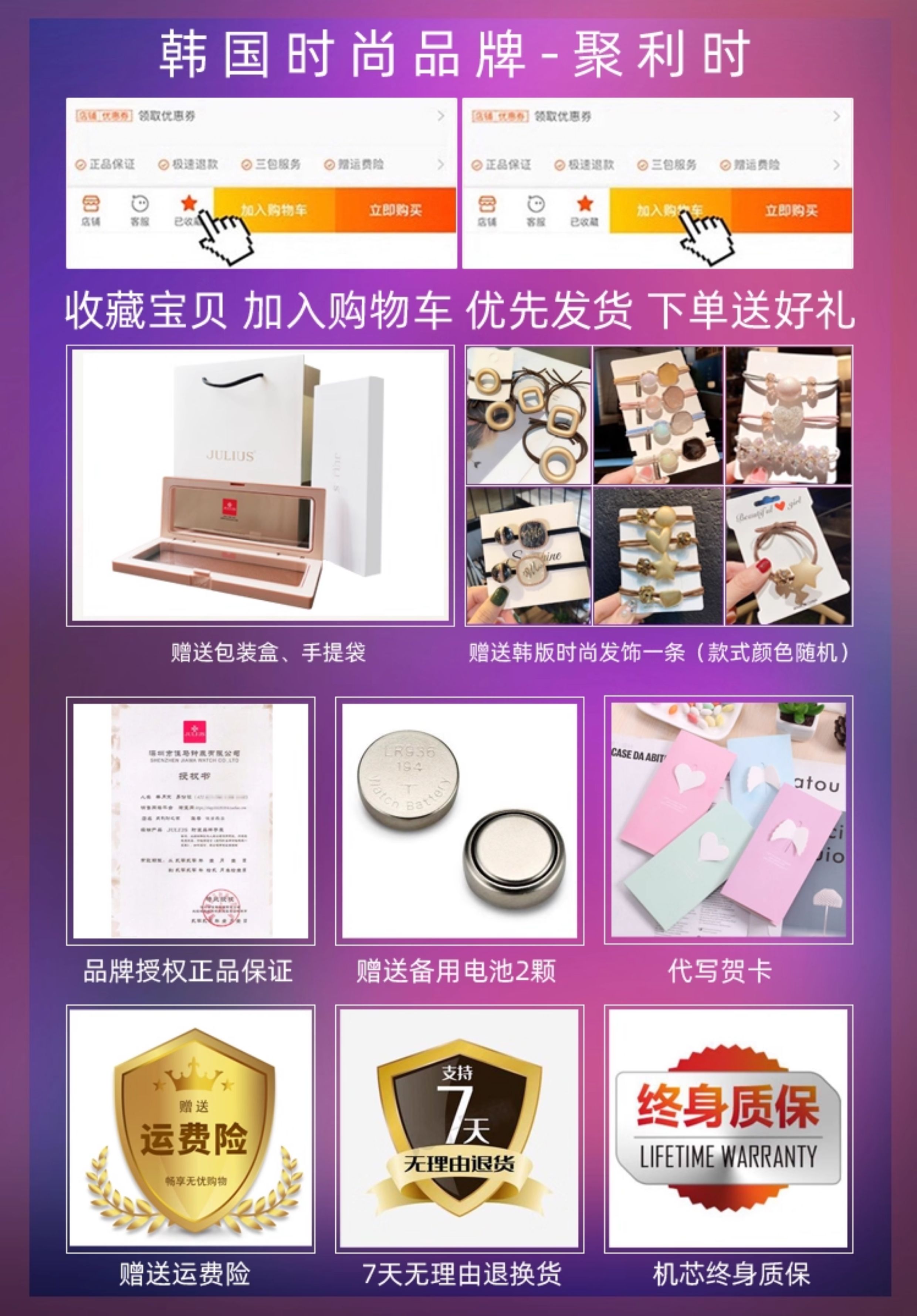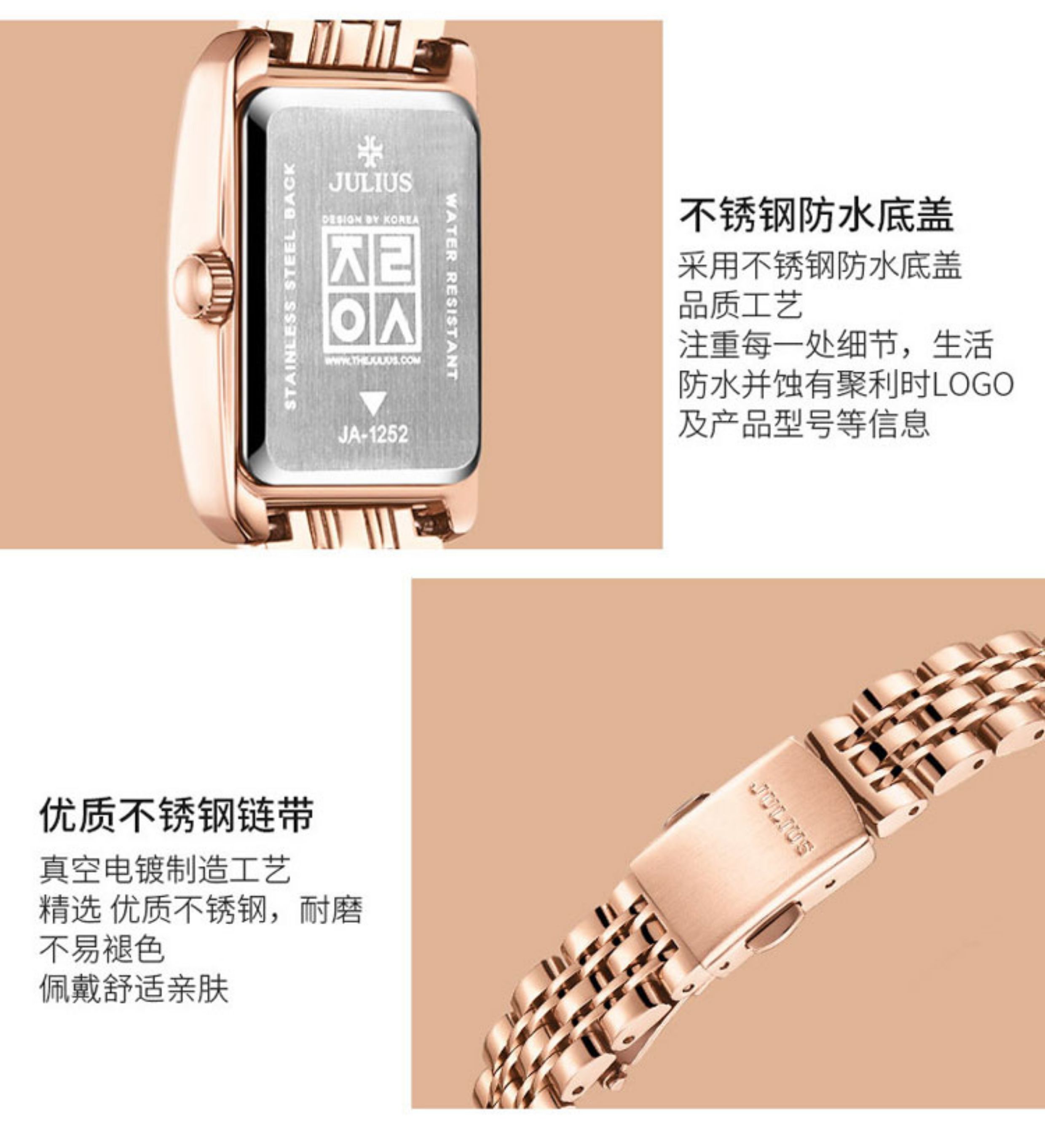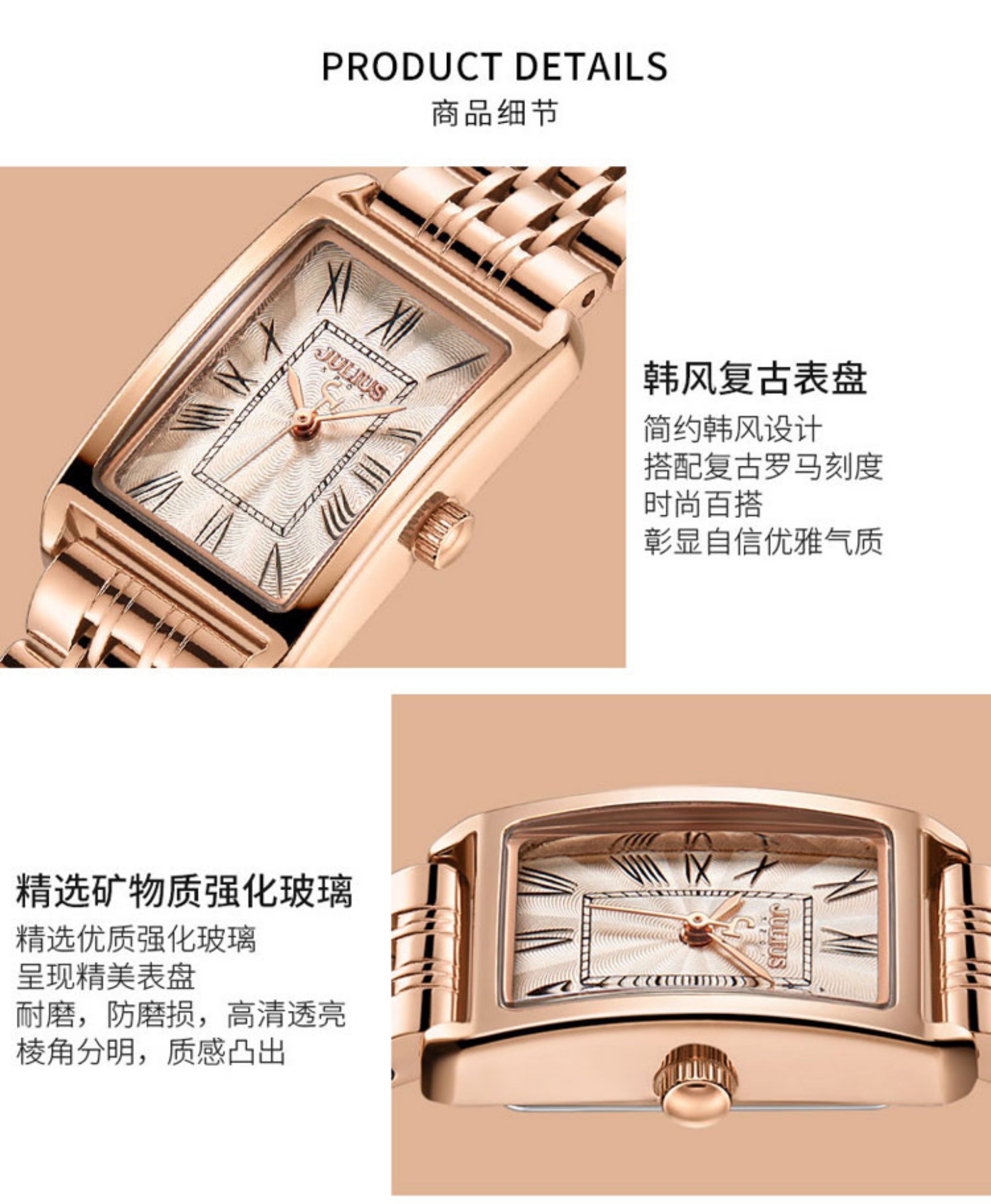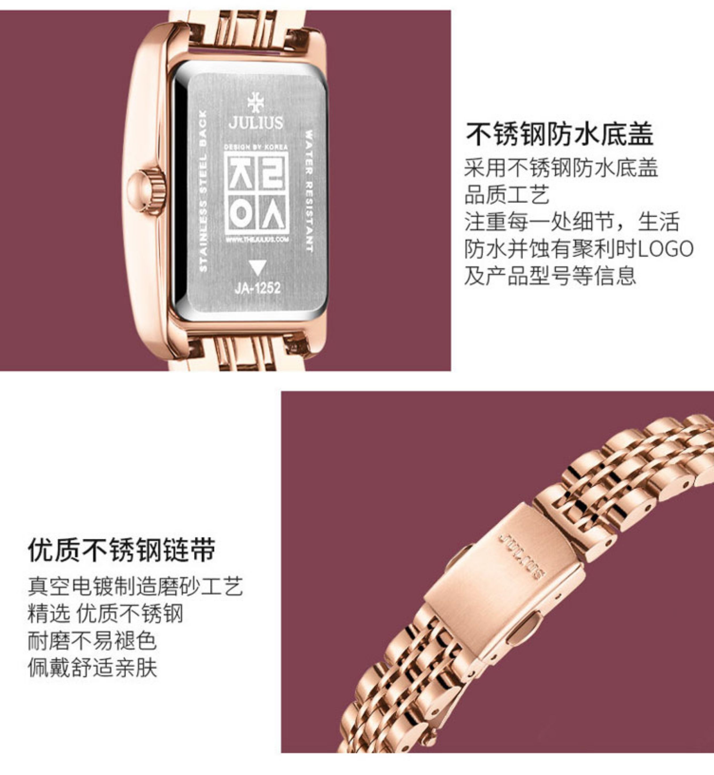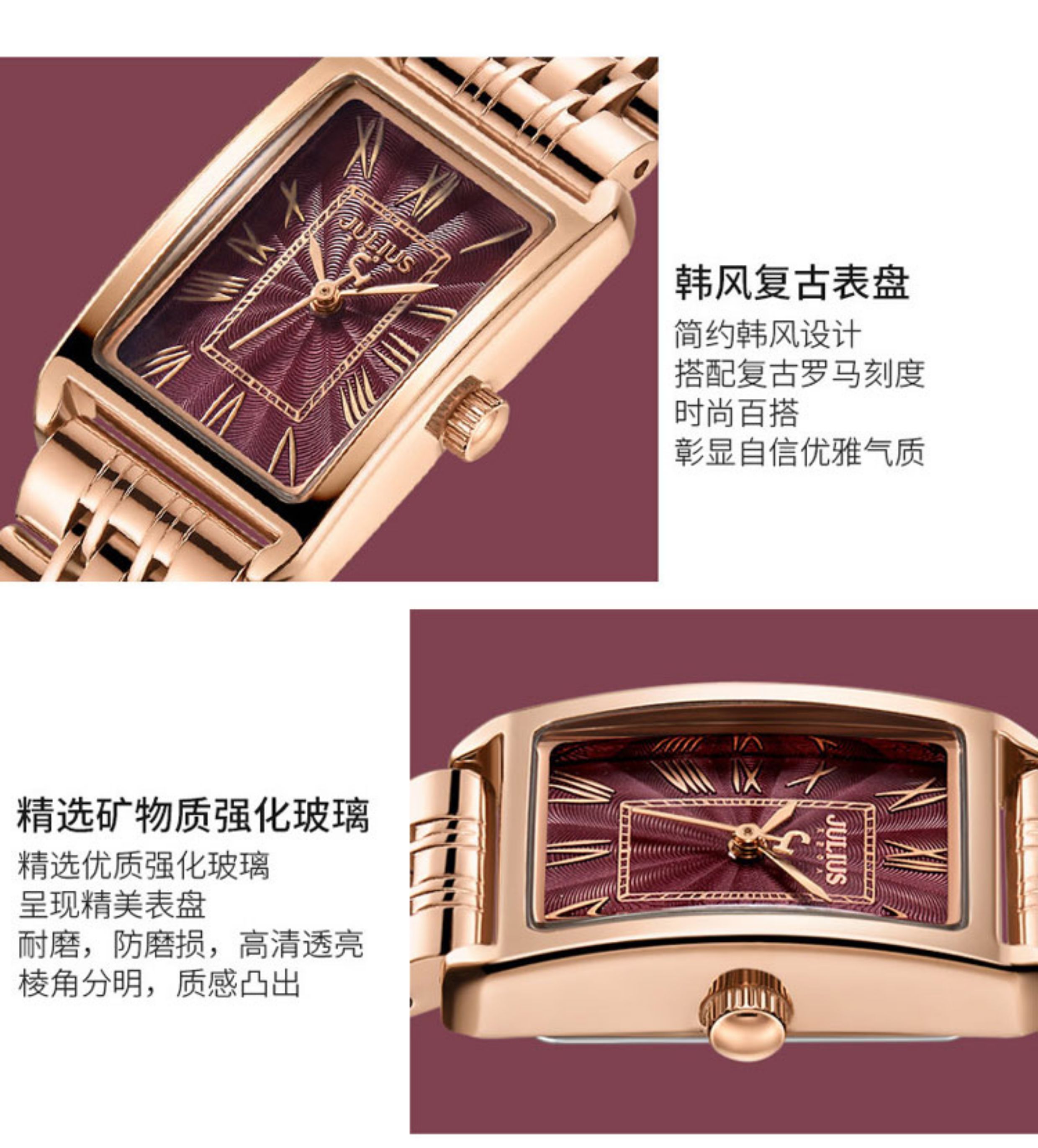 Juliushi Genuine Korean-Style Retro New Small Square Watch, Fashionable Student Steel Band Waterproof High-End Elegant Quartz Women's Watch