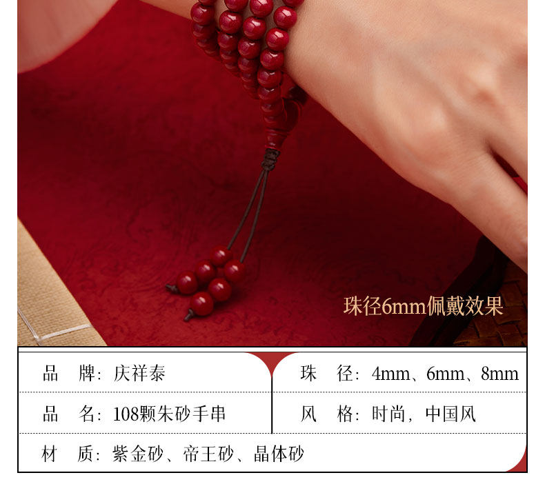 Qingxiangtai Cinnabar 108 Beads Buddhist Prayer Beads Bracelet for Women, Official Flagship Store, Genuine Original Mineral, Multi-Layer Bracelet for Men