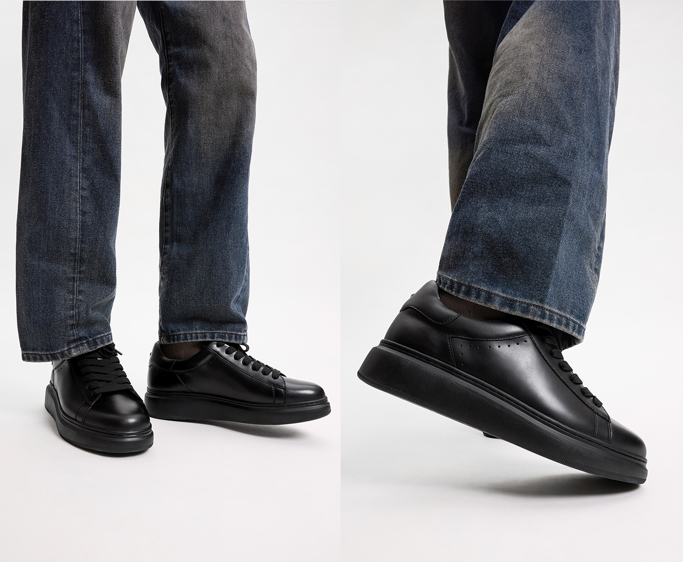 Thomwills First-Layer Cowhide Men's Shoes, Black Sneakers, Commuter Casual Leather Shoes, Height-Increasing Black Shoes for Winter
