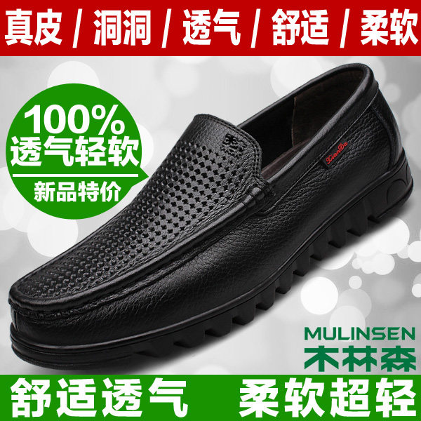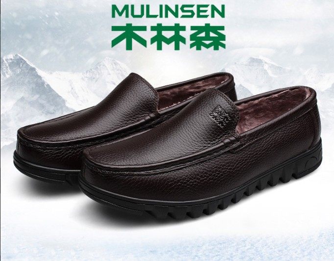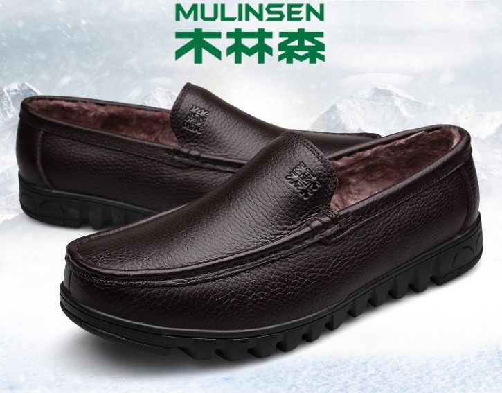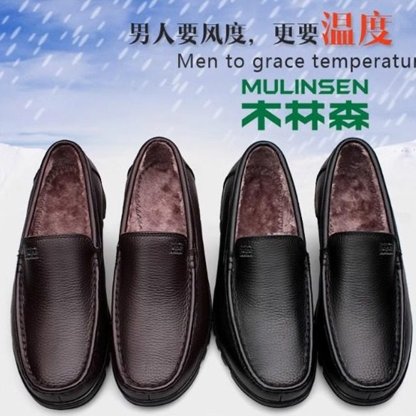 Mulinsen Men's Shoes, Autumn and Winter Warm Cotton Shoes, Genuine Leather Shoes, Casual Loose Soft Leather Soft-Soled Dad Shoes, Large Size 48