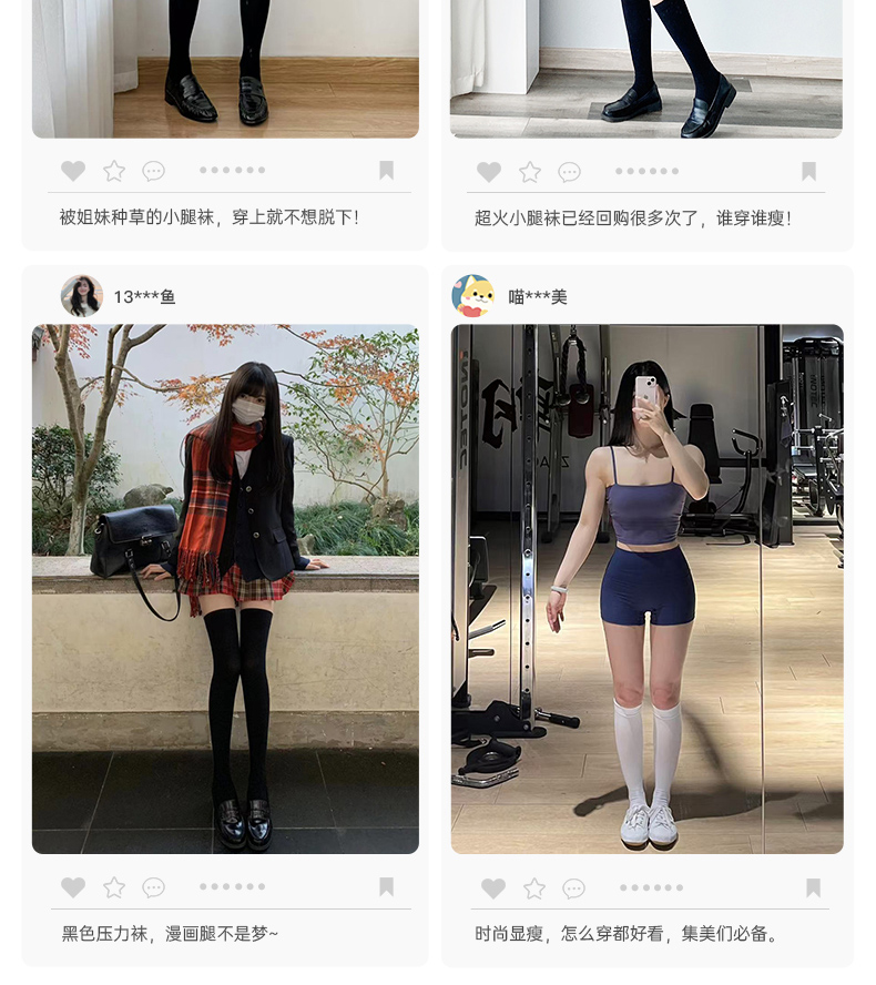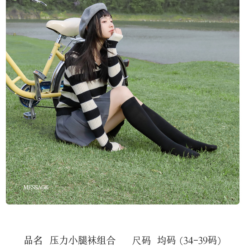 Compression Calf Socks for Women, Autumn and Winter, Strong Compression Slimming Mid-Calf Jk Socks, Long Socks, Over-The-Knee Socks, Non-Slip Black Long Socks