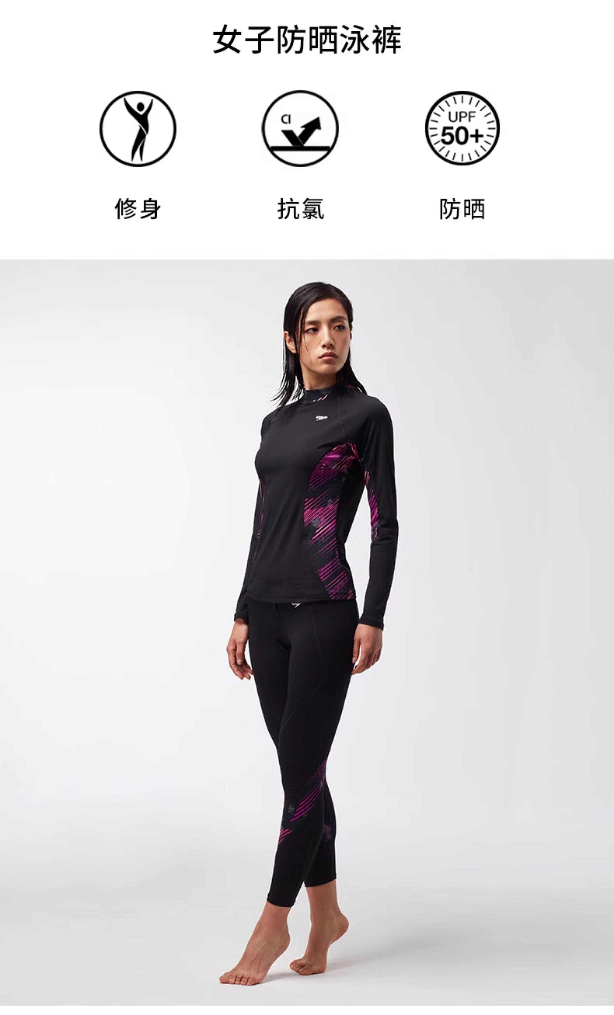 Speedo Women's Sun-Protective Long-Sleeve Swimsuit and Long Pants Sports Set, Slim Fit, Comfortable, Warm for Hot Springs