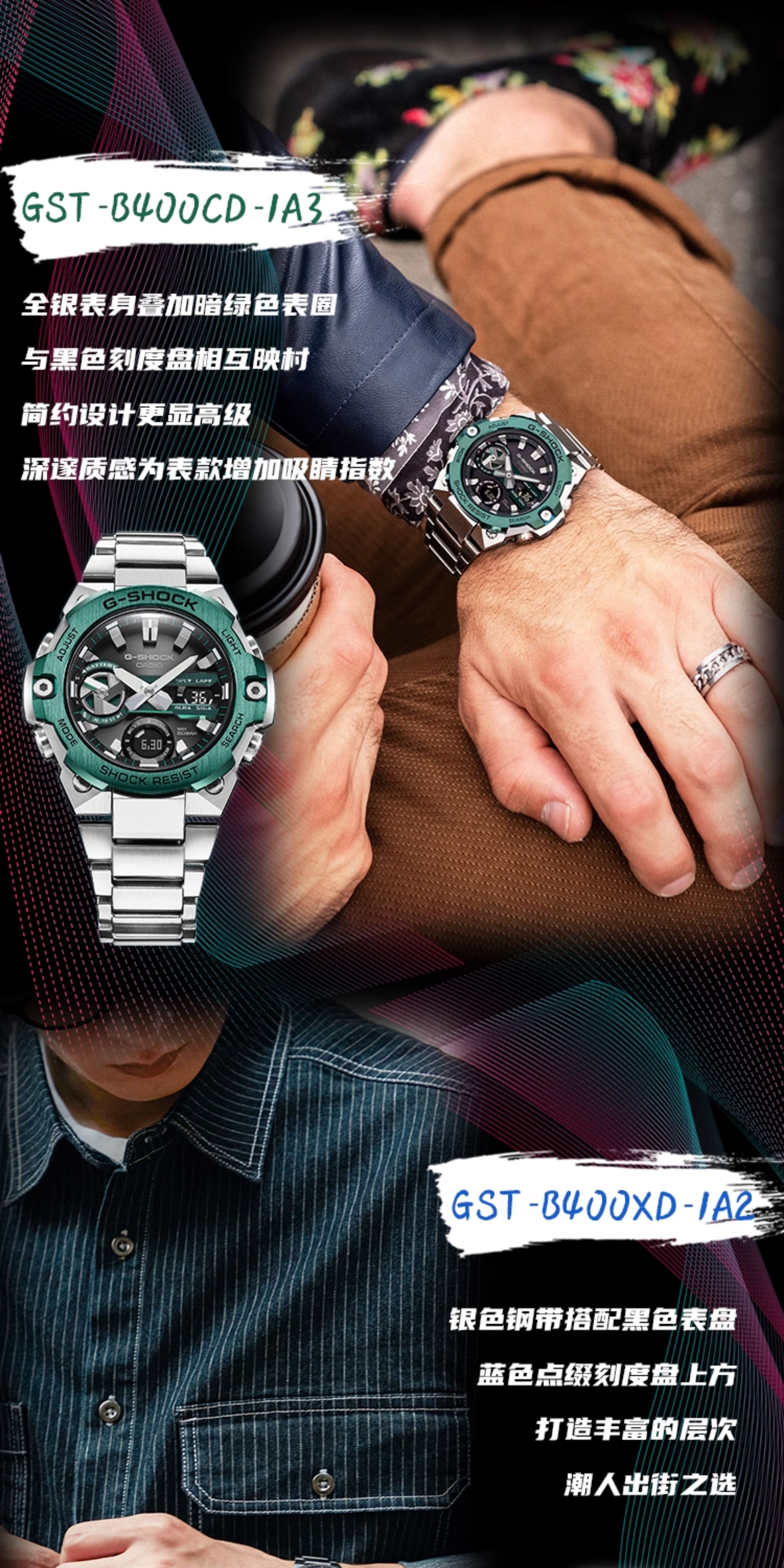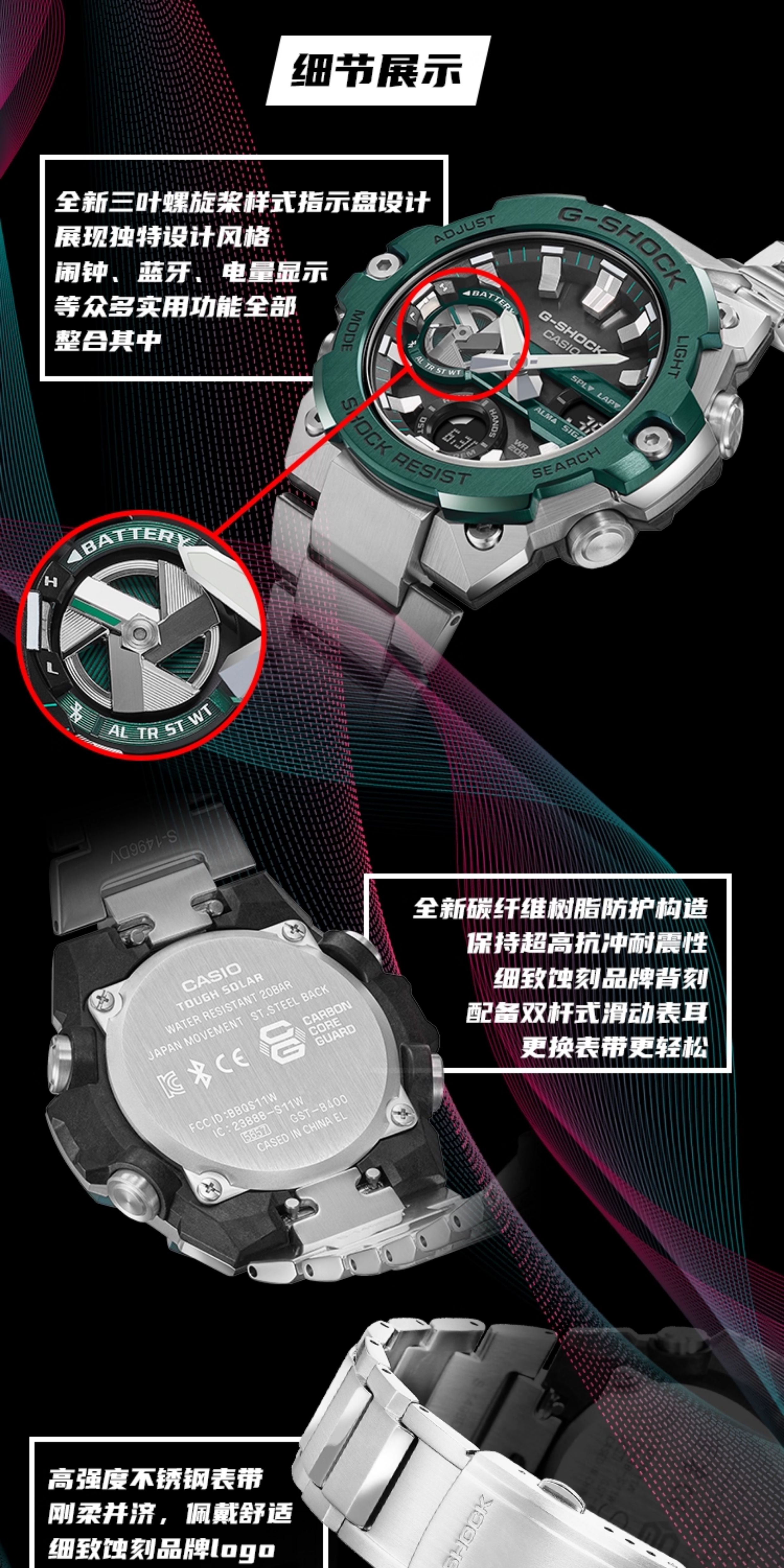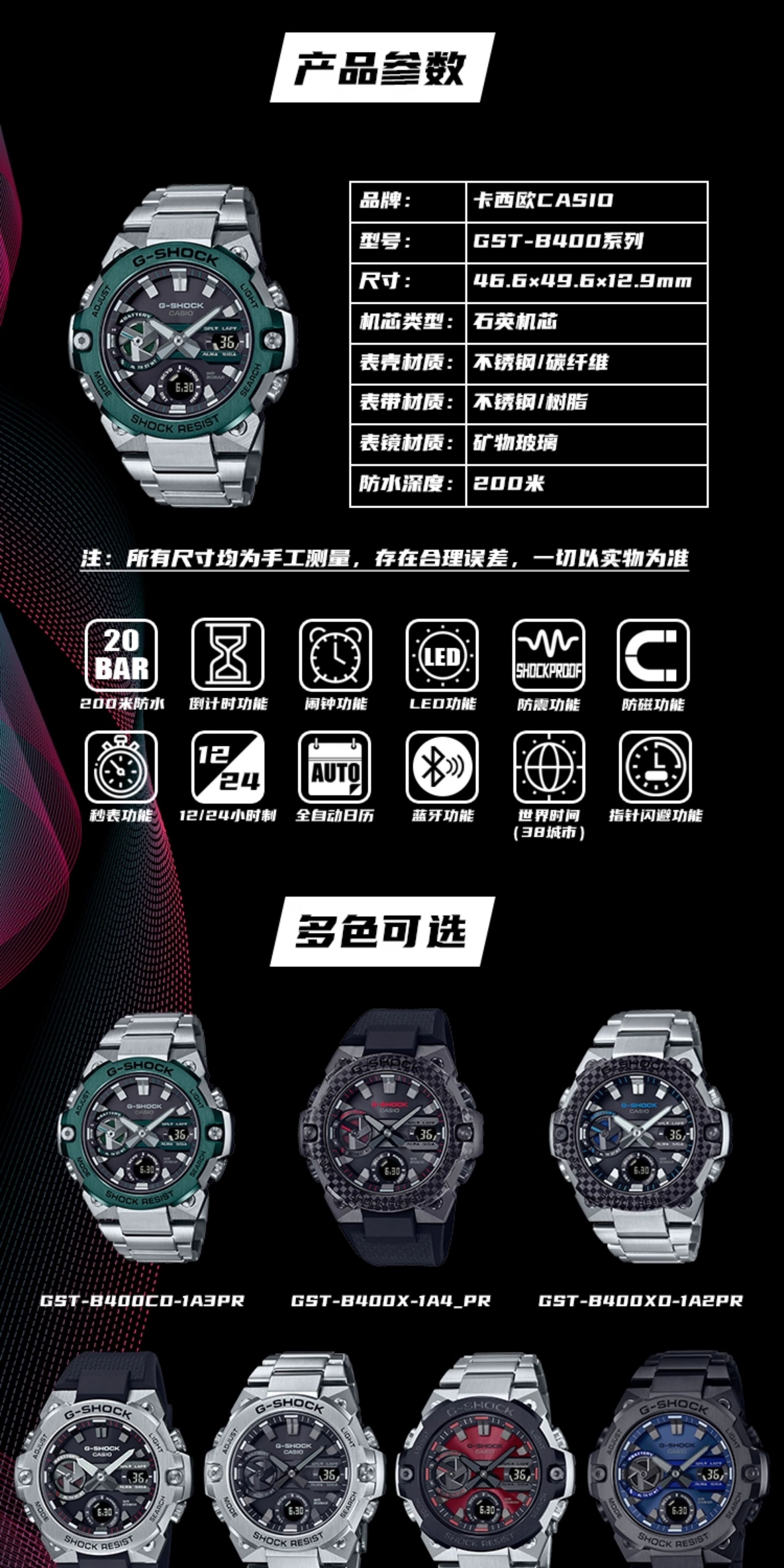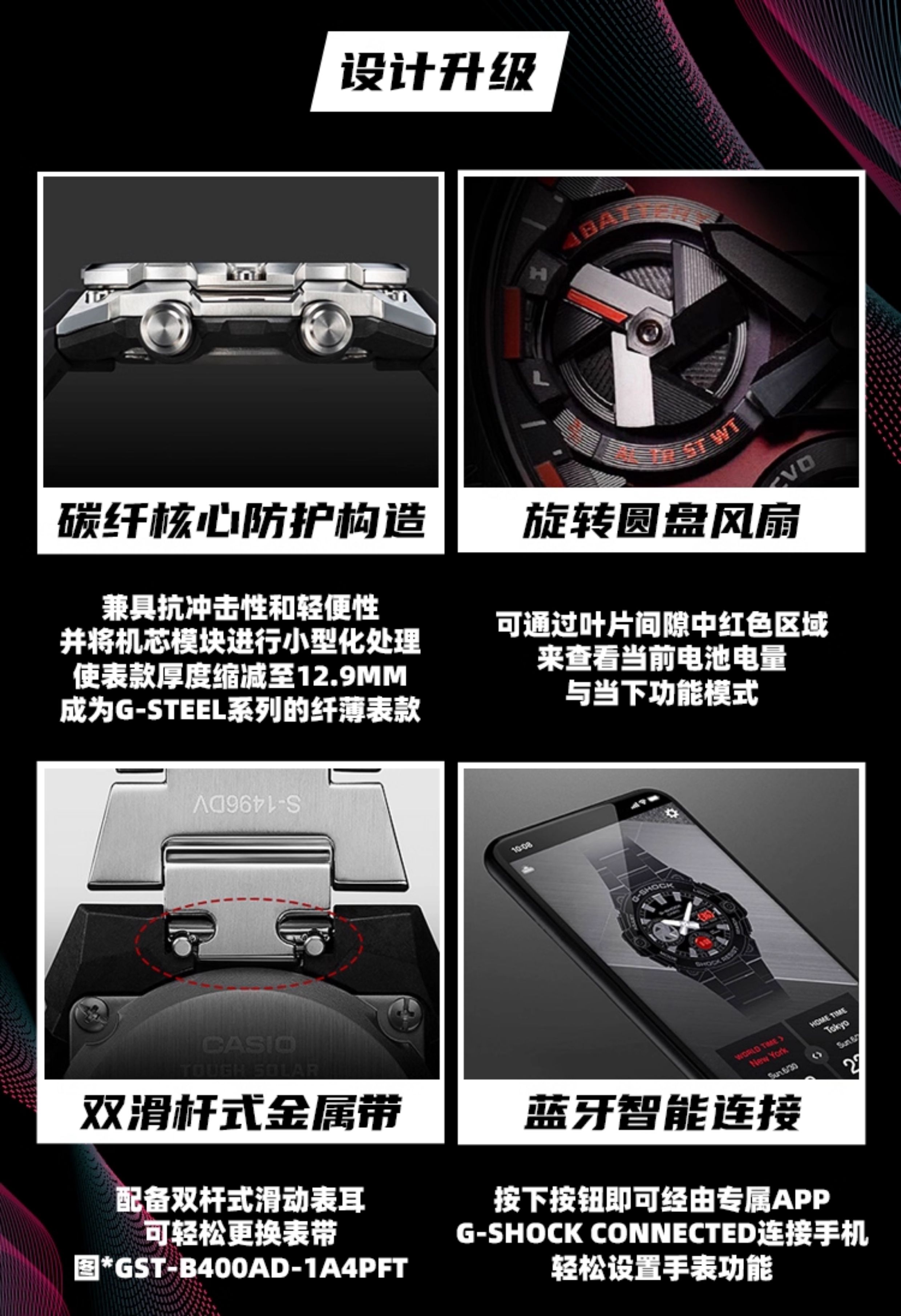 Casio Watch for Men Gshock Solar-Powered Bluetooth Waterproof Shockproof Sports Steel Dark Heart Gst-B400