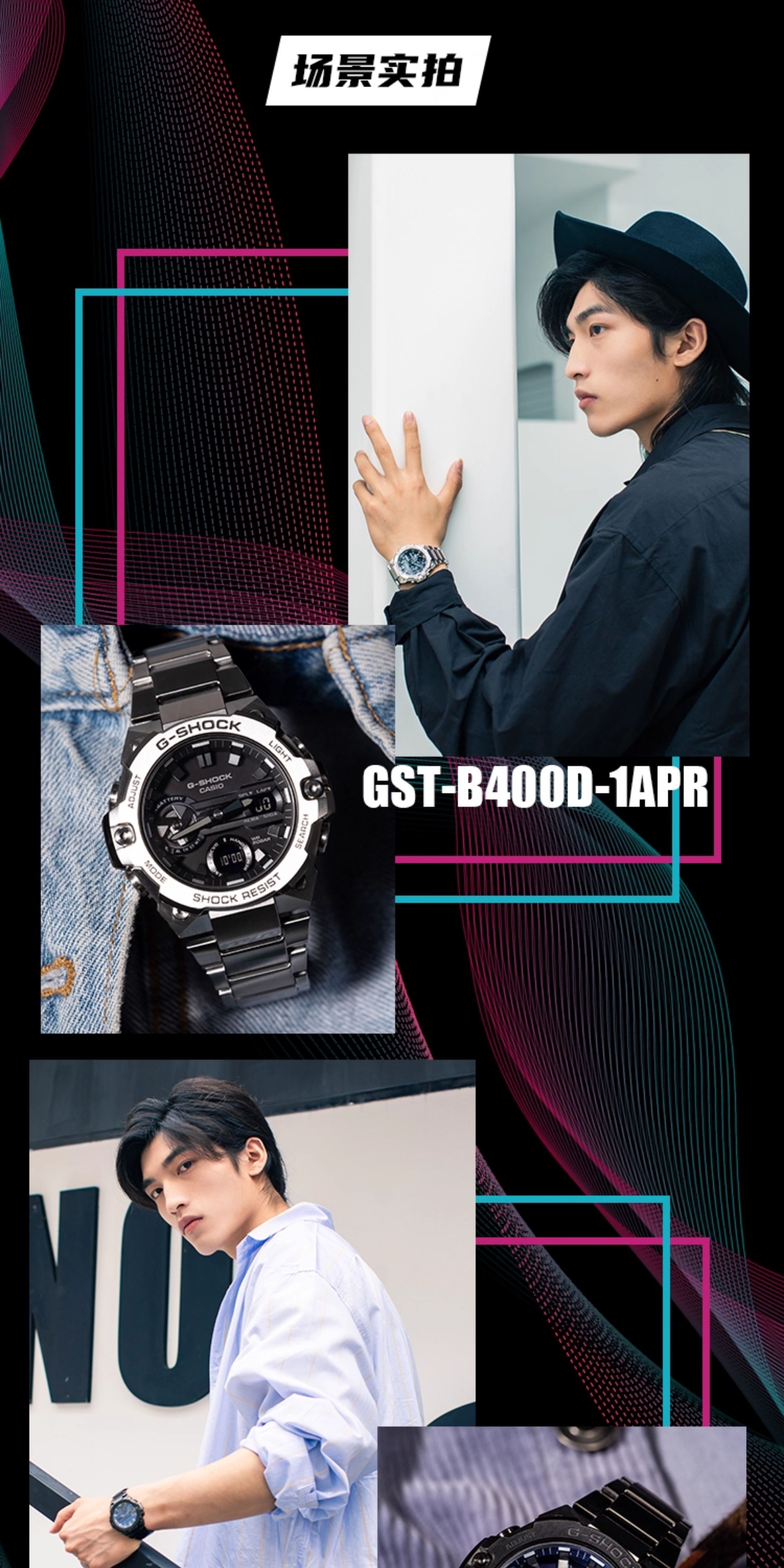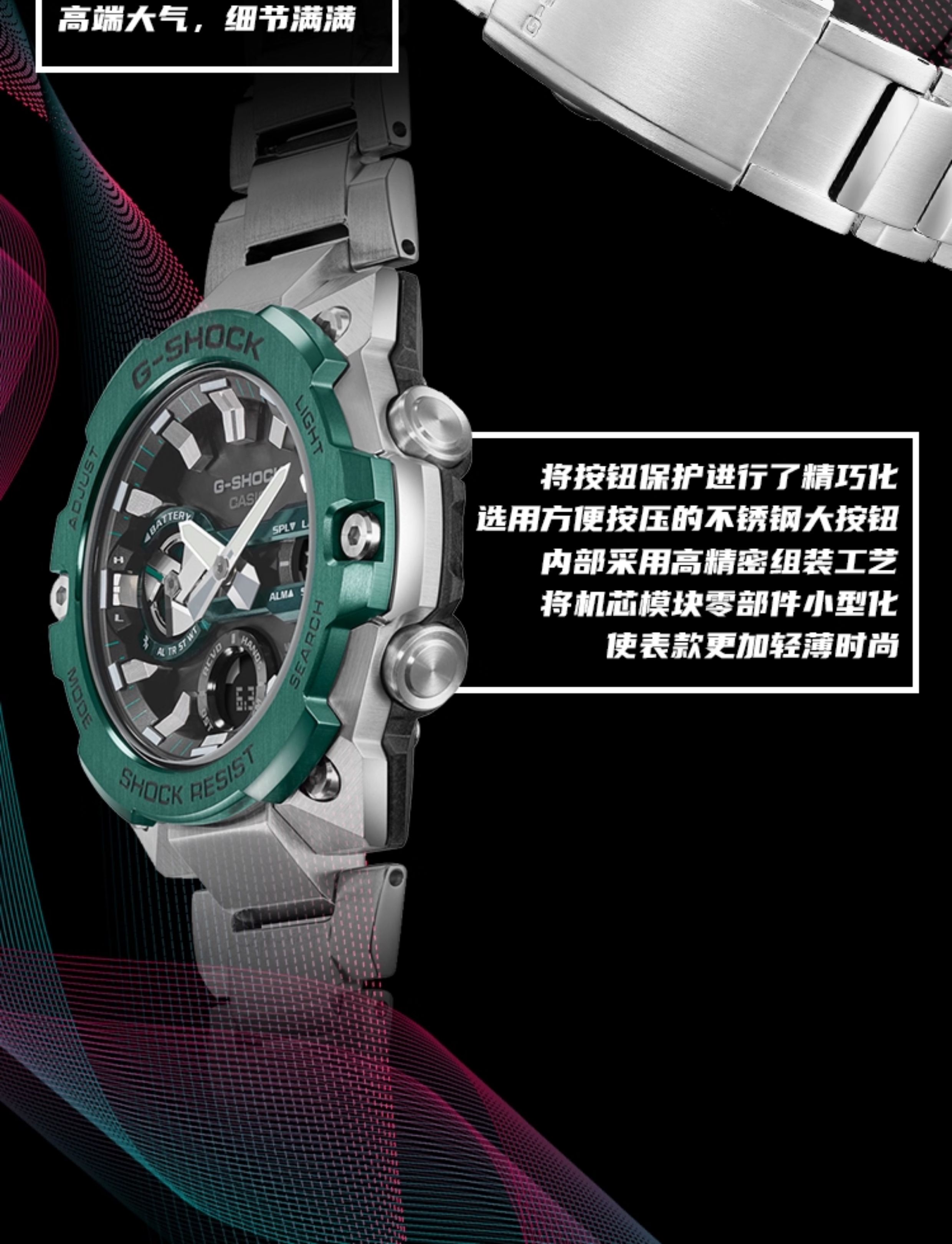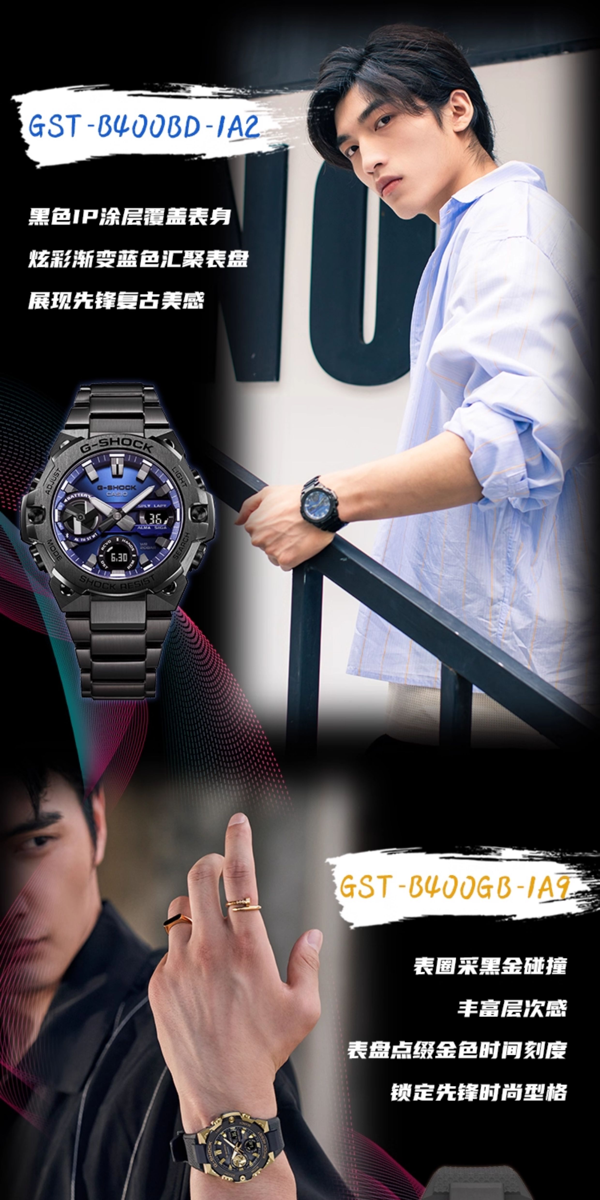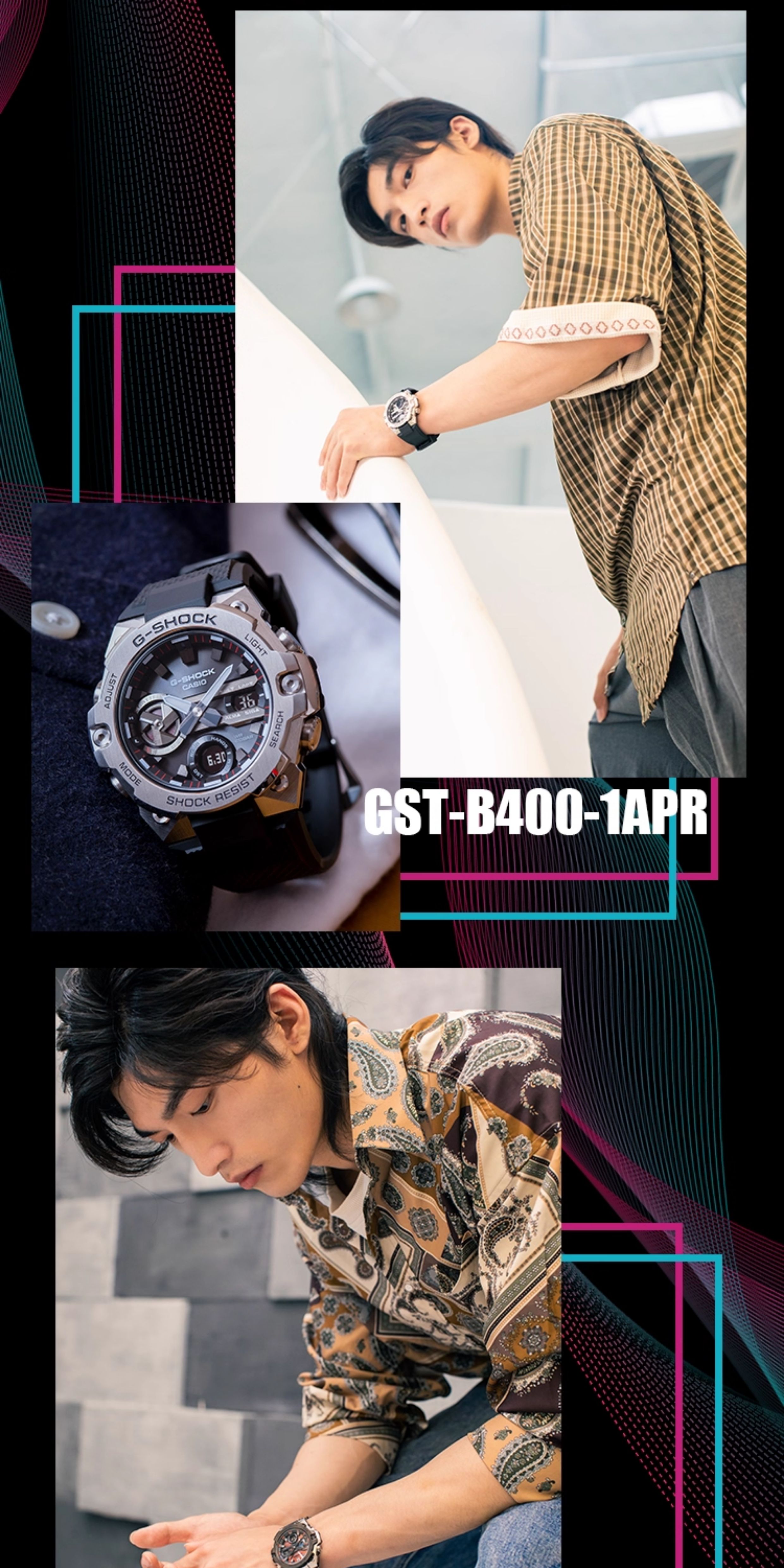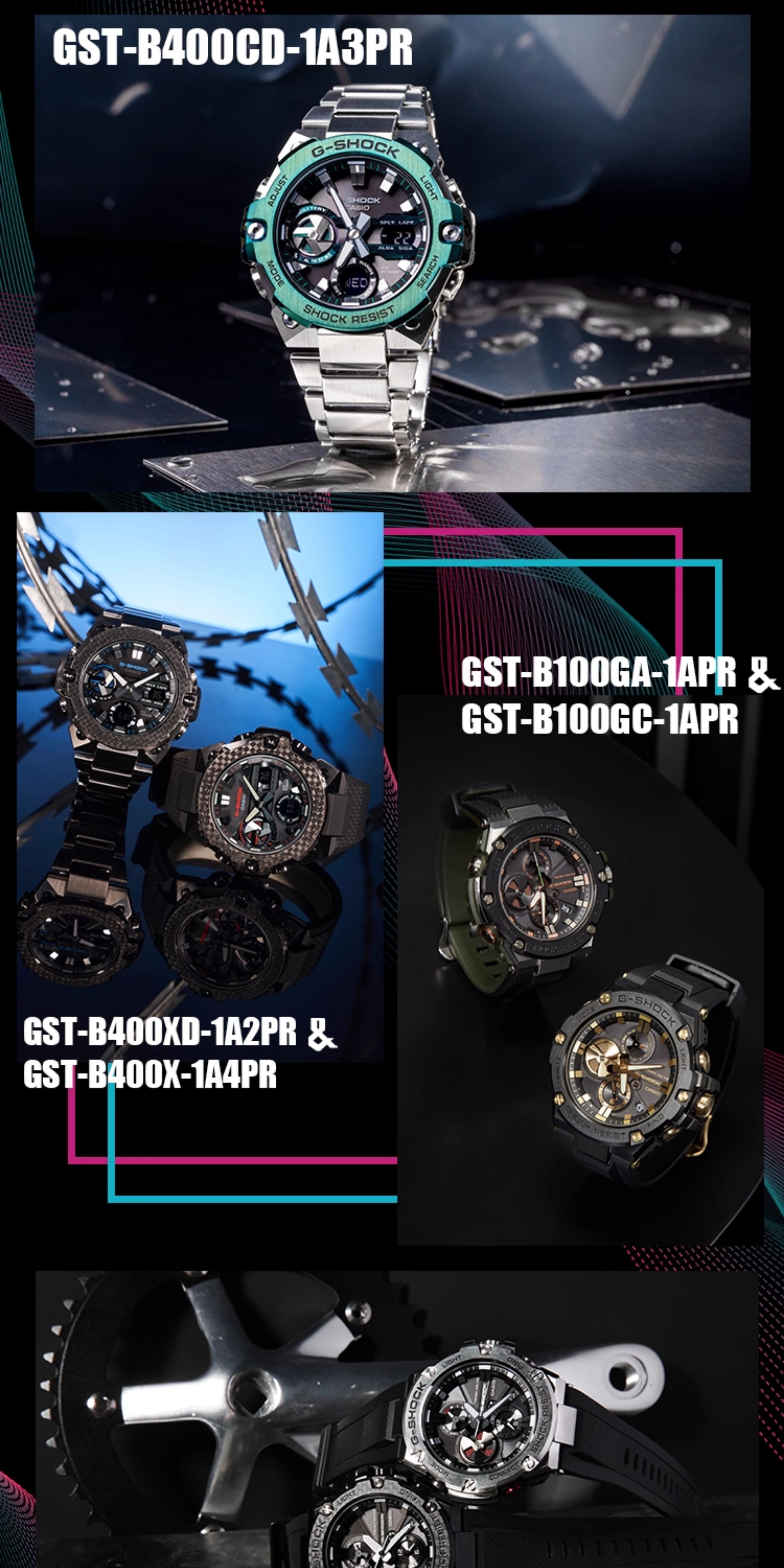 Casio Watch for Men Gshock Solar-Powered Bluetooth Waterproof Shockproof Sports Steel Dark Heart Gst-B400