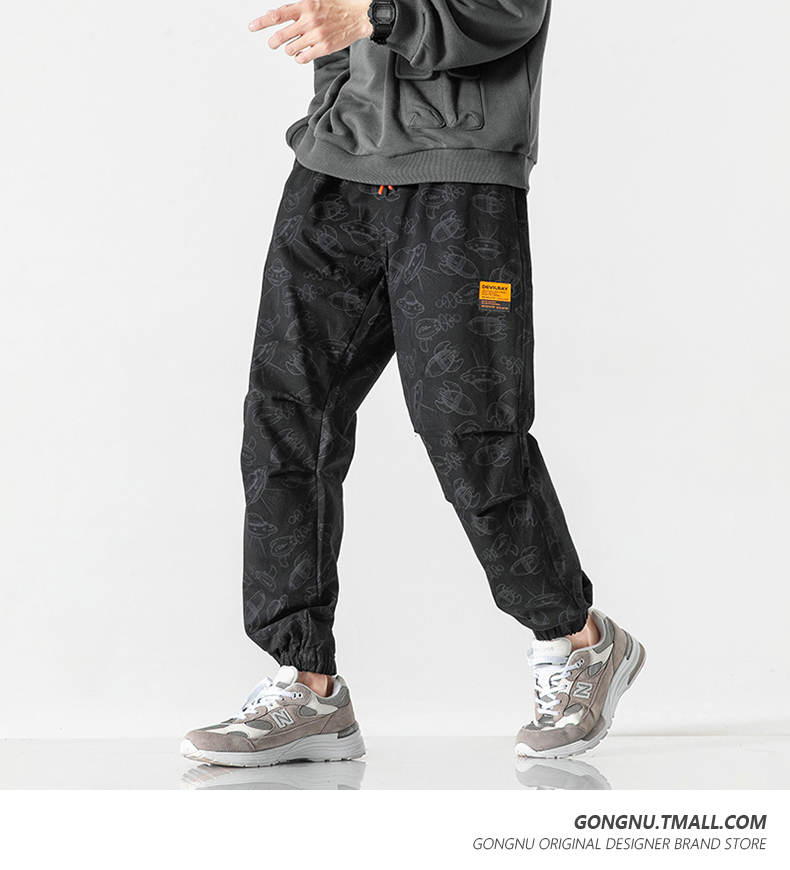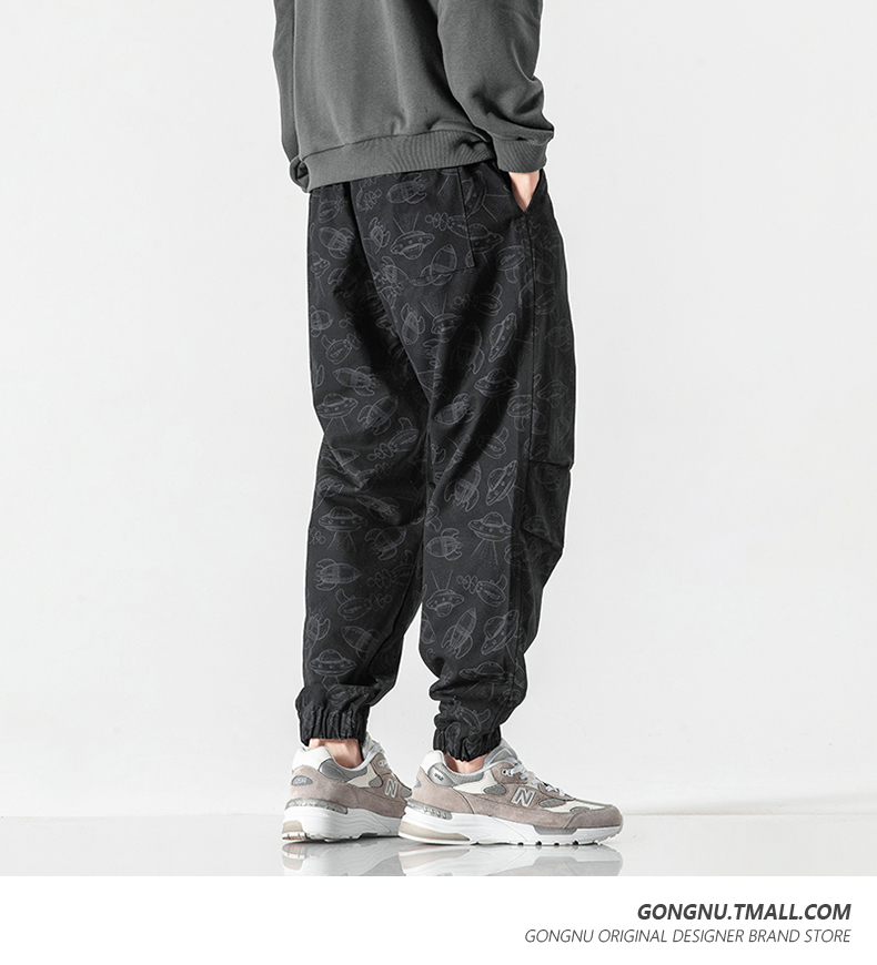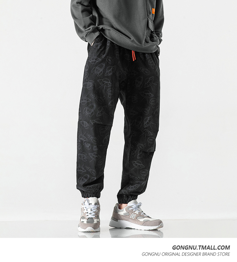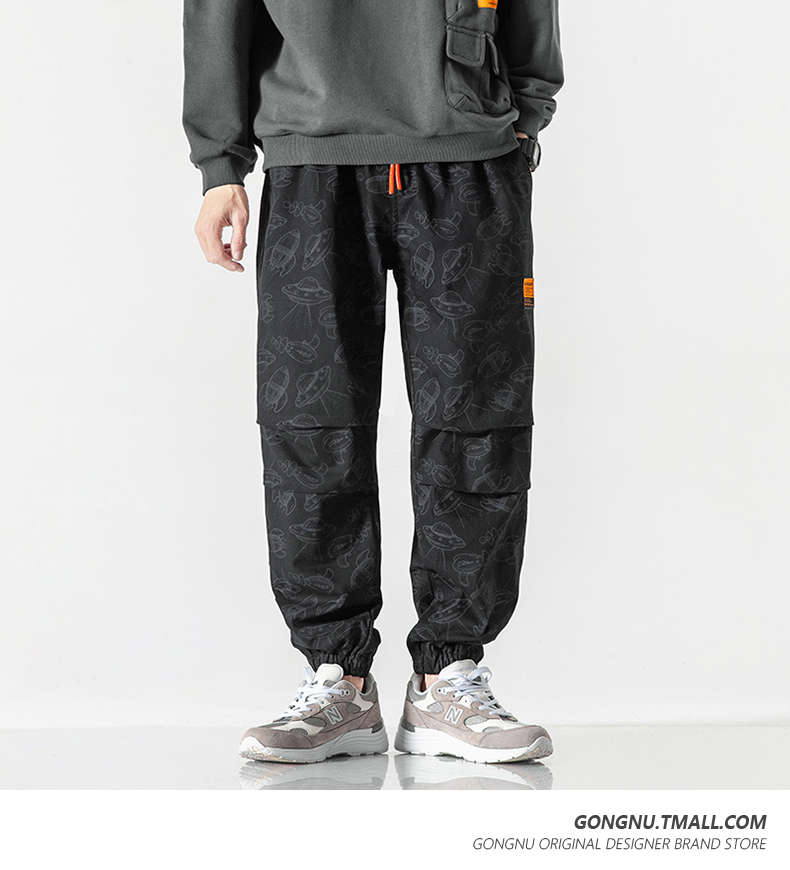 Japanese-Style Ufo Print Jogger Cargo Pants for Men and Women, 2023 New Loose Trendy Brand Casual Cropped Pants ins