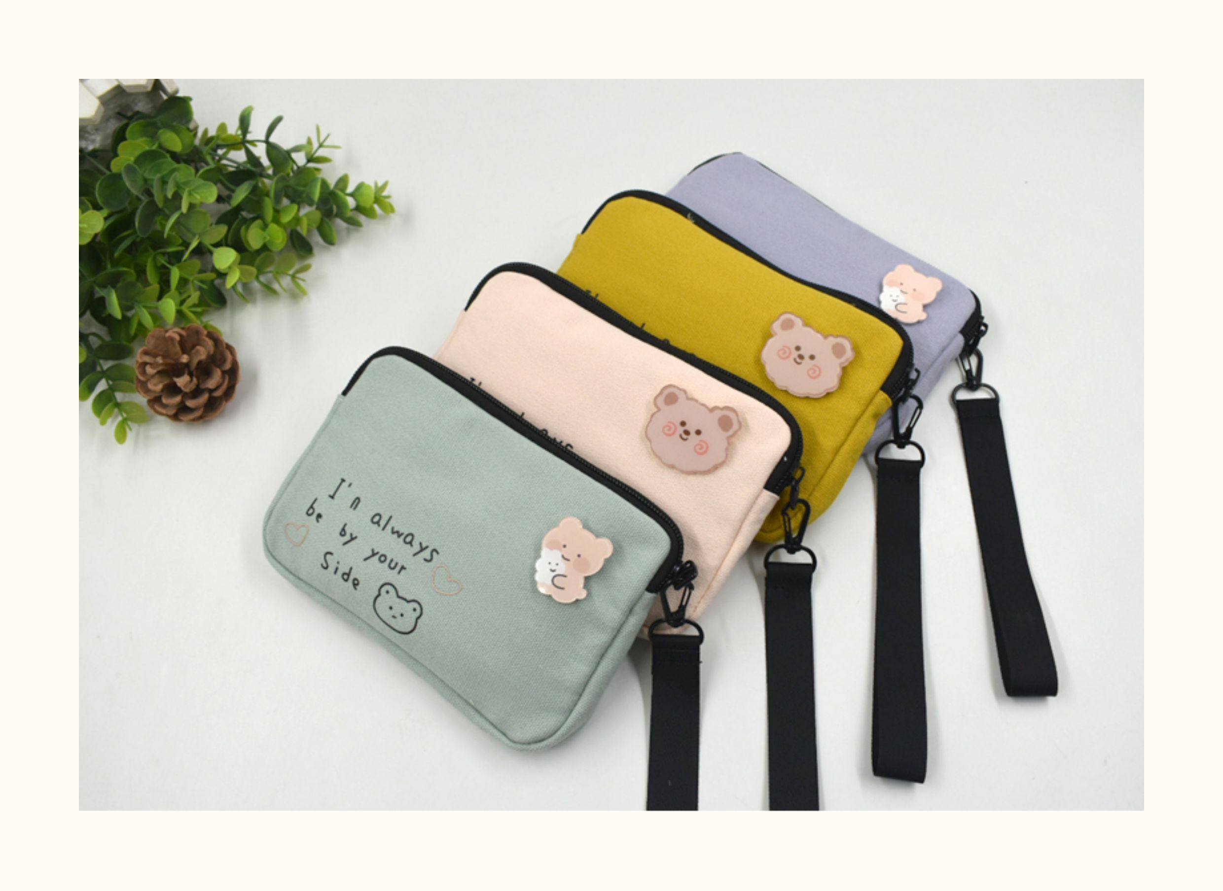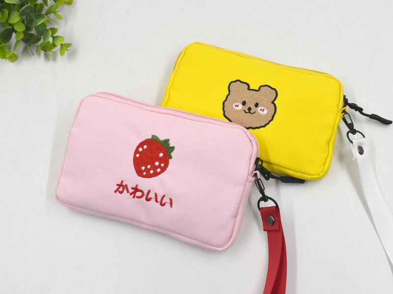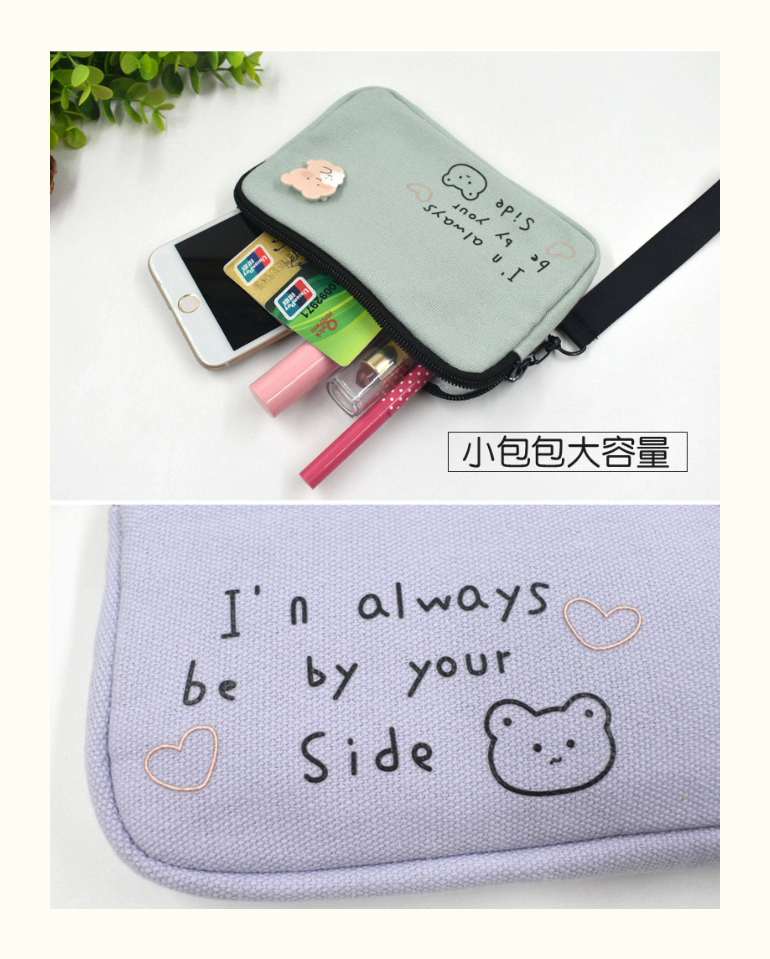 Canvas Clutch Bag, Simple Fabric Clutch Bag, Cute Mobile Phone Bag for Girls, Fashionable Mini Japanese and Korean Zipper Long Wallet