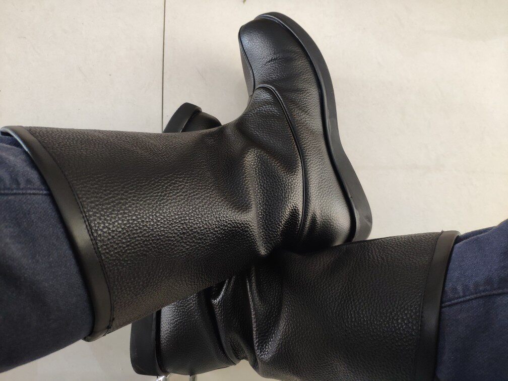 牛皮面传统靴,男女同款传统靴,偏肥大宽松不卡脚,里子是布里子透气性好,底子柔软穿起来舒适,鞋底材料防滑。