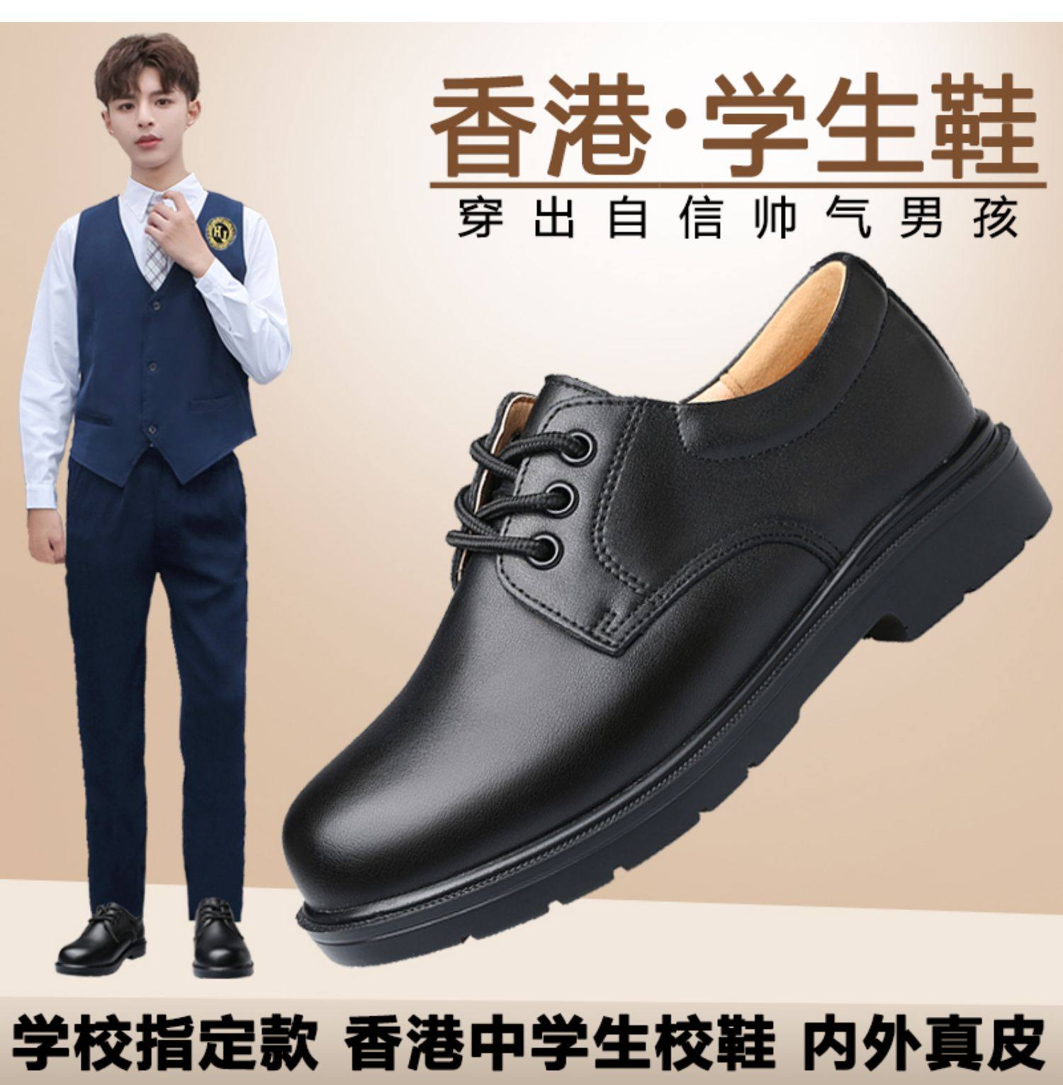 Middle School Students' Leather Shoes, Men's Youth Version, British Style Black Leather Shoes, Genuine Leather Soft Sole, Campus Formal Wear, Spring and Autumn Men's Shoes