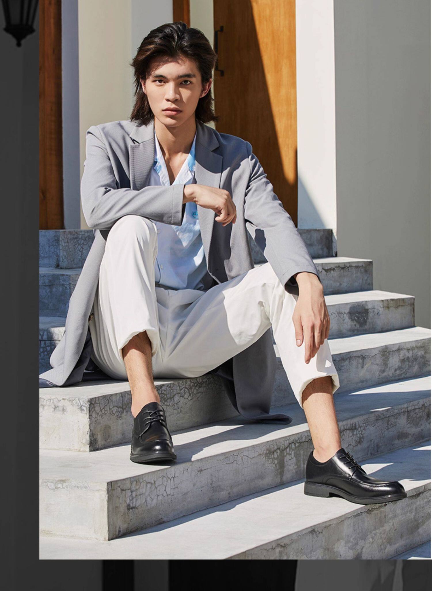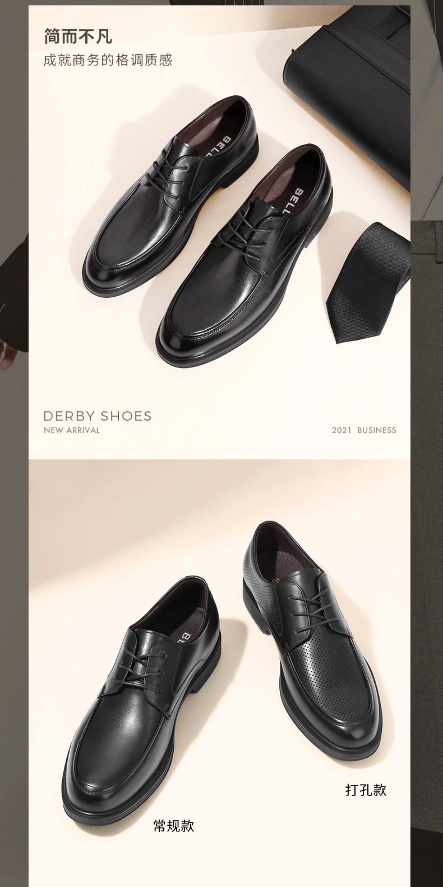 Belle Men's Business Formal Genuine Leather Shoes Spring New Height-Increasing Casual Derby Groom Wedding Shoes B3Gk3Cm1