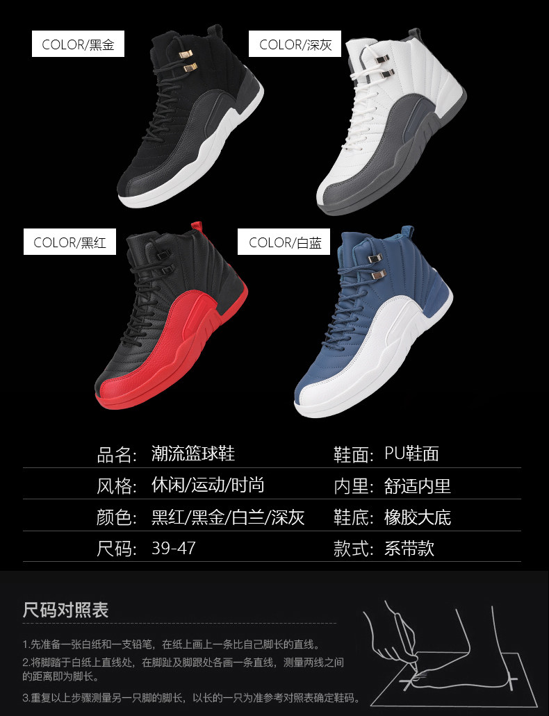Men's Shoes Aj12 Sneakers Men's Basketball Spring and Autumn Men's Sports Shoes Men's Trendy Shoes Versatile Student Youth Fashion