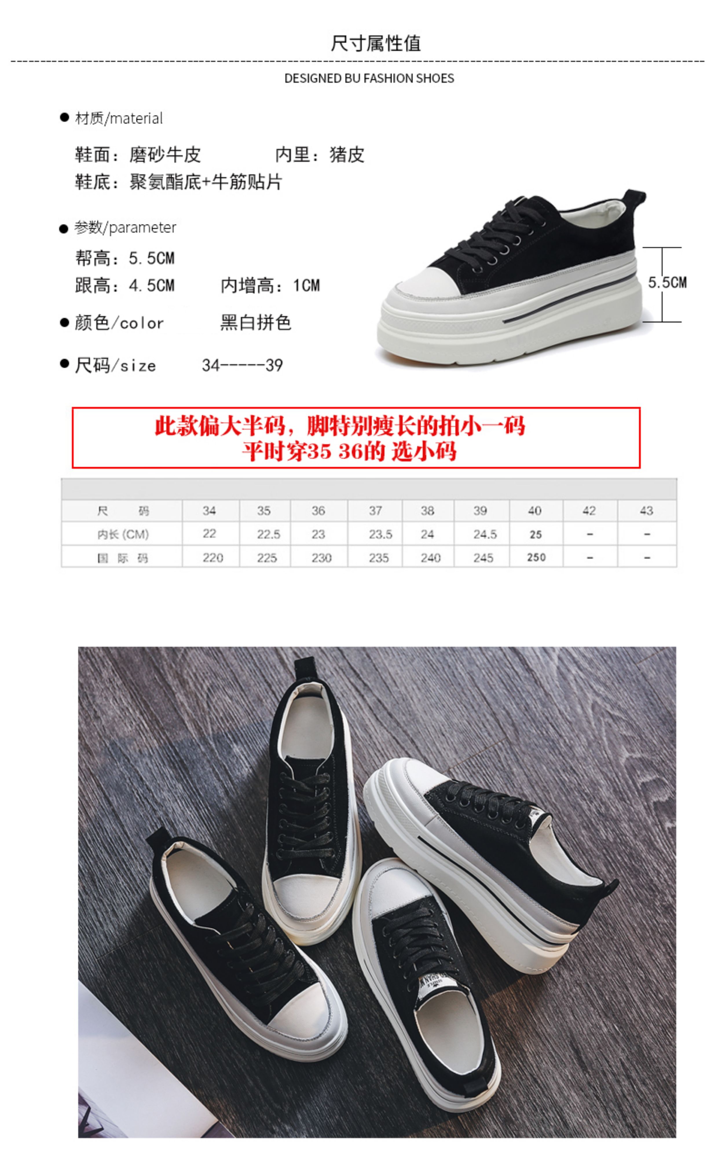 Hong Kong Black Platform Shoes Women's Thick-Soled Inner Height-Increasing Women's Shoes 2025 Spring & Fall K-Style Genuine Leather Student Sneakers for Small People