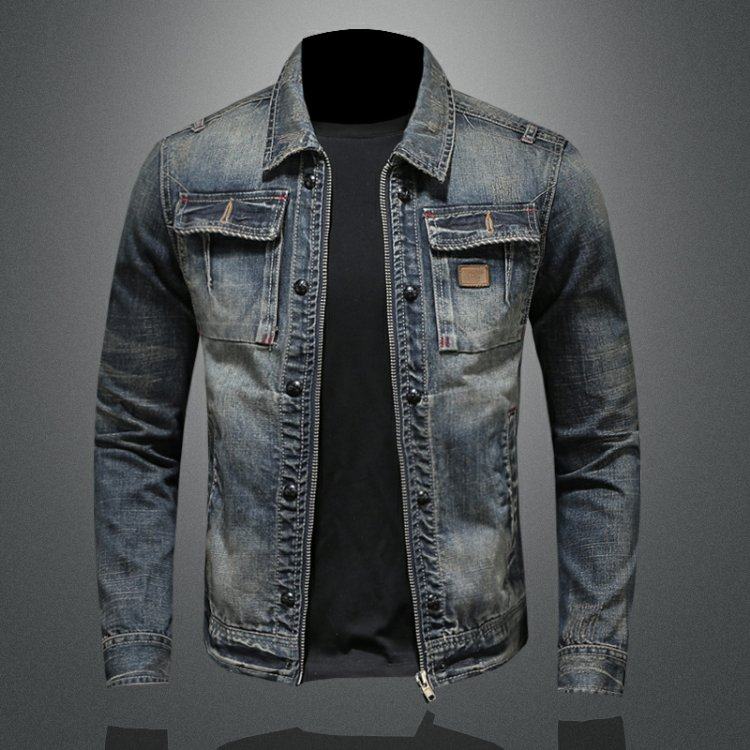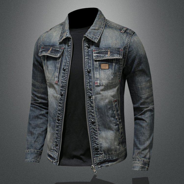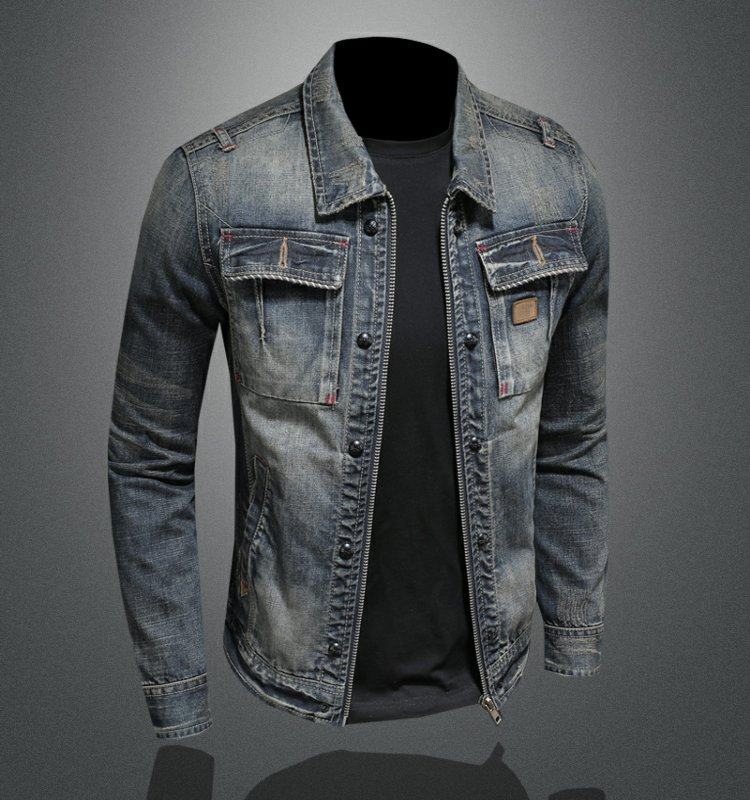 Trendy Retro Denim Jacket for Men 2025 Spring and Autumn, Personalized Large Size Casual Lapel Denim Jacket, Korean Style Slim Fit Jacket