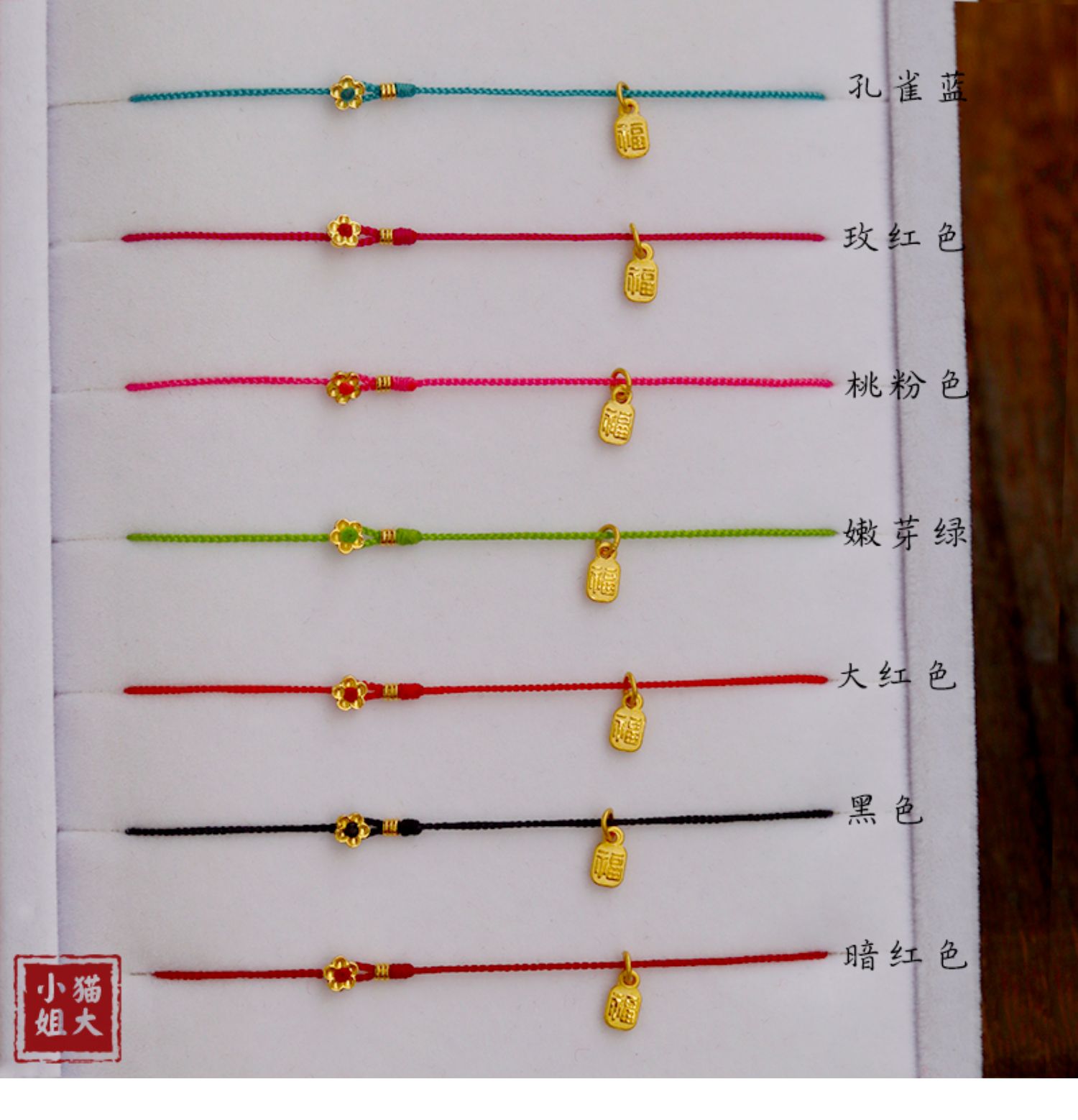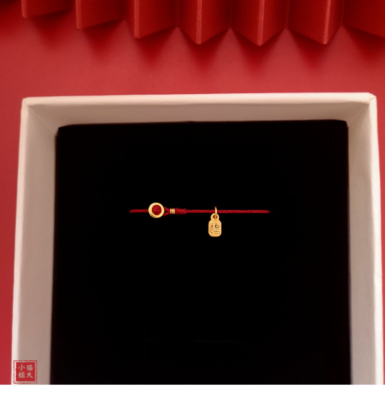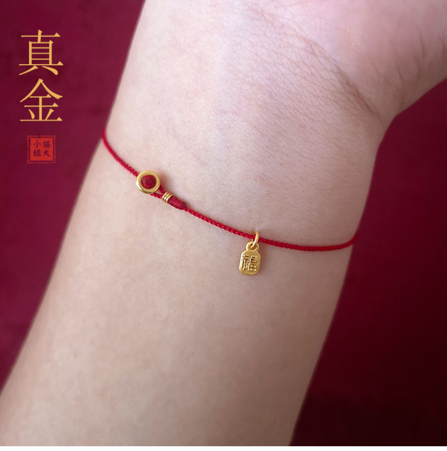 Original 999 gold double-sided lucky small red rope bracelet very thin 0.3mm hand-woven this life year hand rope