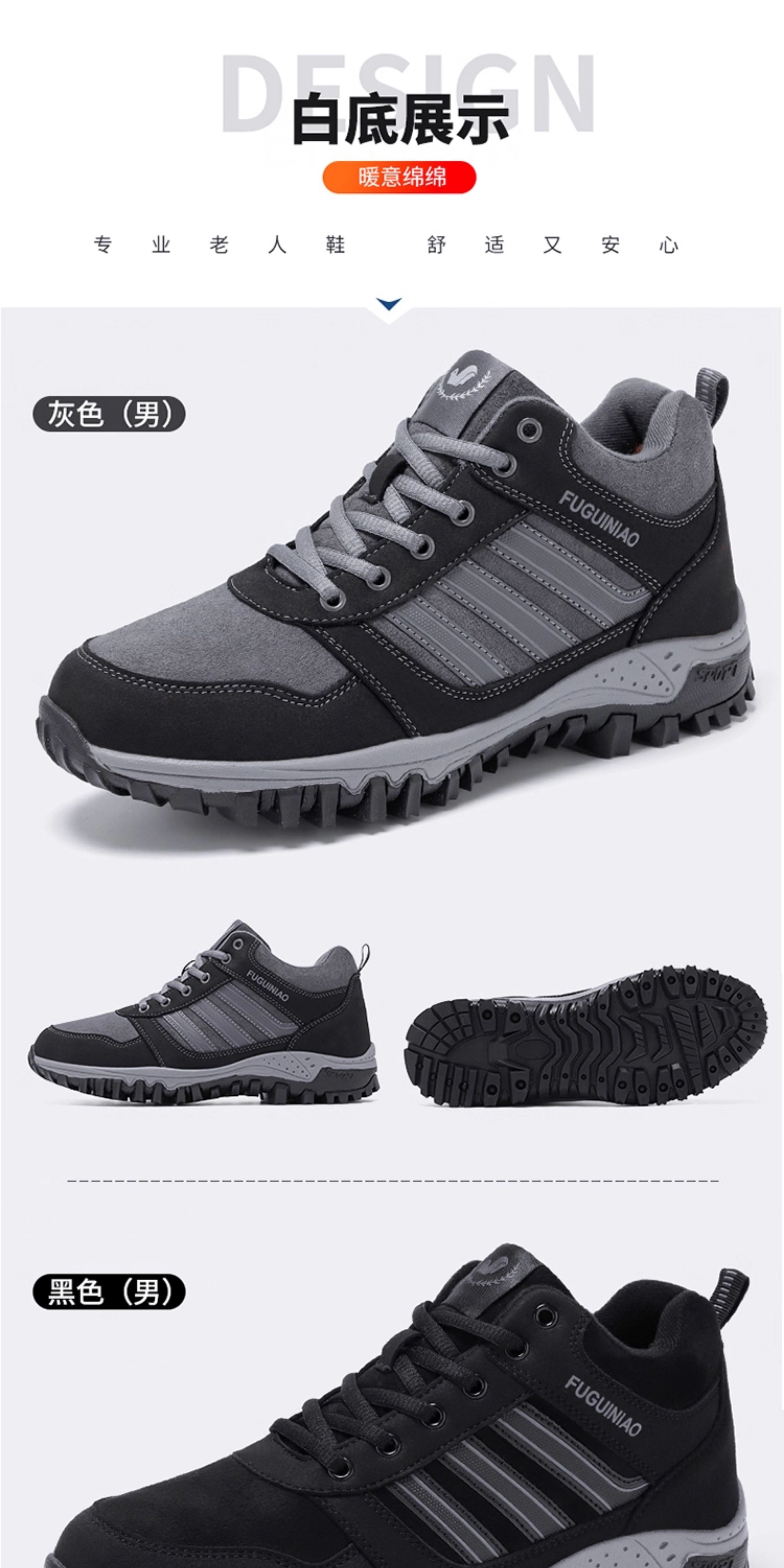 Fuguiniao Non-Slip Elderly Shoes, Autumn and Winter Fleece-Lined Walking Shoes for Seniors, Soft-Soled Middle-Aged and Elderly Sports Shoes, Casual Dad Shoes