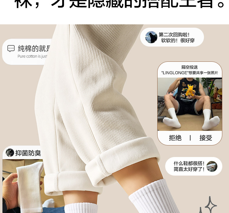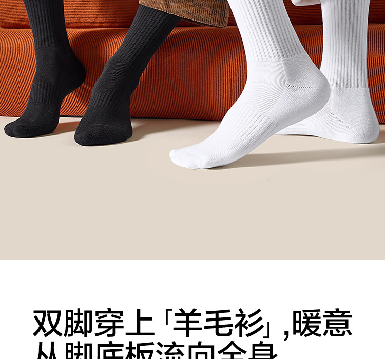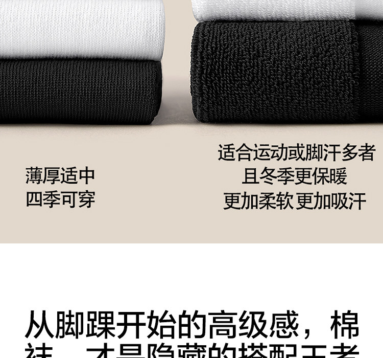 Menxx Autumn and Winter Socks for Men and Women, Mid-Calf Socks, Long Socks, Pure Cotton Short Socks, Black and White Solid Color, Thickened Towel Bottom Boat Socks for Men