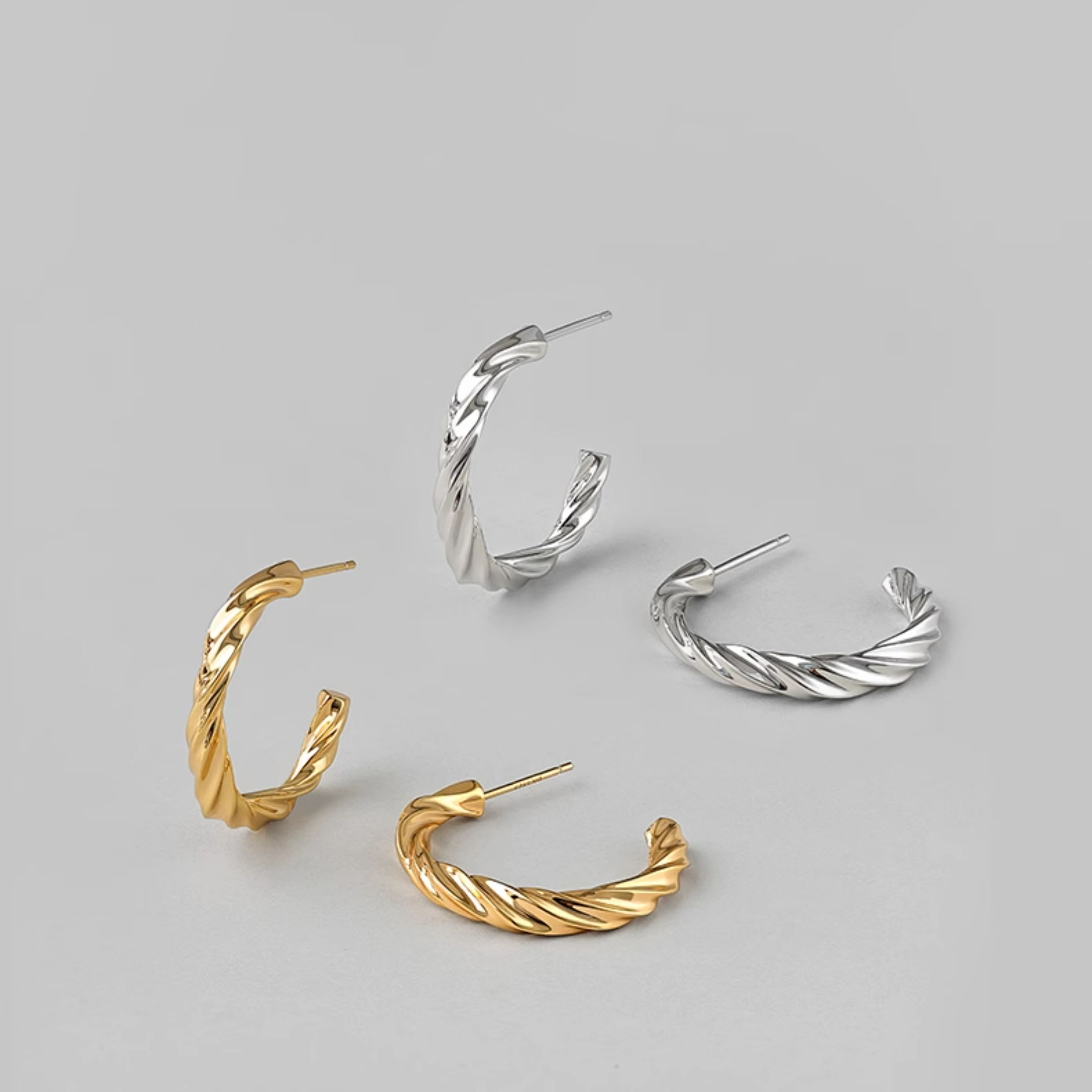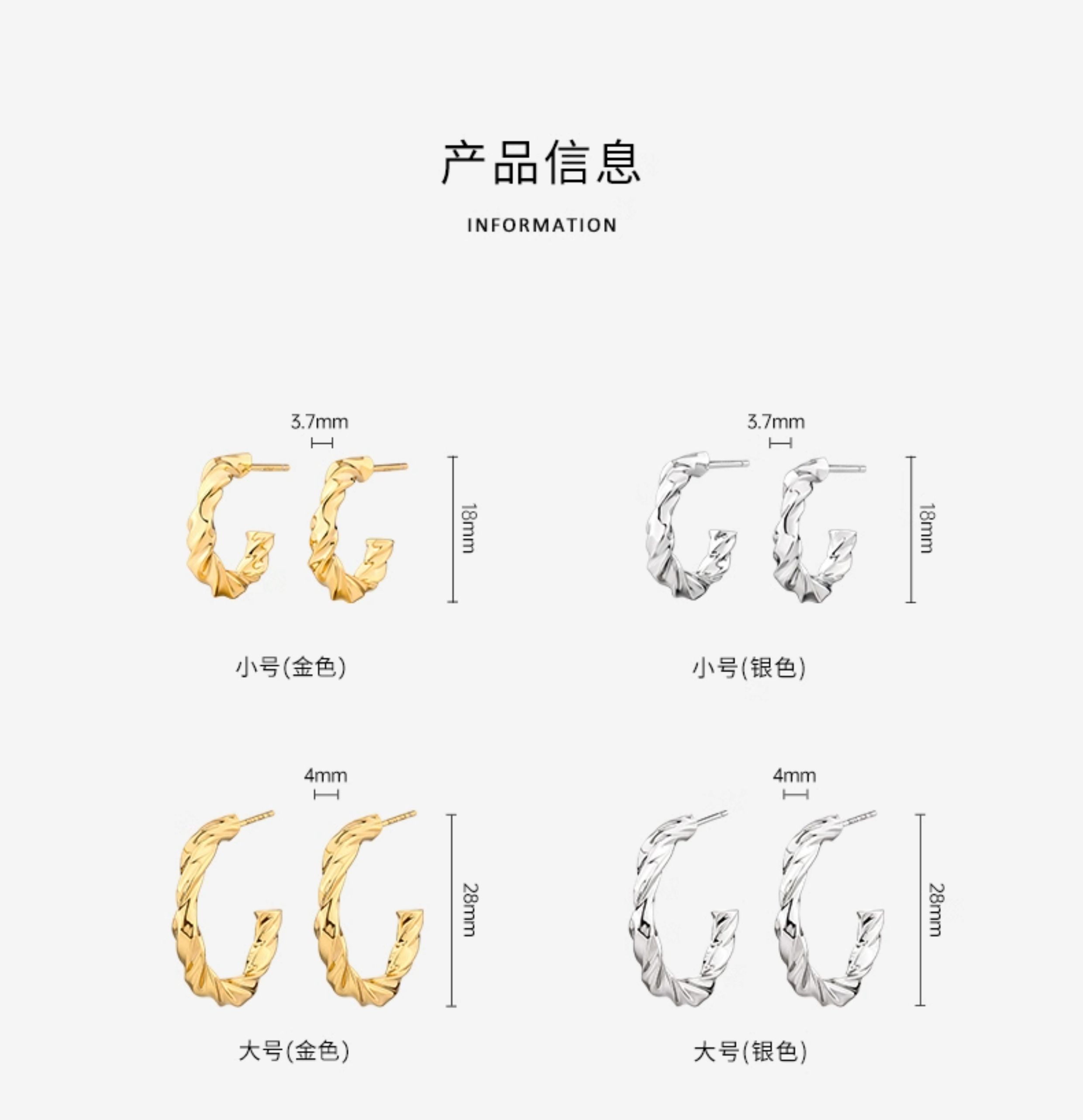 Bai Lan Cable Stitch Earrings Women's 925 Silver Earrings Fashion Piece Ring Earrings Niche style Design Fancy Earrings ED1992